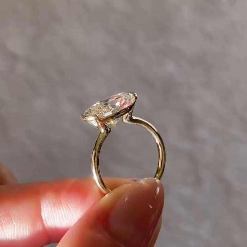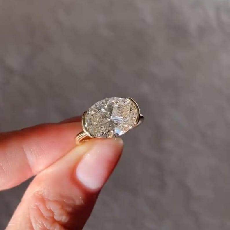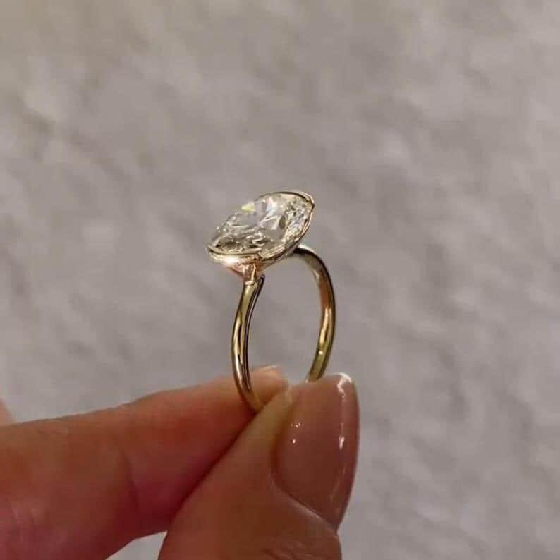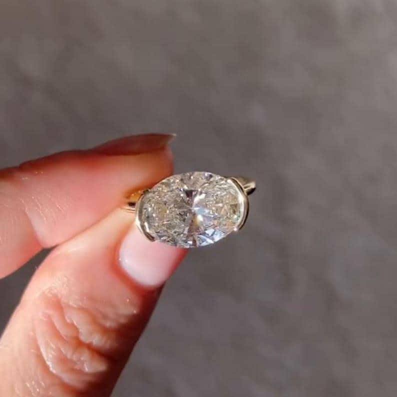 3 CT East West Oval Cut Moissanite Engagement Ring 14K Solid Yellow Gold Half Bezel Set Solitaire Wedding Ring Big Diamond Gift Ring For Her