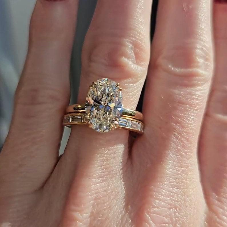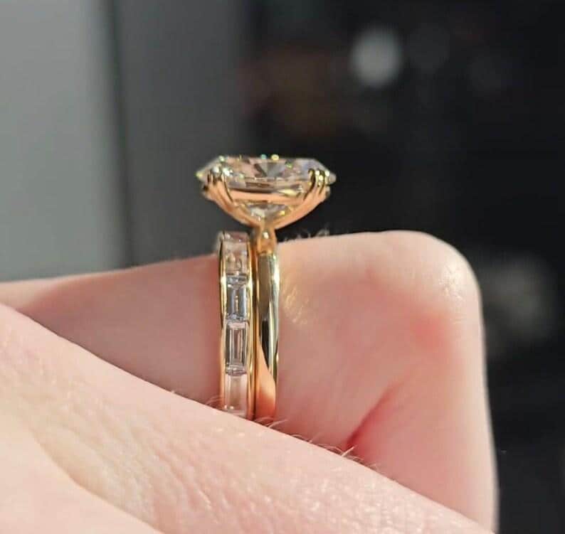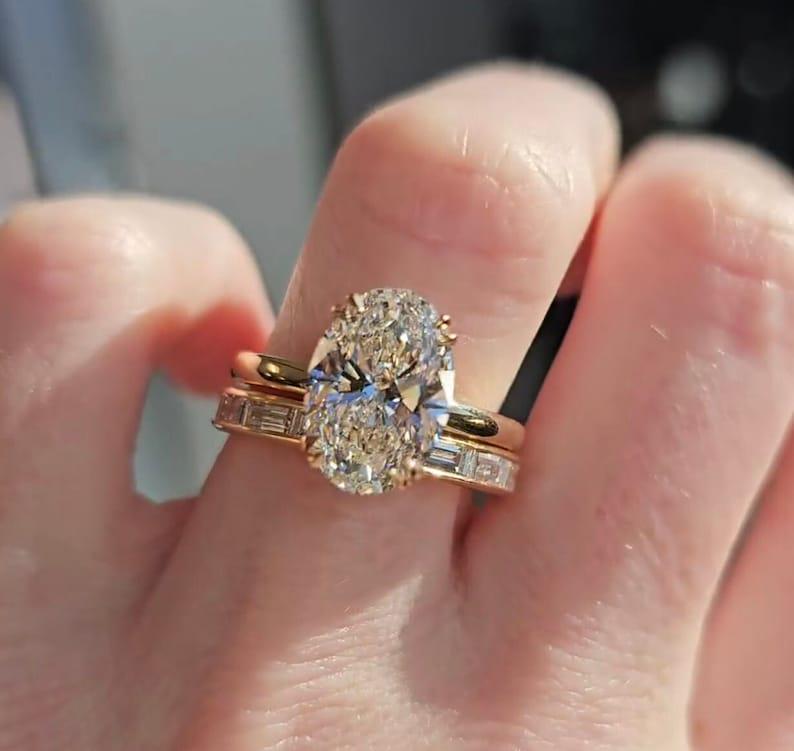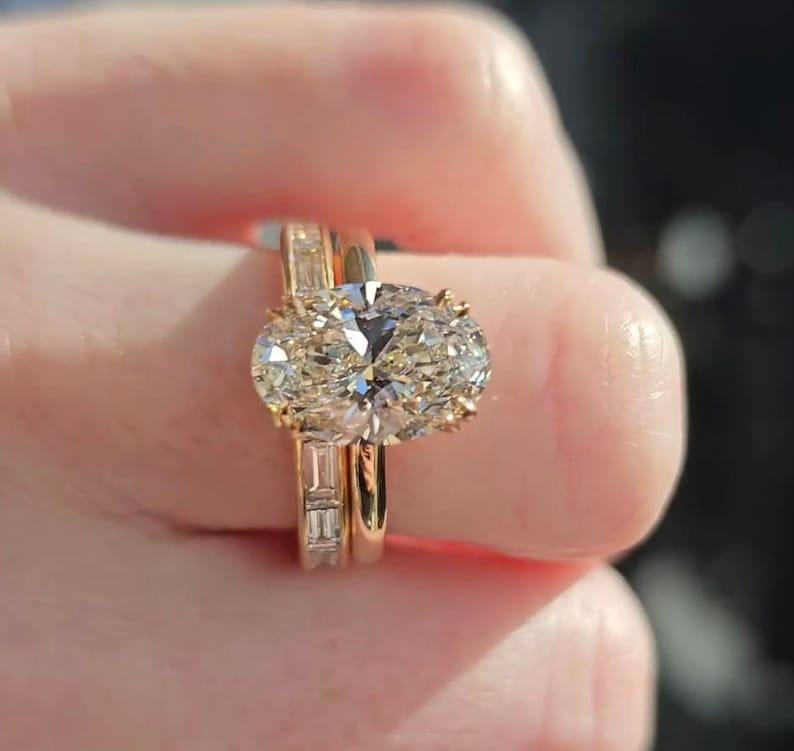 2 CT Oval Moissanite Bridal Set Art Nouveau Engagement Ring With channel set baguette eternity band Anniversary and Promise of Forever