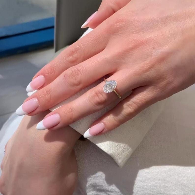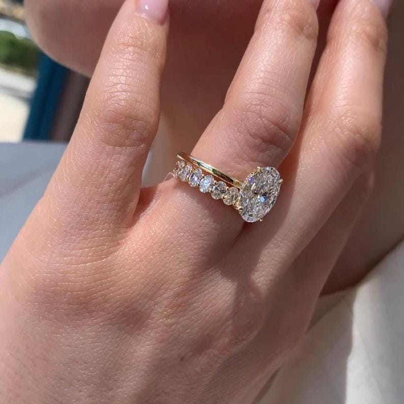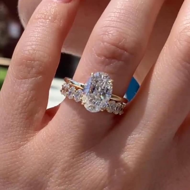 3 CT Oval Cut Moissanite Diamond Bridal Ring Set With Hidden Halo 14K Solid Gold Oval Cut Bubble Band Wedding Ring Set Anniversary Ring Set