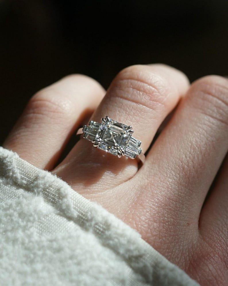 2.50 CT Luxury Asscher Cut Moissanite Diamond Engagement Ring 14K Solid Gold Solitaire White Gold Wedding Ring Double Prong Anniversary Ring