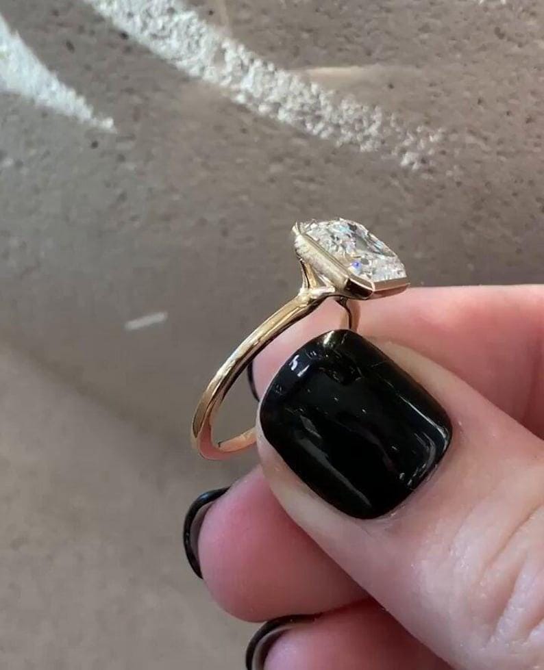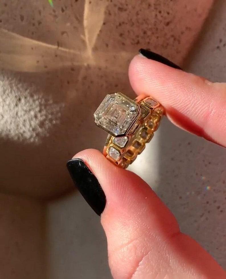 Classic 3.00 CT Asscher Cut Moissanite Ring Square Cut Ring With Matching Ring Band Surprise Bezel Solitaire Ring Perfect Gift For Her