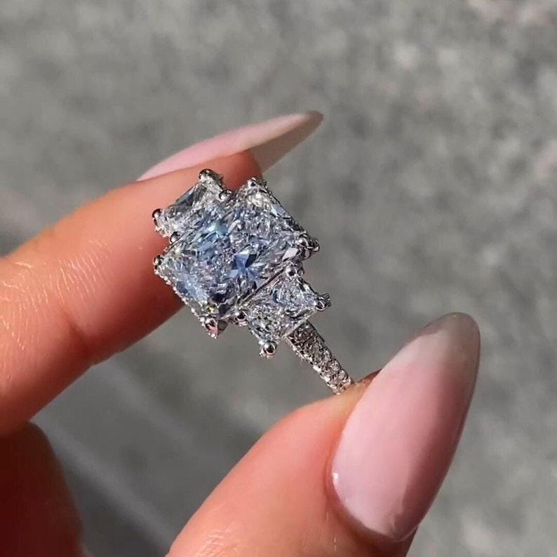 3.50 CT Radiant Cut Moissanite Diamond Three Stone Engagement Ring Gift For Her Promise Ring Solid Gold Ring 18K gold with Pave Setting Band