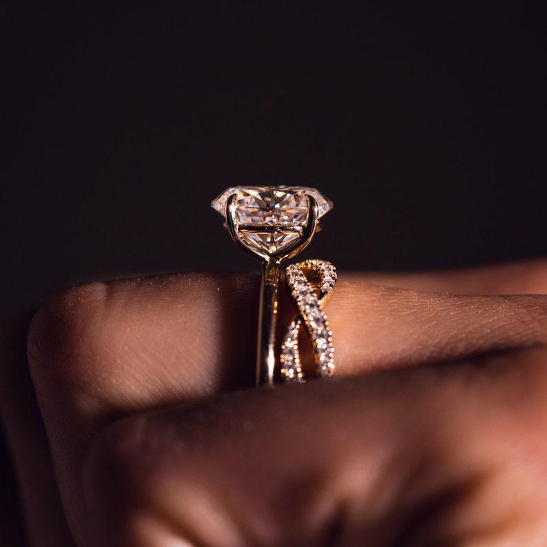 3.00 CT Oval Cut Moissanite Diamond Engagement Bridal Ring Set 14K Solid Gold Wedding Gift Ring Set With Unique Twisted DNA Matching Band