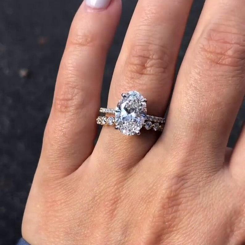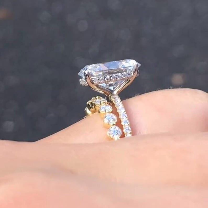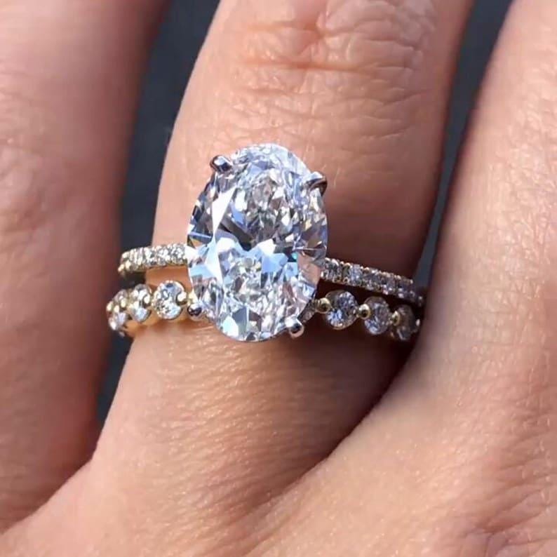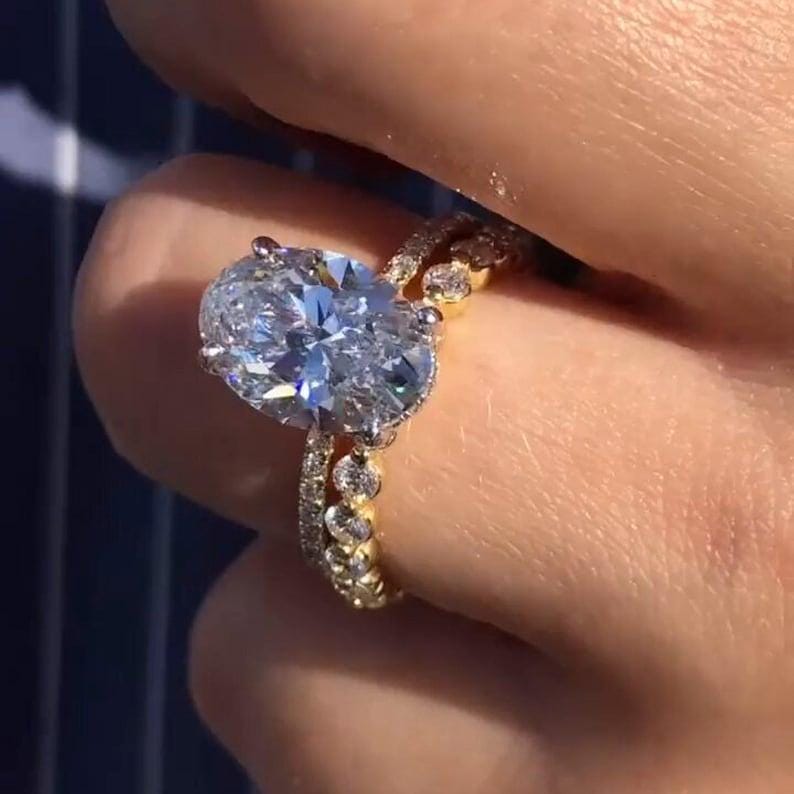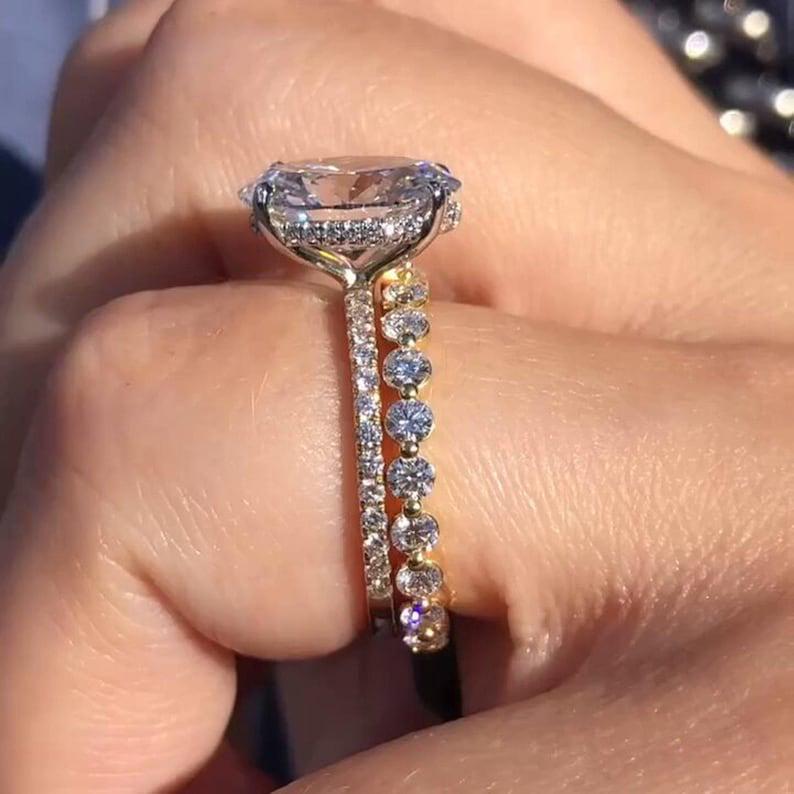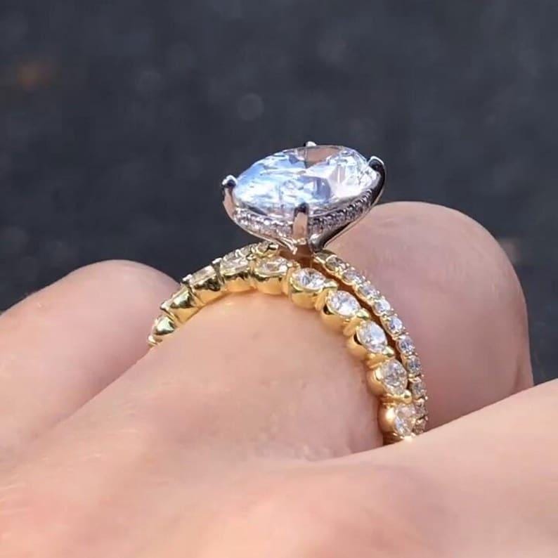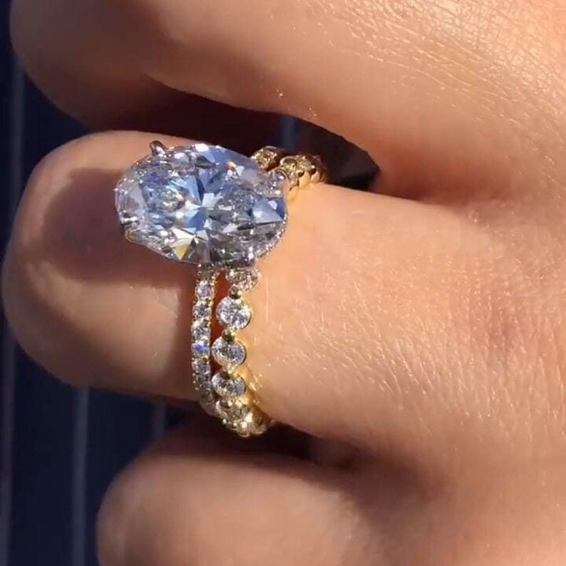 3.50 CT Oval Cut Hidden Halo Moissanite Diamond Engagement Ring Set 14K Solid Gold Pave Setting Wedding Bridal Ring Set Anniversary Gift Ring