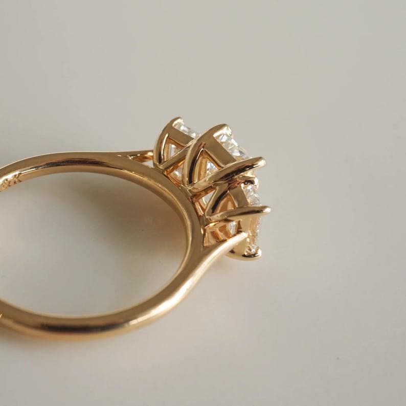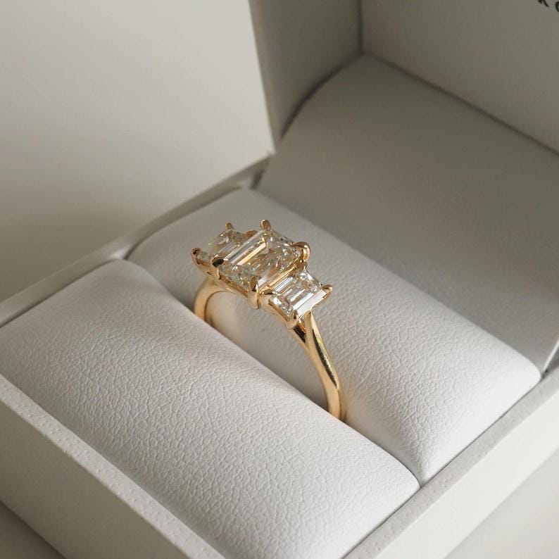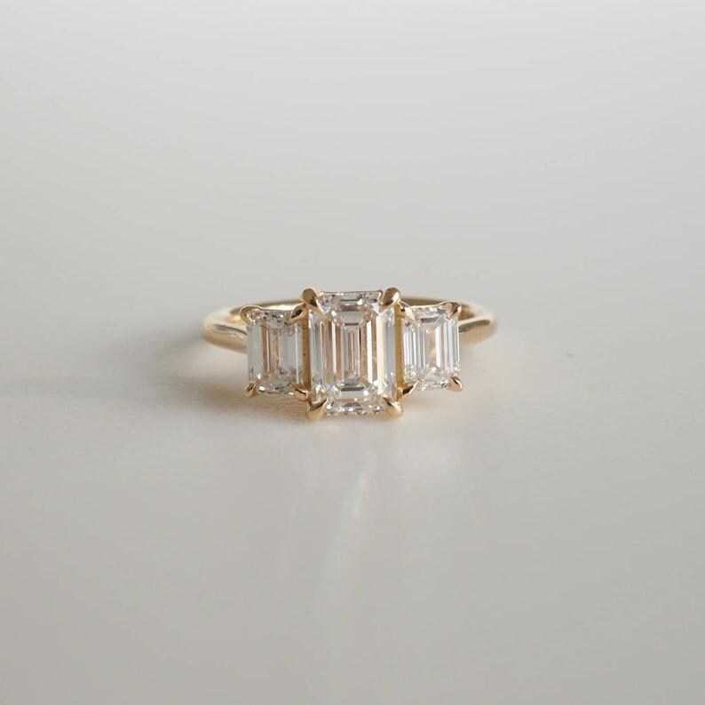 Three Stone 2.50 CT Emerald Cut Moissanite Diamond Engagement Ring 14K Solid Gold Solitaire Wedding Moissanite Ring Three Stone Gift Ring