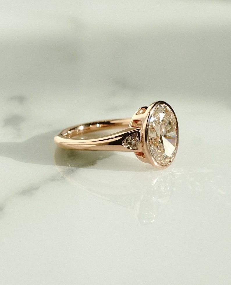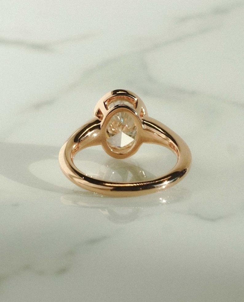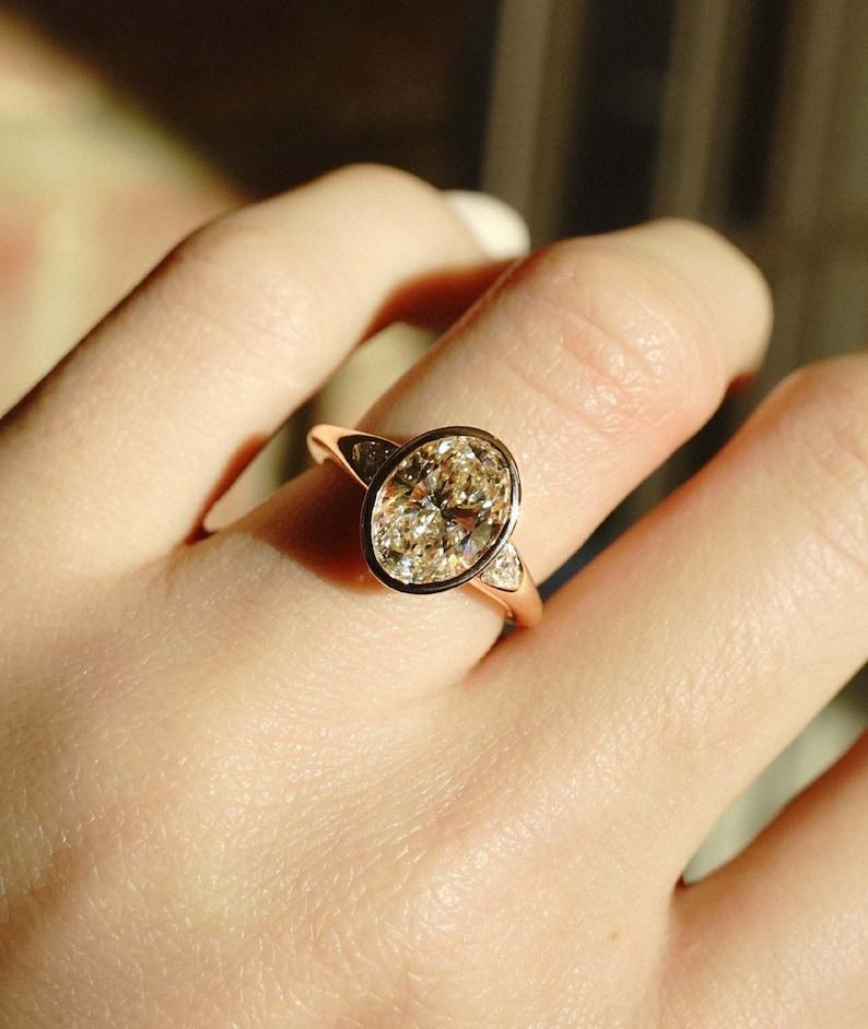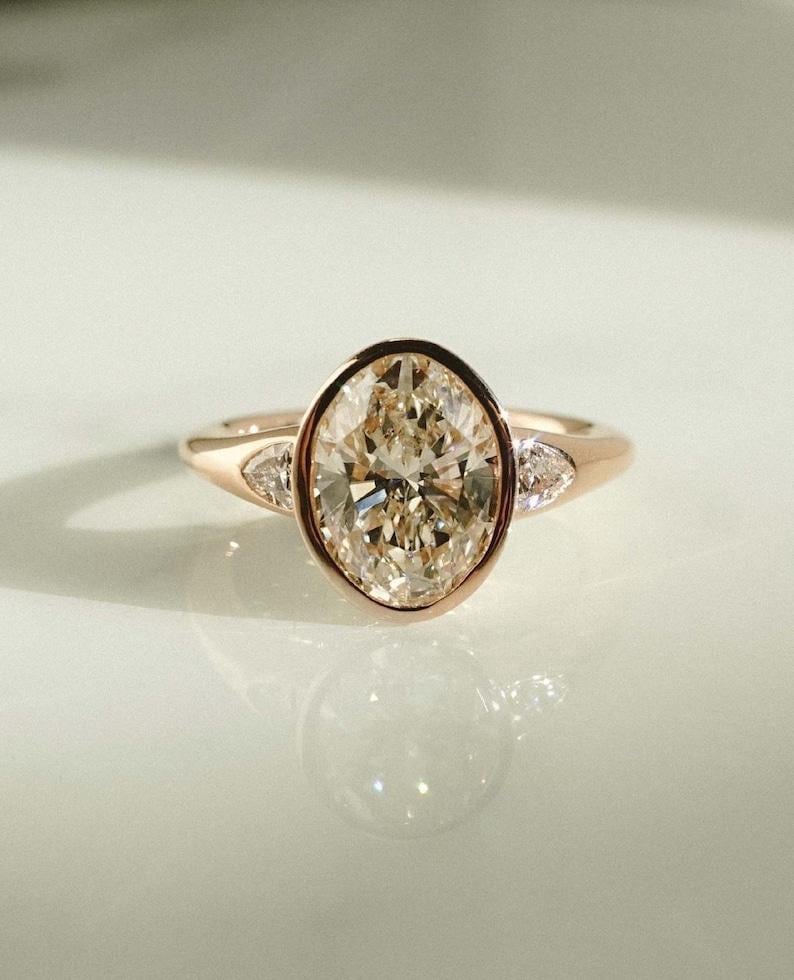 Unique 2.50 CT Bezel Set Oval Cut Moissanite Diamond Engagement Ring 14K Solid Yellow Gold Three Stone Wedding Ice Crushed Oval Cut Ring