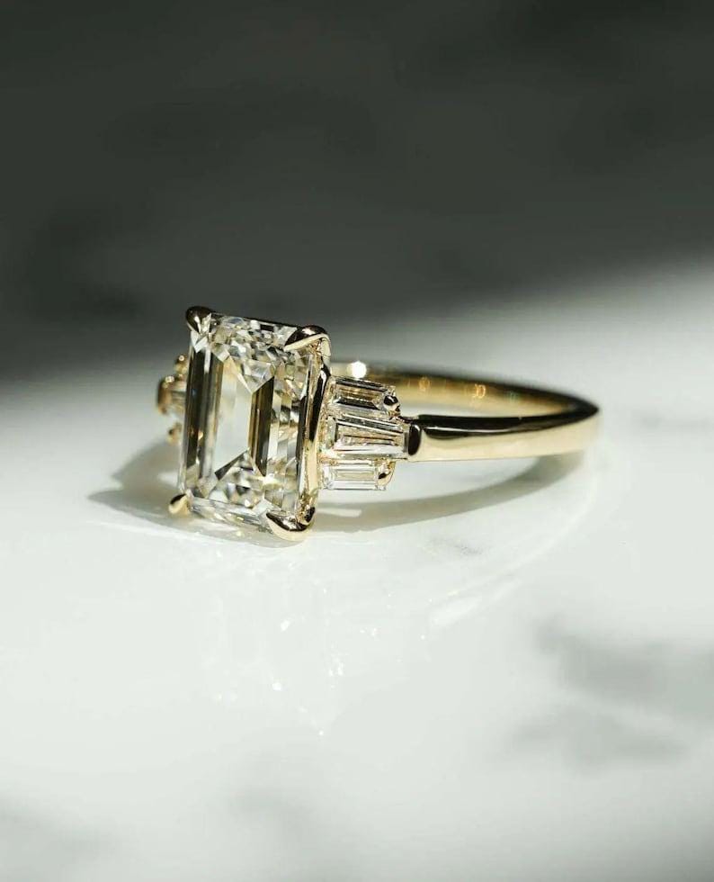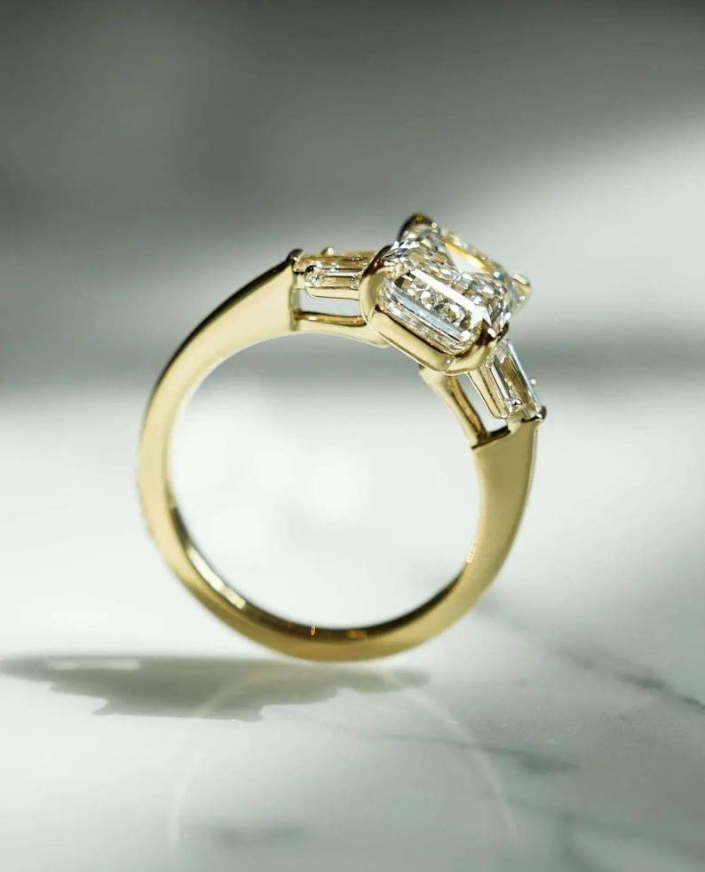 3.00 CT Emerald Cut Moissanite Engagement Ring 14K Solid Gold Emerald & Baguette Cut Wedding Anniversary Ring Gift for Women 7 Stone Ring