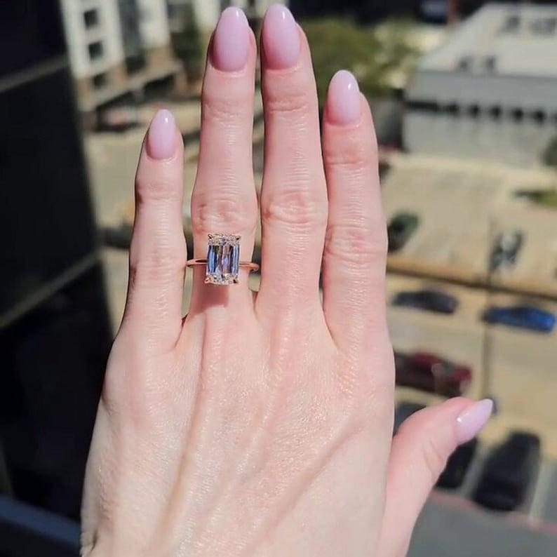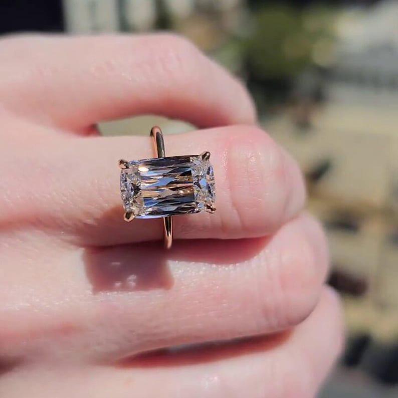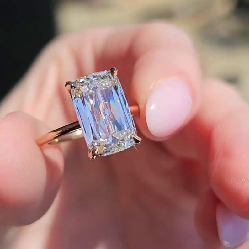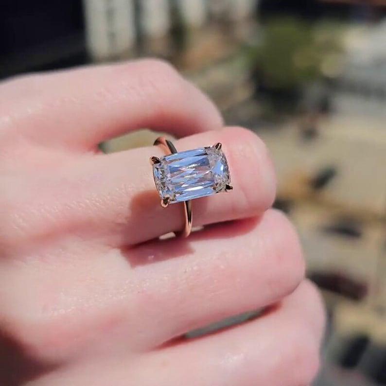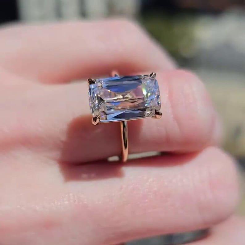 4.00 CT Long Elongated Cushion Cut Moissanite Engagement Ring 14K Solid Yellow Gold Cushion Solitaire Wedding Ring Perfect Gift for Women