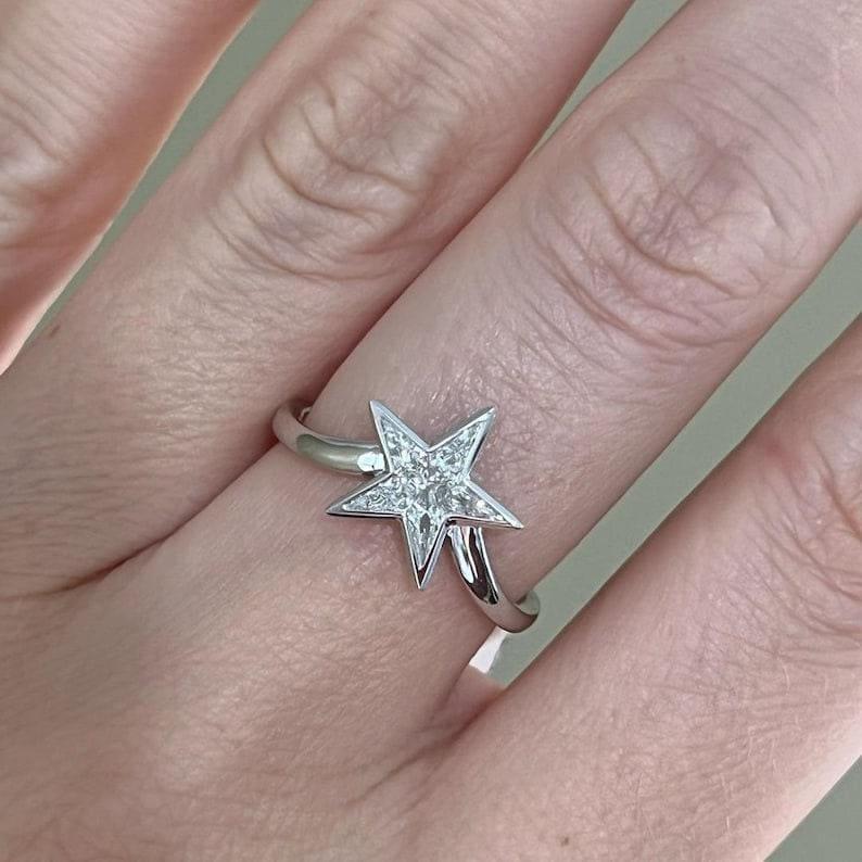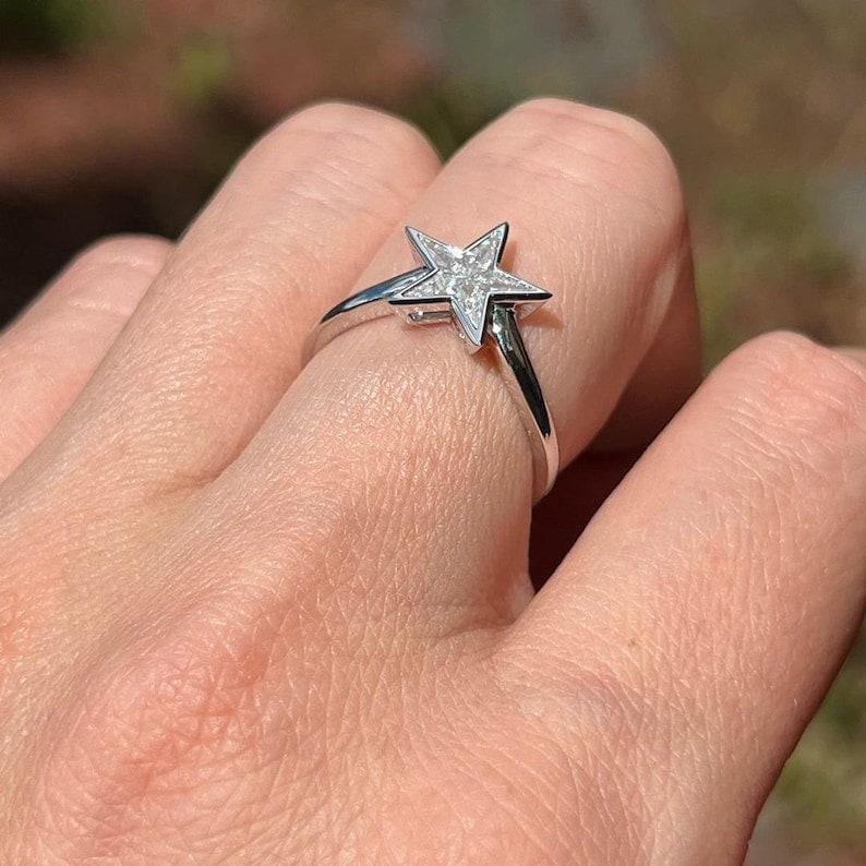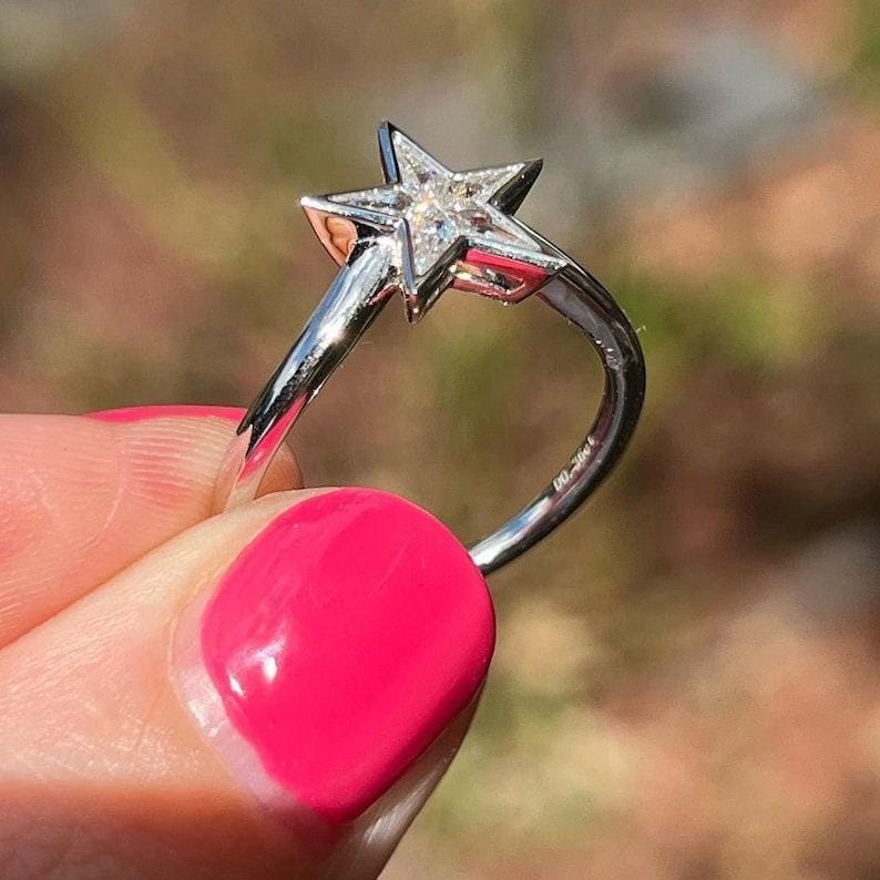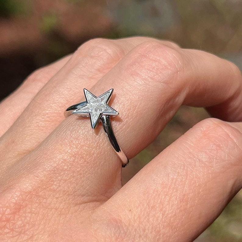 Unique Star Cut Bezel Set Moissanite Diamond Engagement Ring 14K Solid White Gold Moissanite Solitaire Wedding Ring Perfect Gift Ring