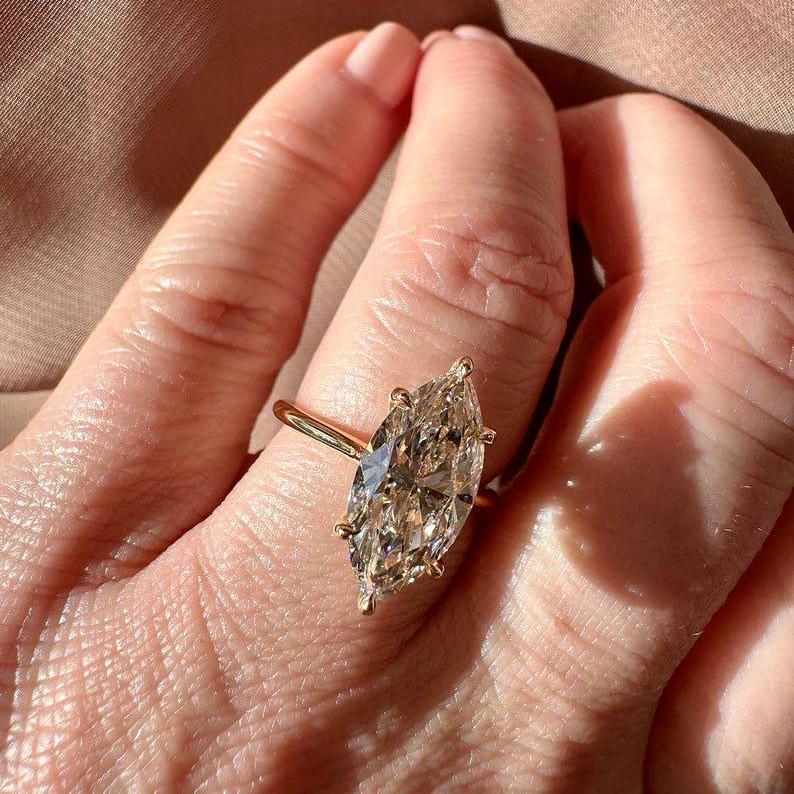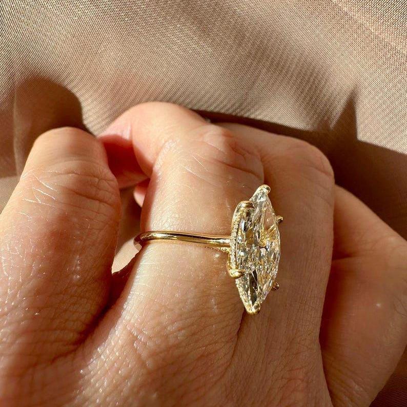 4.50 CT Marquise Cut Hidden Halo Moissanite Diamond Engagement Ring 14K Solid Gold Elongated Marquise Cut Wedding Ring Gift Ring for Her, Marquise Promise Ring, Gift Ring, Rings For Women, Statement Ring, Vintage Engagement Ring, Promise Rings For Her Diamond Rings, Marquise Cut Ring Gifts For Her, Bridal Ring, Handmade Rings, Personalization Jewelry.