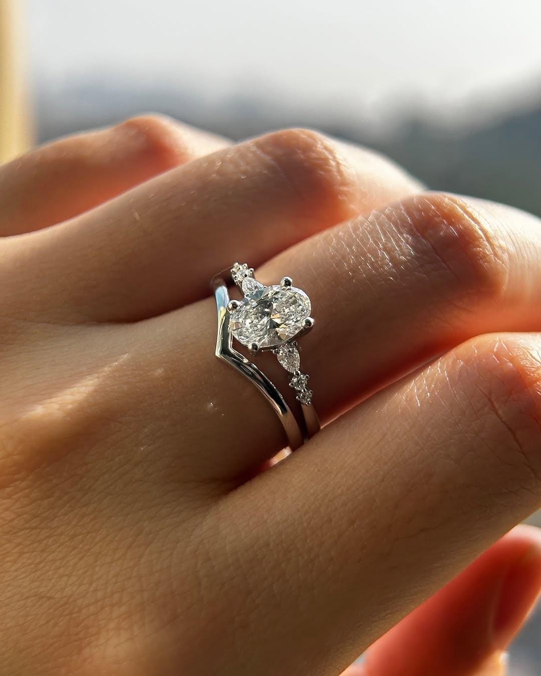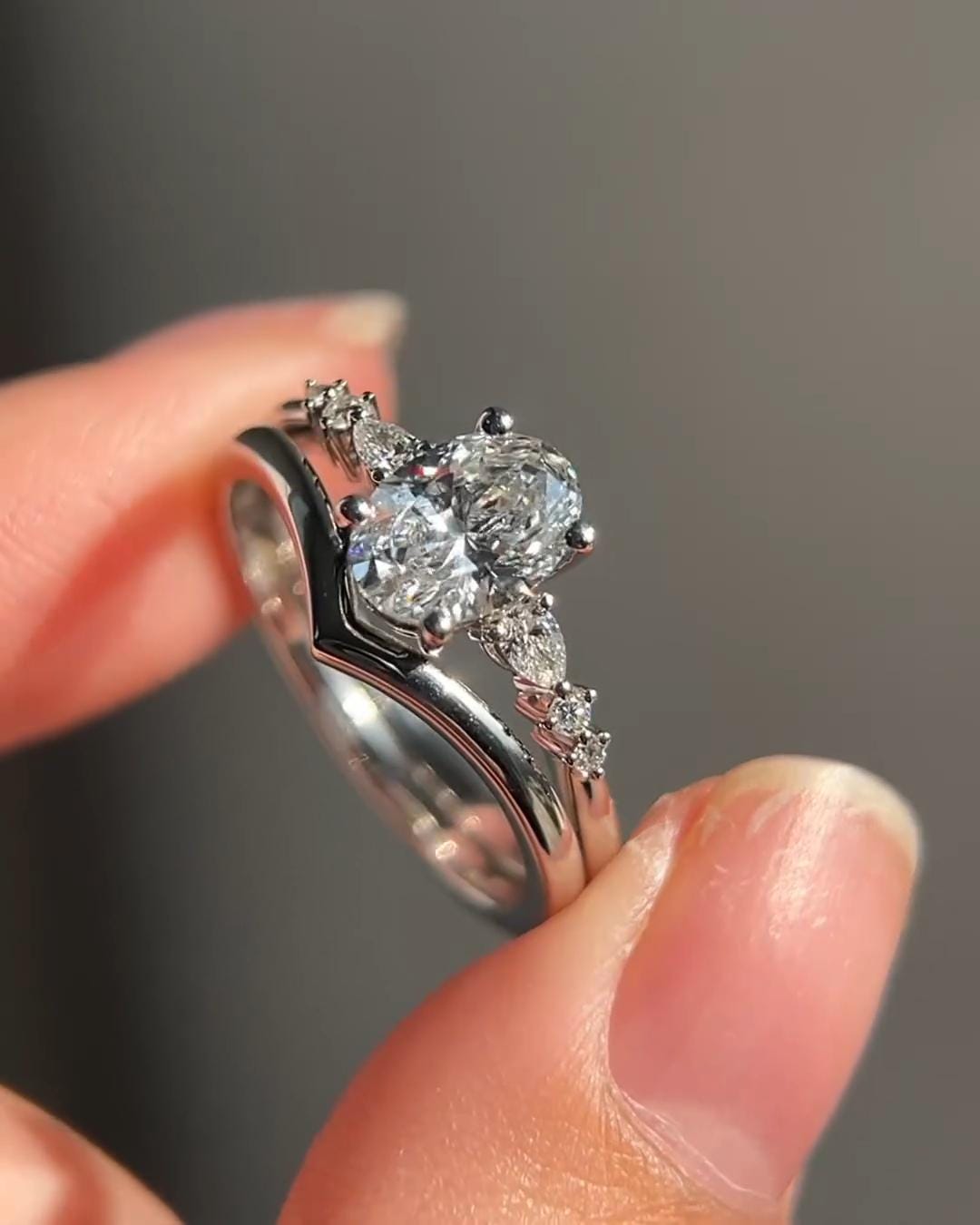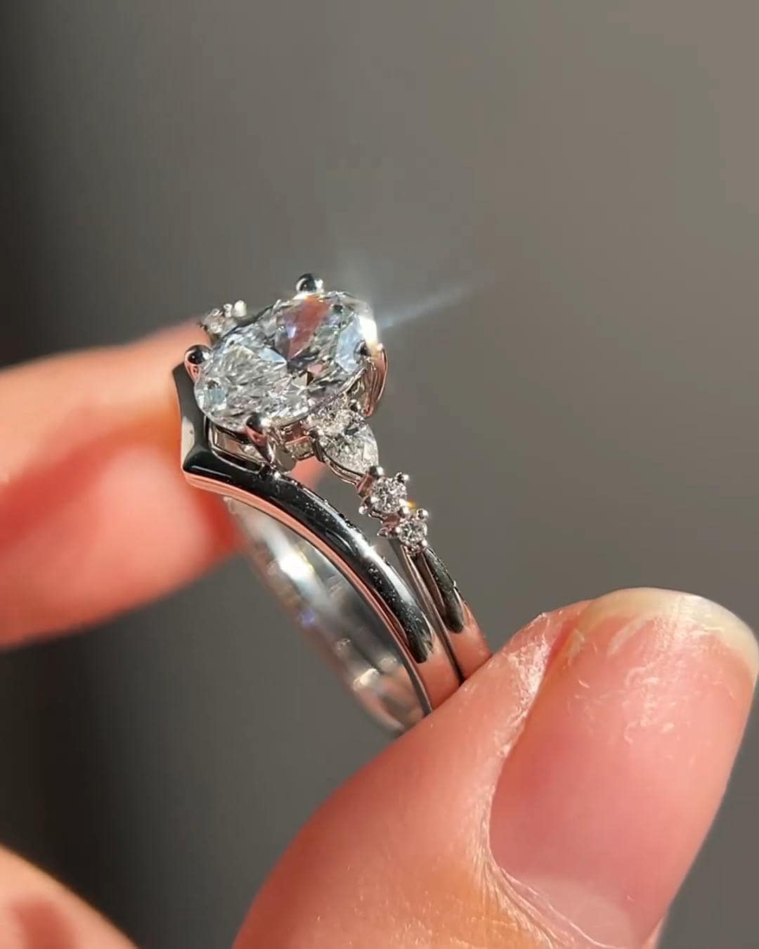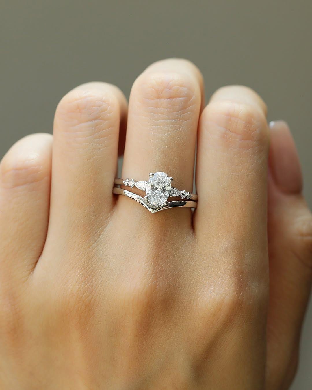 1.50 CT Sparkle Oval Cut Moissanite Diamond Engagement Ring Set With Side Pear And Round Cut Diamond 14K Solid Gold Solitaire Matching Band