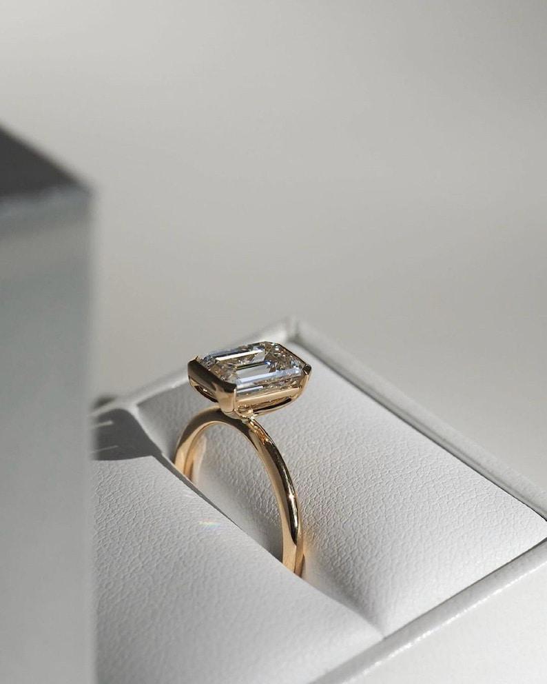 2.00 CT Emerald Cut Moissanite Half Bezel Set Diamond Ring 14K Solid Gold Solitaire Moissanite Wedding Gift Ring For Her Anniversary Ring