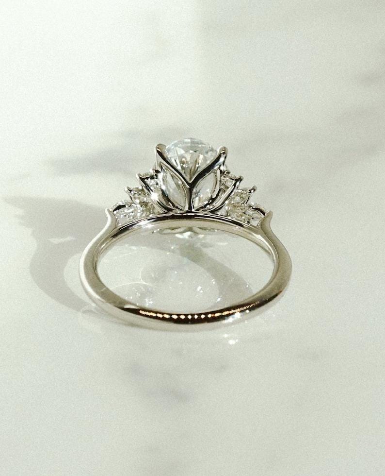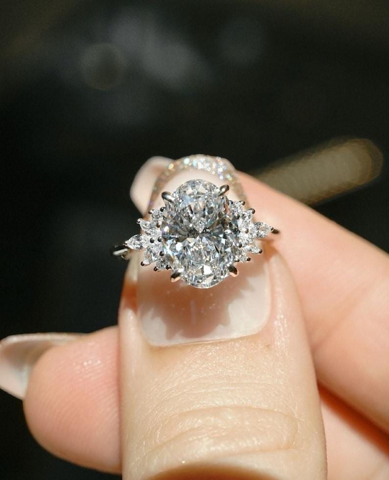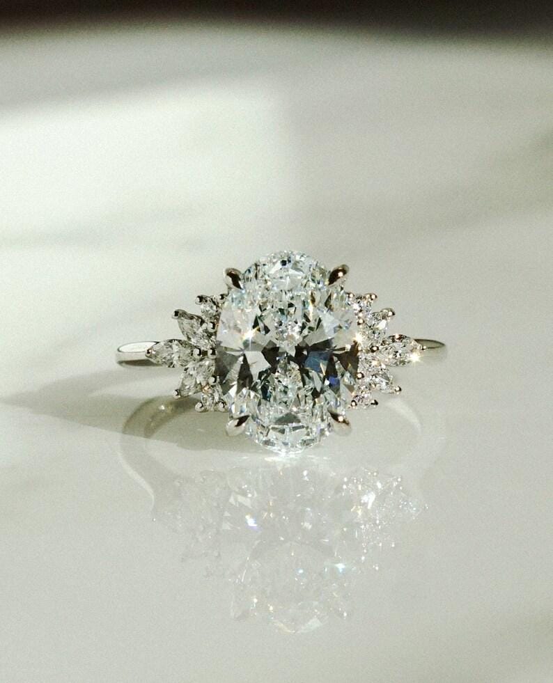 2.50 CT Elongated Oval Cut Moissanite Diamond Engagement Ring 14K Solid White Gold Solitaire Star Brust Style Wedding Gift Ring for Her
