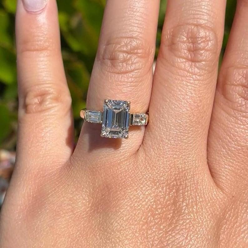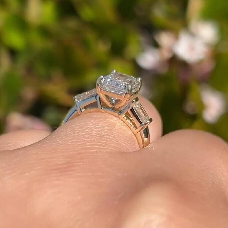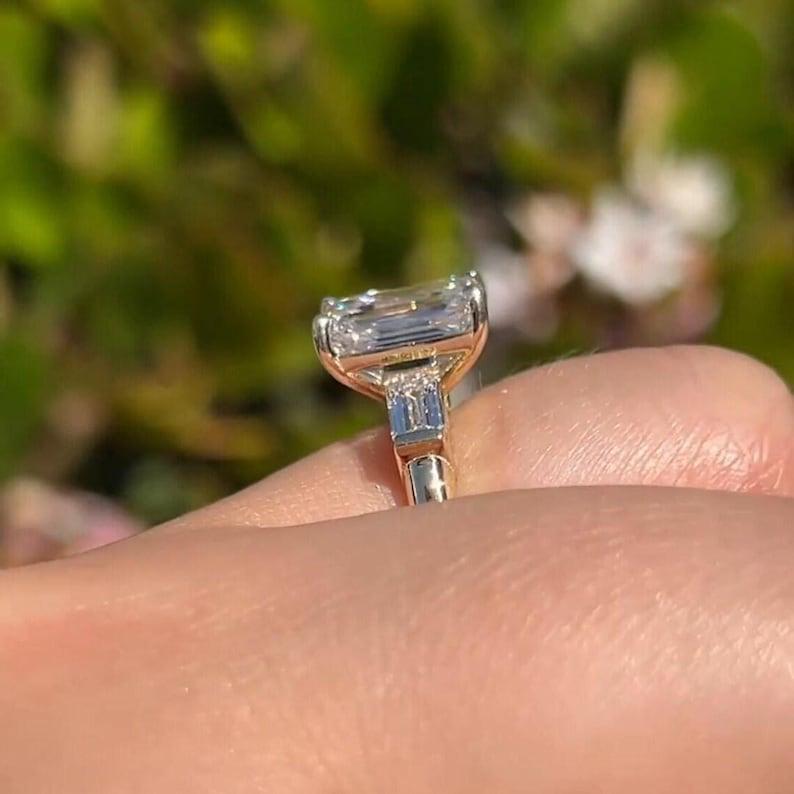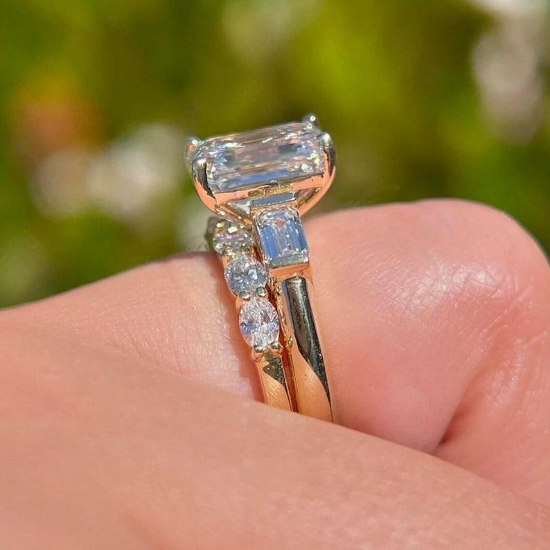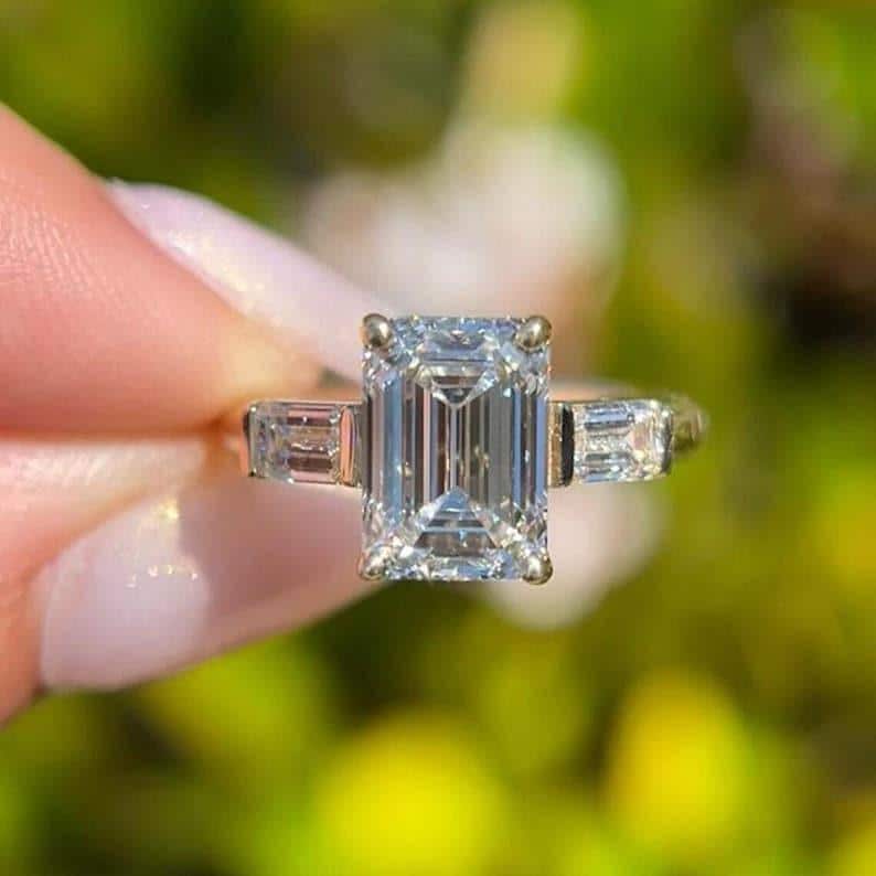 2.50 CT Emerald Cut Moissanite Diamond Three Stone Engagement Ring 14K Solid Yellow Gold Diamond Wedding Promise Ring Perfect Gift for Her