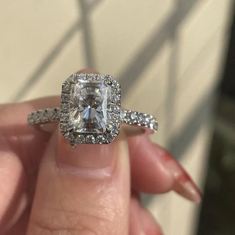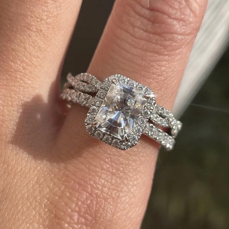 2.50 CT Radiant Cut Moissanite Engagement Ring Set Vintage 14K Solid Gold Wedding Ring Set Hidden Halo With Infinity Band Bridal Ring Set