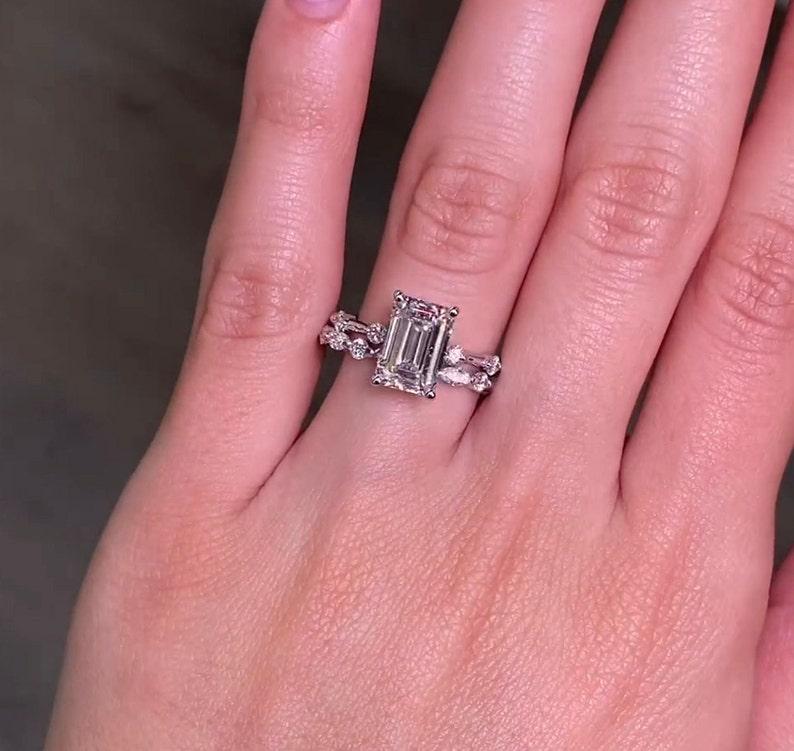 2.50 CT Emerald Cut Moissanite Diamond Engagement Bridal Set 14K Solid Gold Marquise Round Wedding Ring Band Promise Ring Set Gift For Her