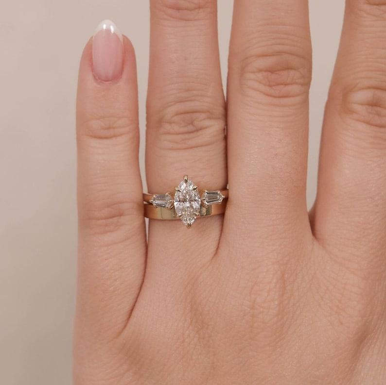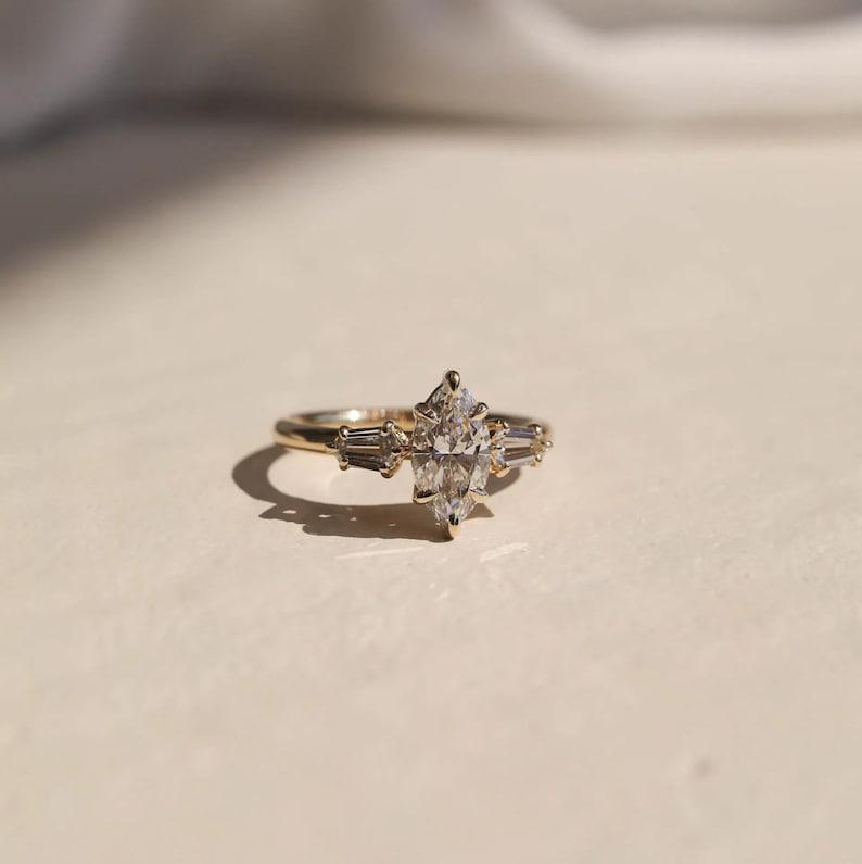 1 CT Unique Marquise Cut Three Stone Moissanite Diamond Engagement Ring 14K Solid Gold Wedding Ring Bullet Baguette Promise Gift Ring For Her, Marquise Promise Ring, Gift Ring, Rings For Women, Statement Ring, Vintage Engagement Ring, Promise Rings For Her Diamond Rings, Marquise Cut Ring Gifts For Her, Bridal Ring, Handmade Rings, Personalization Jewelry.