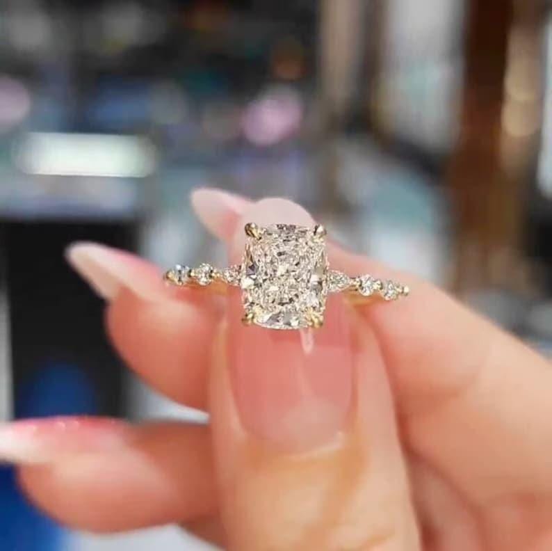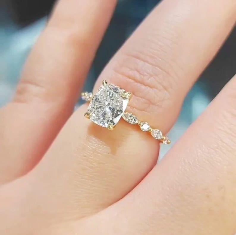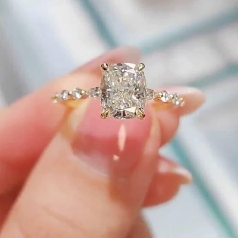 2 CT Cushion Cut Moissanite Engagement Ring Vintage 14K Solid Gold Anniversary Ring Promise Wedding Ring Proposal Ring For Her Diamond Ring