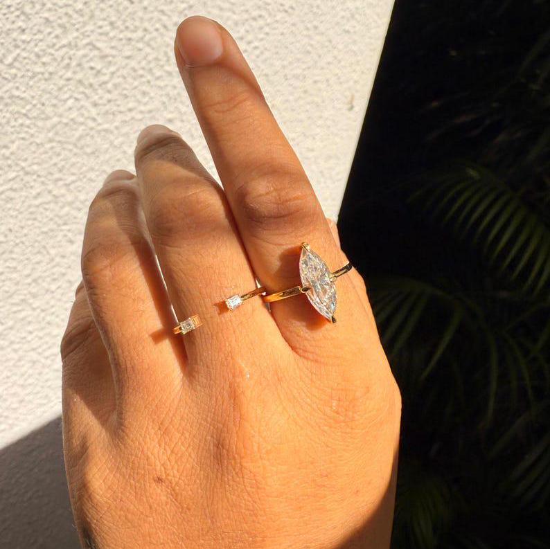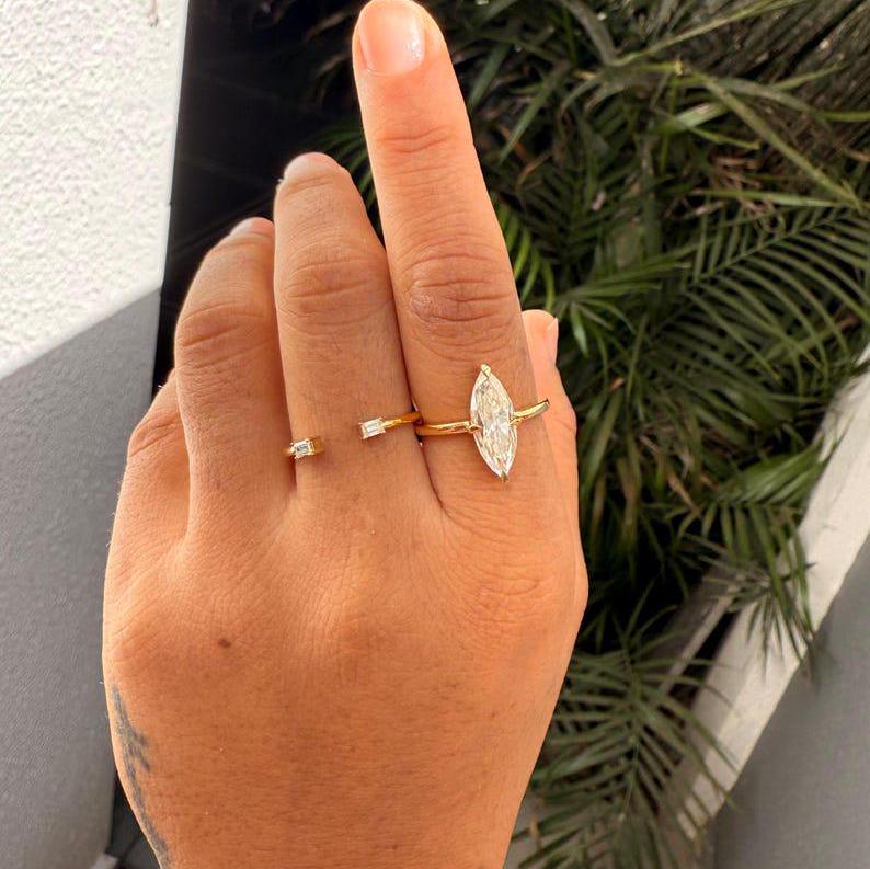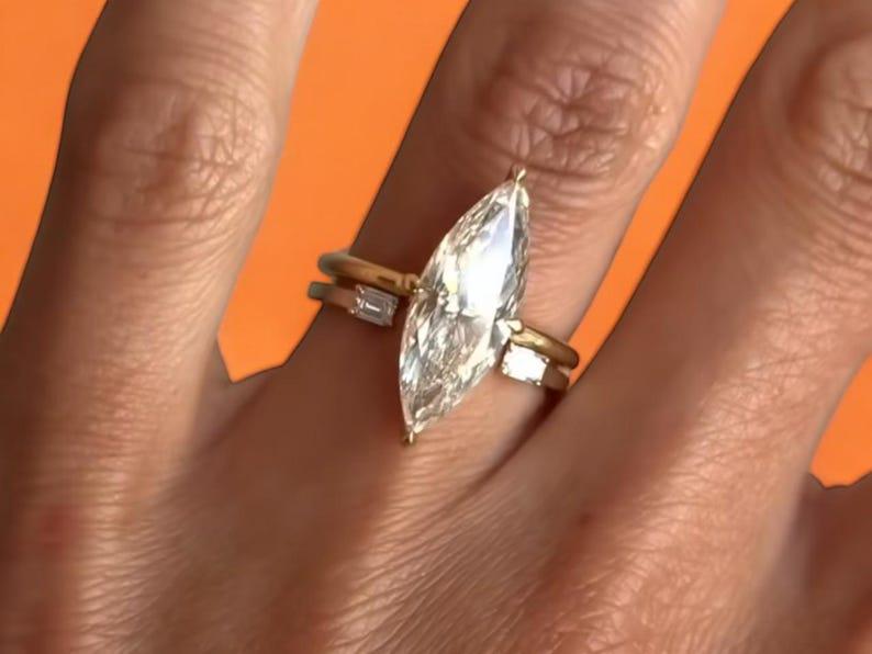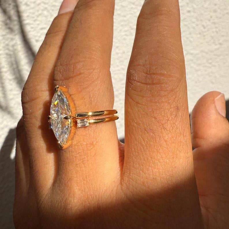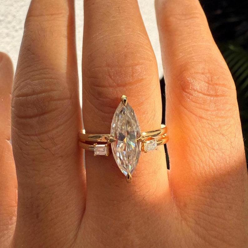 3.00 CT Elongated Marquise Cut Moissanite Engagement Ring Set Marquise Bridal Ring Set With Matching 14K Gold Unique Wedding Band Ring Set, Marquise Promise Ring, Gift Ring, Rings For Women, Statement Ring, Vintage Engagement Ring, Promise Rings For Her Diamond Rings, Marquise Cut Ring Gifts For Her, Bridal Ring, Handmade Rings, Personalization Jewelry.
