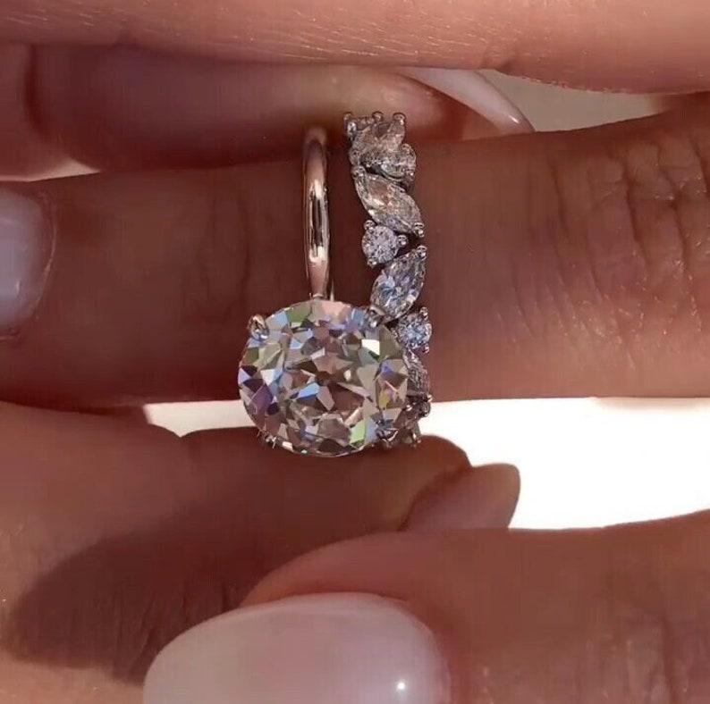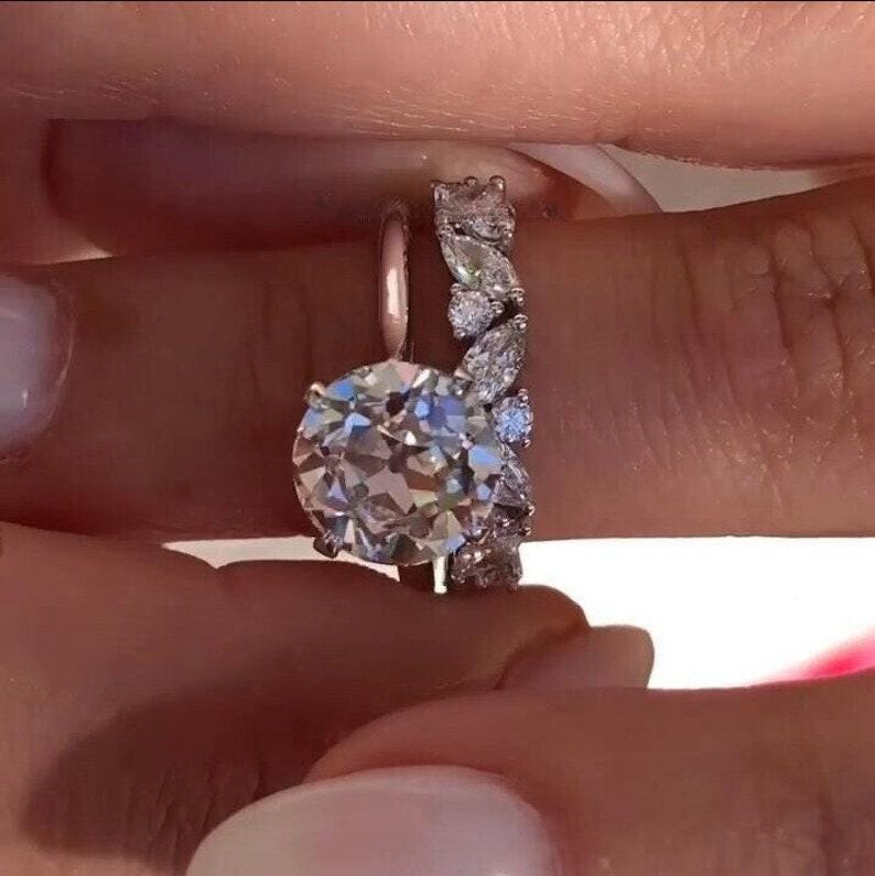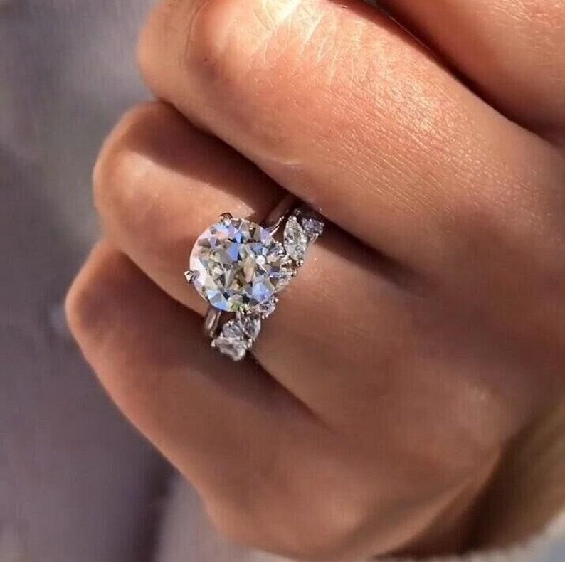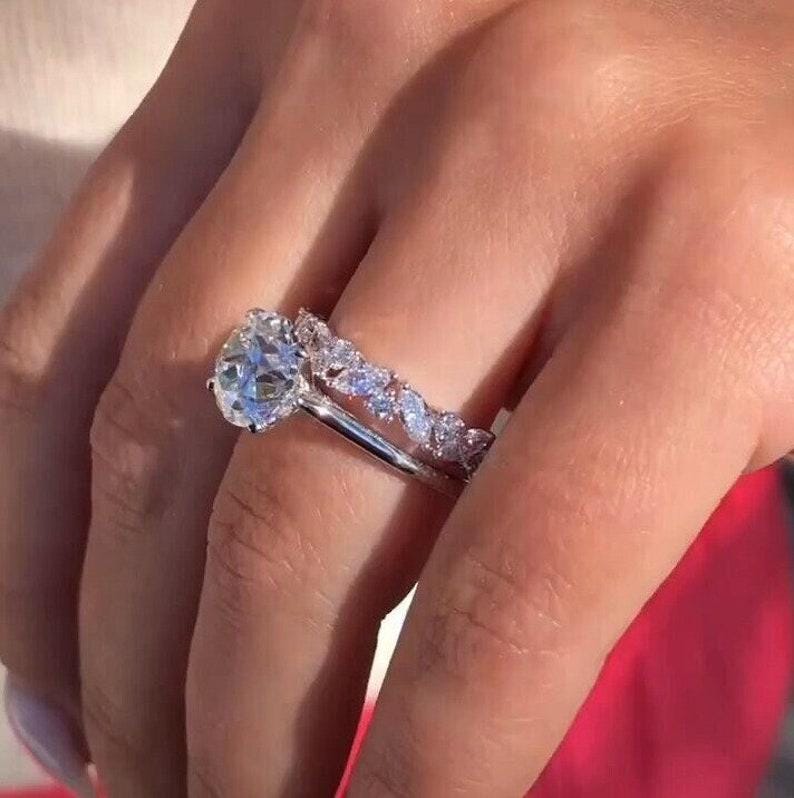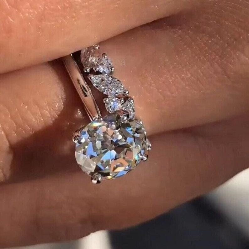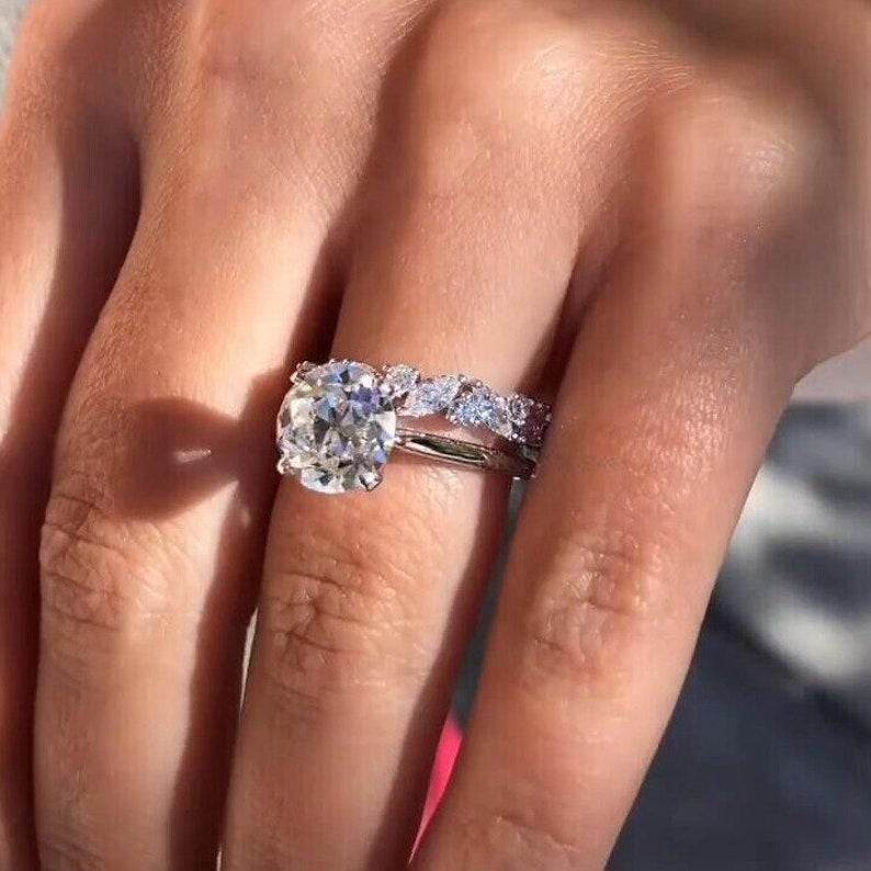 3 CT Round Old European Cut Moissanite Engagement Ring Set Old Mine Cut Solitaire 14K Solid Gold Wedding Ring Set Gift For Her Promise Ring