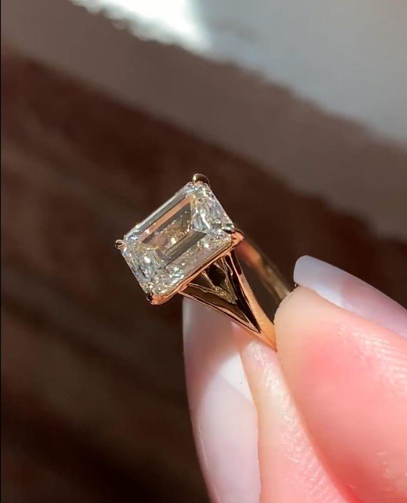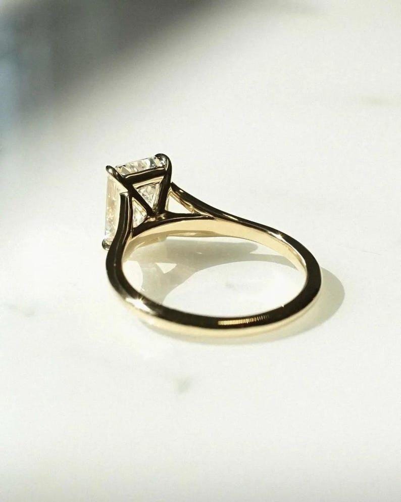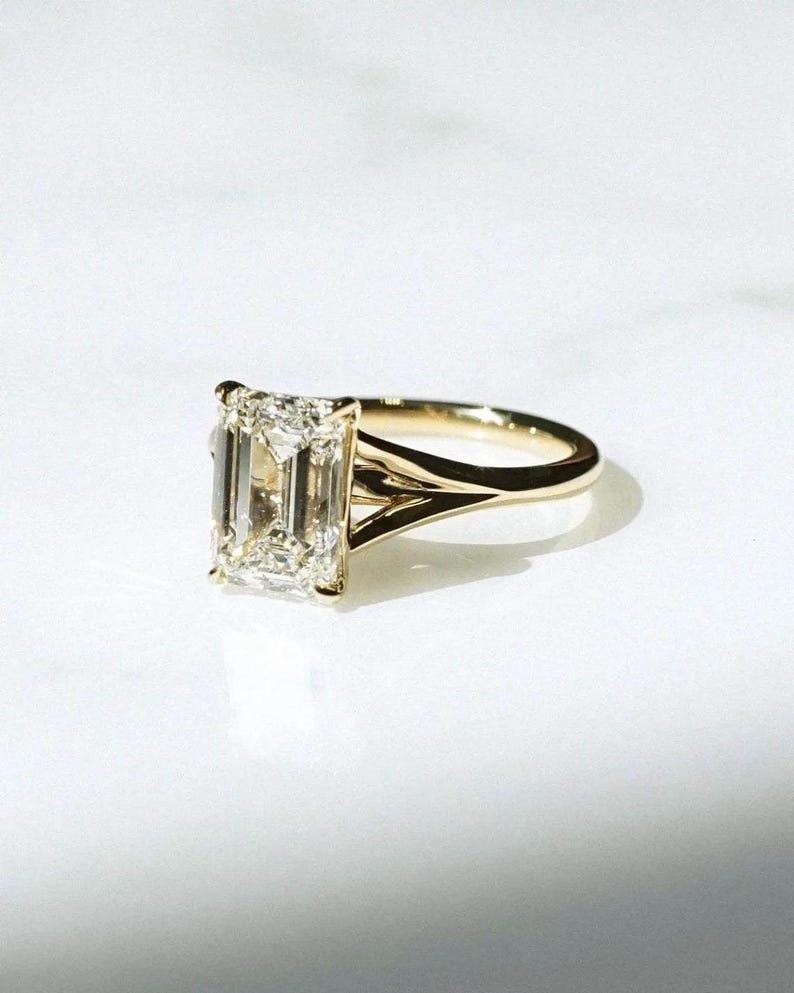 3.00 CT Split Shank Emerald Cut Moissanite Engagement Ring 14K Solid Gold Solitaire Moissanite Wedding Ring For Women Anniversary Gift Ring
