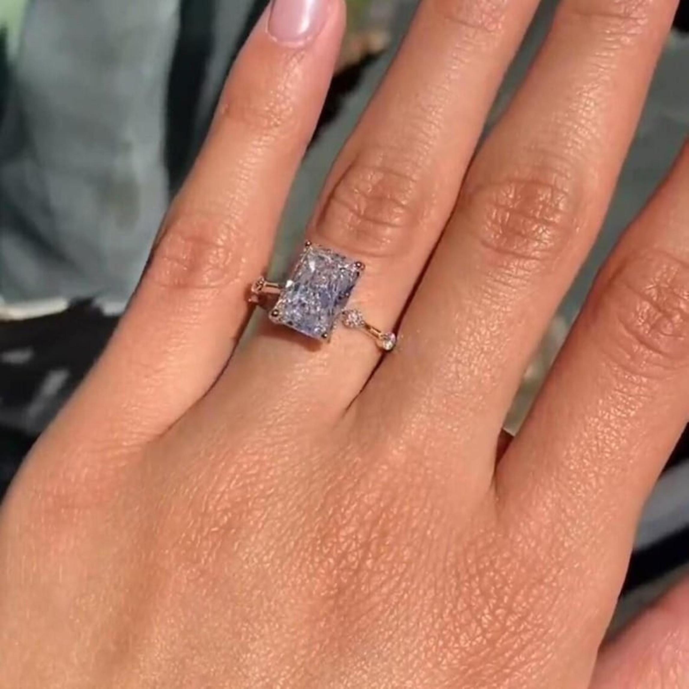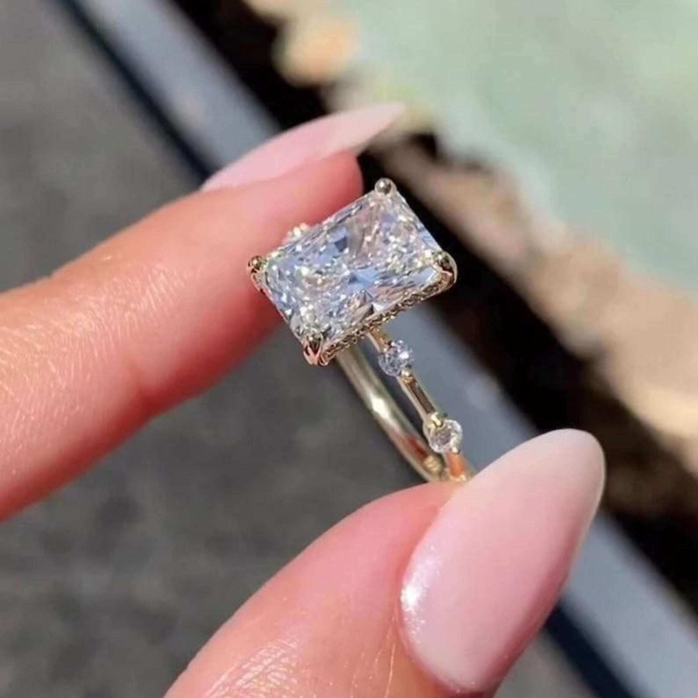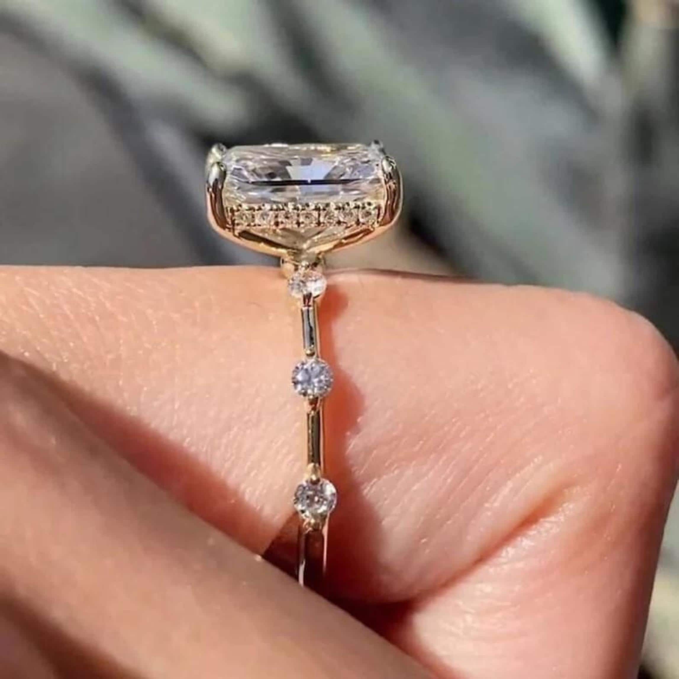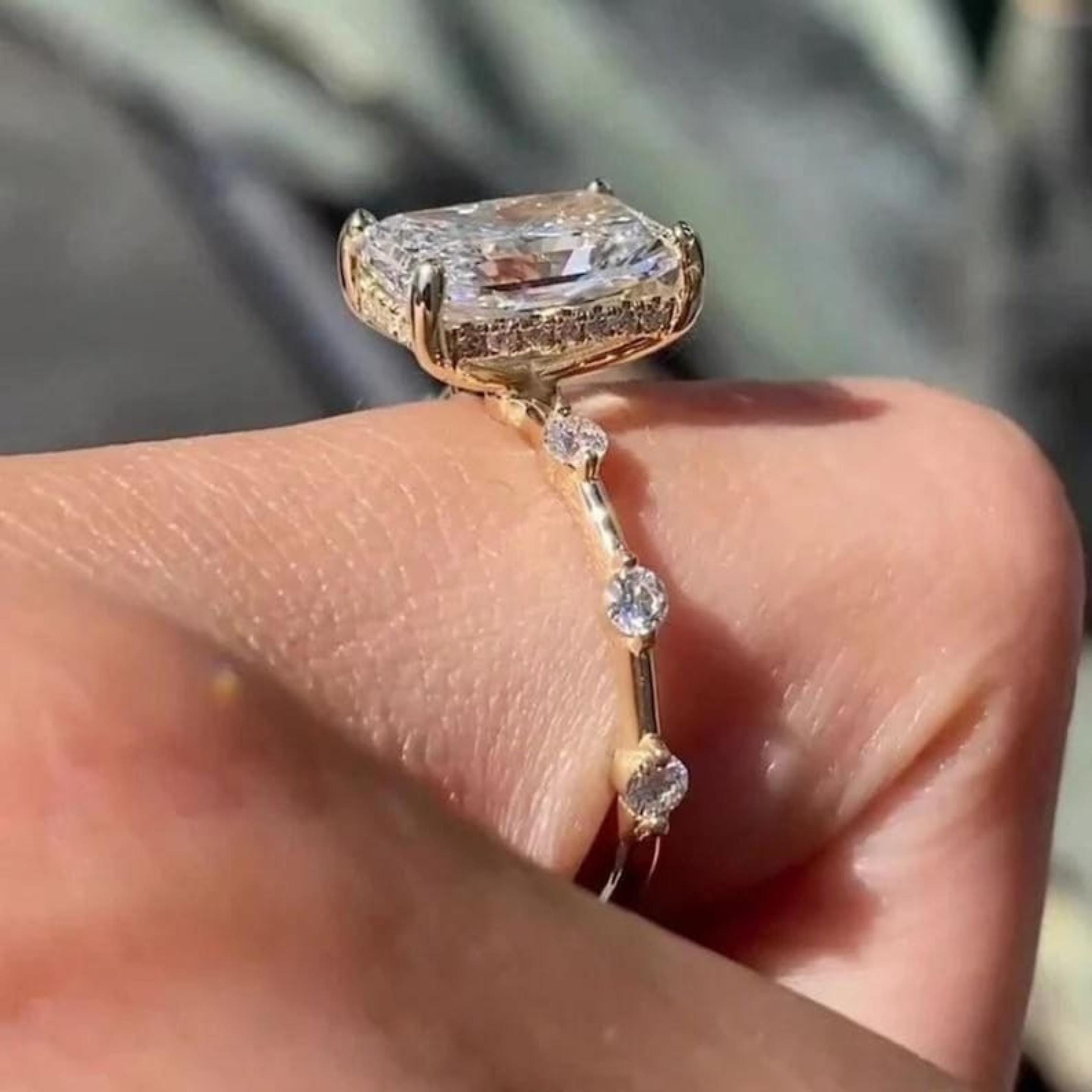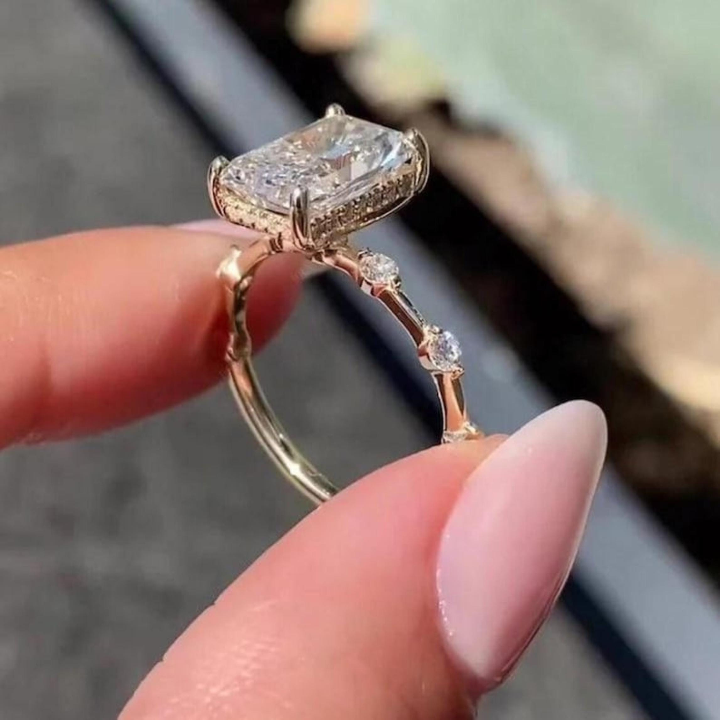 2.50 CT Radiant Cut Hidden Halo Moissanite Diamond Engagement Ring 14K Solid Gold Distance Pave Set Band Perfect Wedding Gift Ring For Her