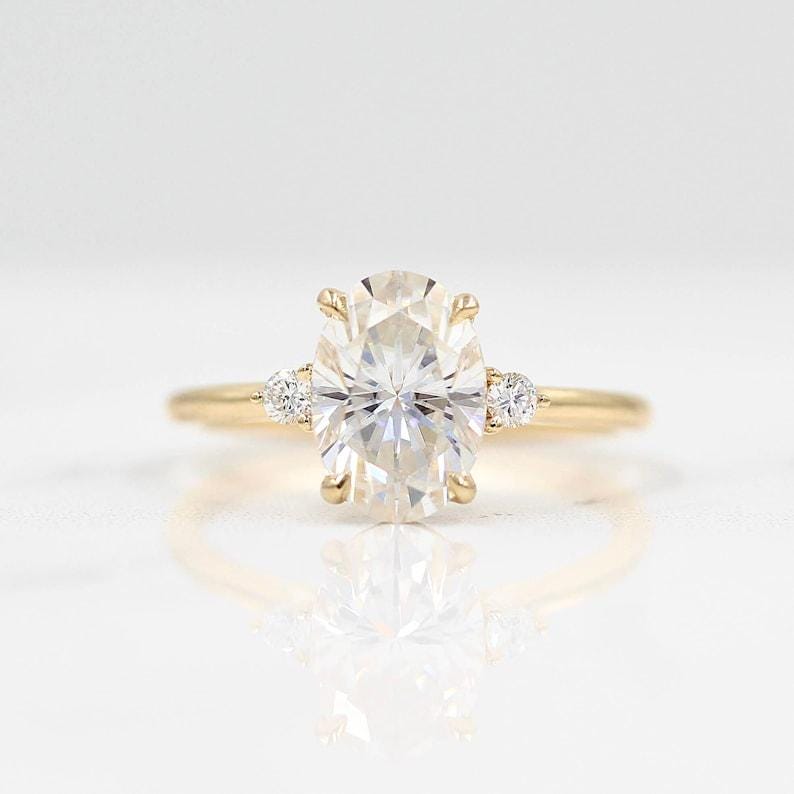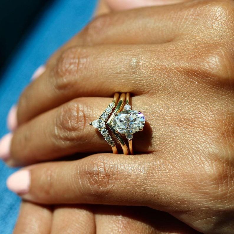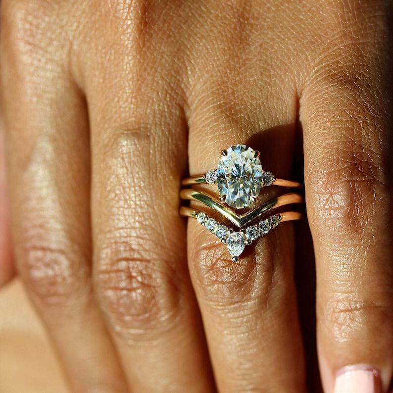 3 CT Oval Cut Moissanite Diamond Bridal Three Stone Engagement Ring Set 14K Solid Yellow Gold Wedding Ring Set Perfect Anniversary Gift Set