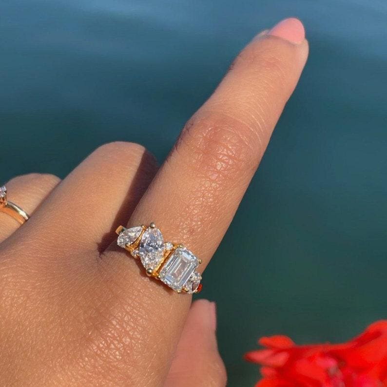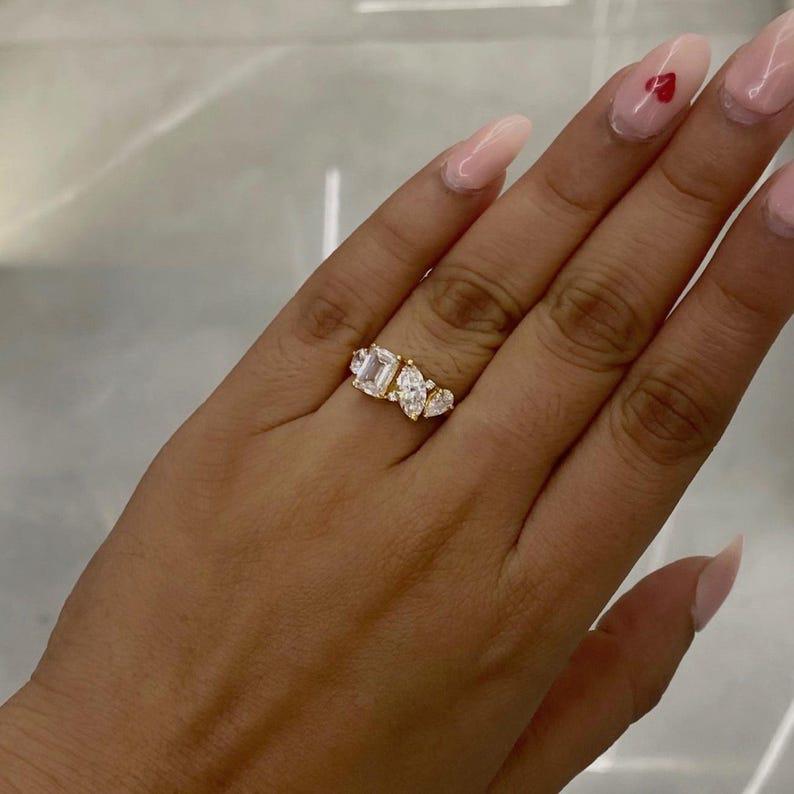 Unique Handmade Moissanite Diamond Engagement Ring 14K Solid Yellow Gold Solitaire Mix Shape Moissanite Diamond Wedding Perfect Gift Ring, Marquise Promise Ring, Gift Ring, Rings For Women, Statement Ring, Vintage Engagement Ring, Promise Rings For Her Diamond Rings, Marquise Cut Ring Gifts For Her, Bridal Ring, Handmade Rings, Personalization Jewelry.