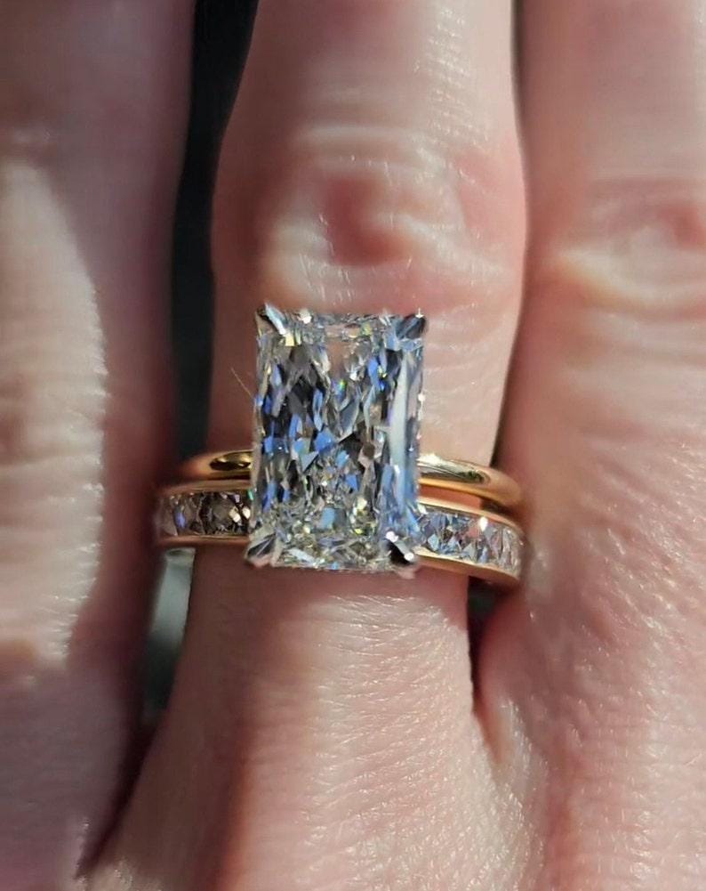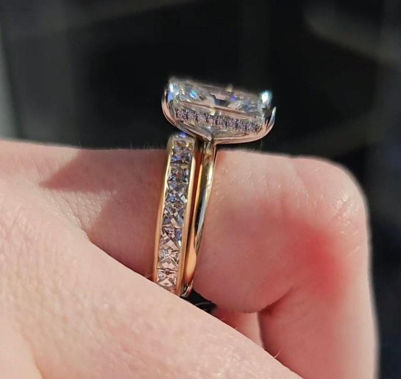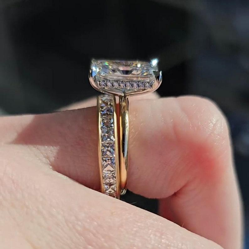 3.00 CT Radiant Moissanite Diamond Bridal Ring Set Solid Gold Art Nouveau Engagement Ring Anniversary Celebration Set Wedding Gift Ring Set