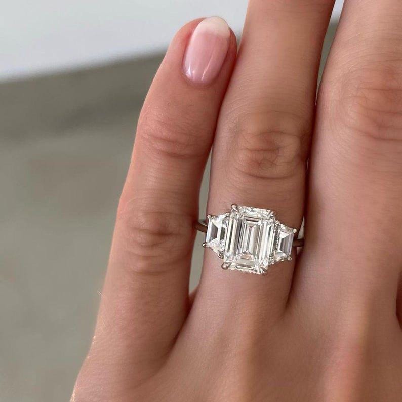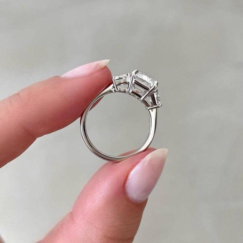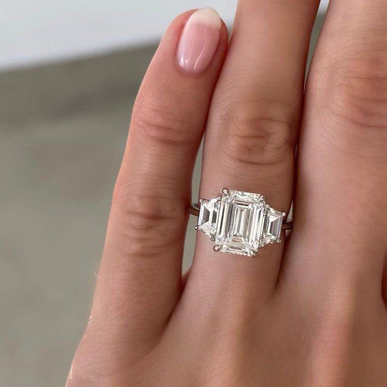 4.00 TCW Emerald Cut Three Stone Moissanite Diamond Engagement Ring 14K Solid White Gold Wedding Ring For Women Diamond Ring Anniversary Gift