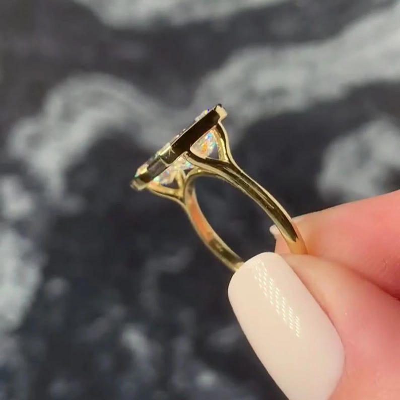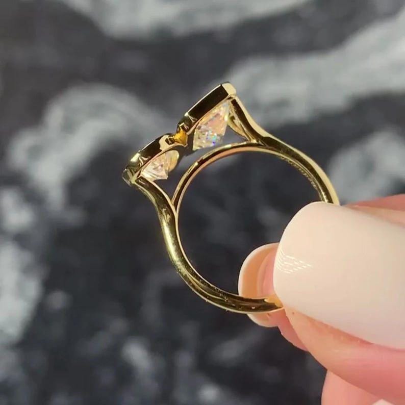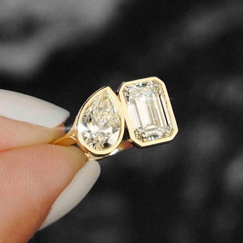 4.00 TCW Toi Et Moi Pear And Emerald Cut Moissanite Engagement Ring 14K Solid Gold Solitaire Bezel Set Two Stone Wedding Anniversary Ring