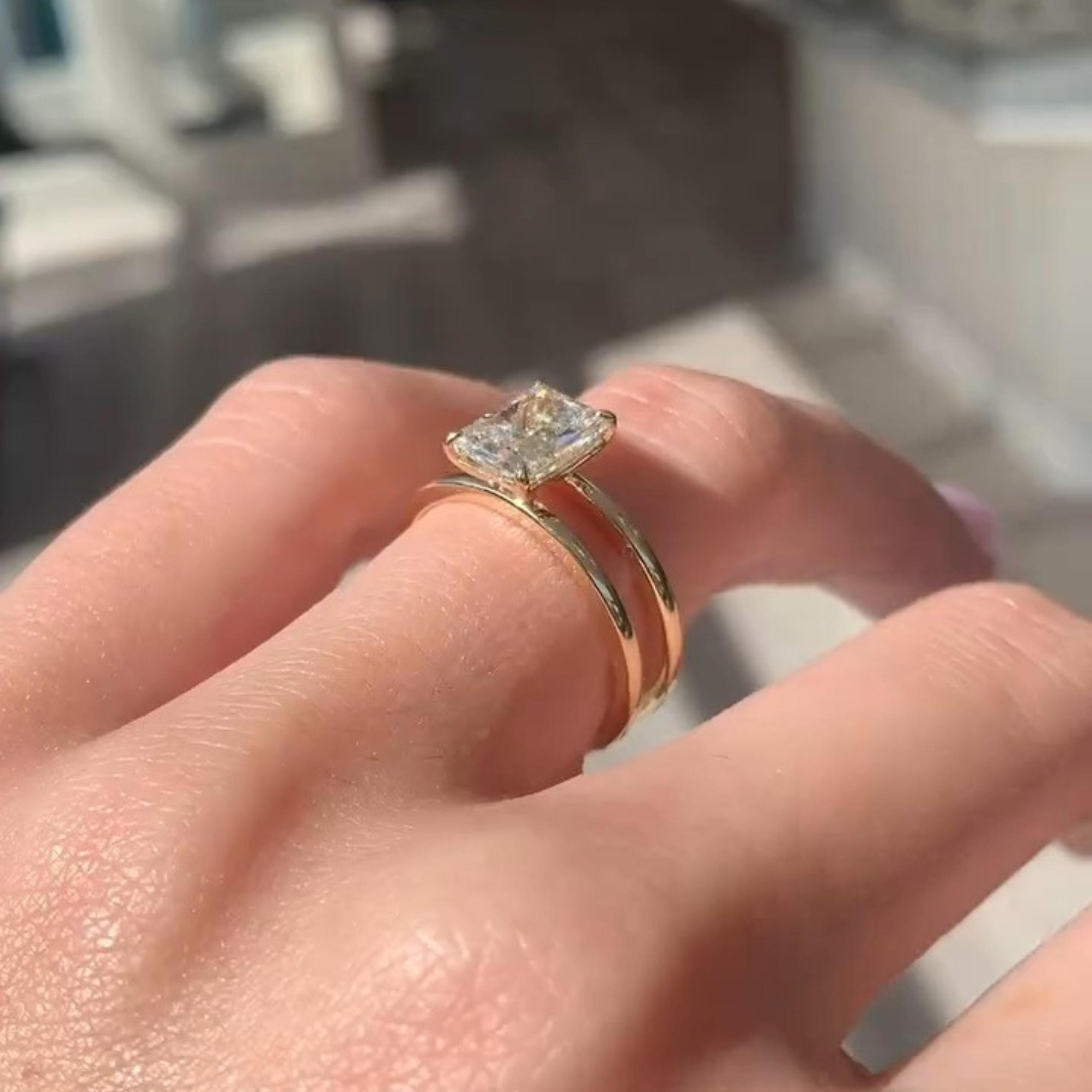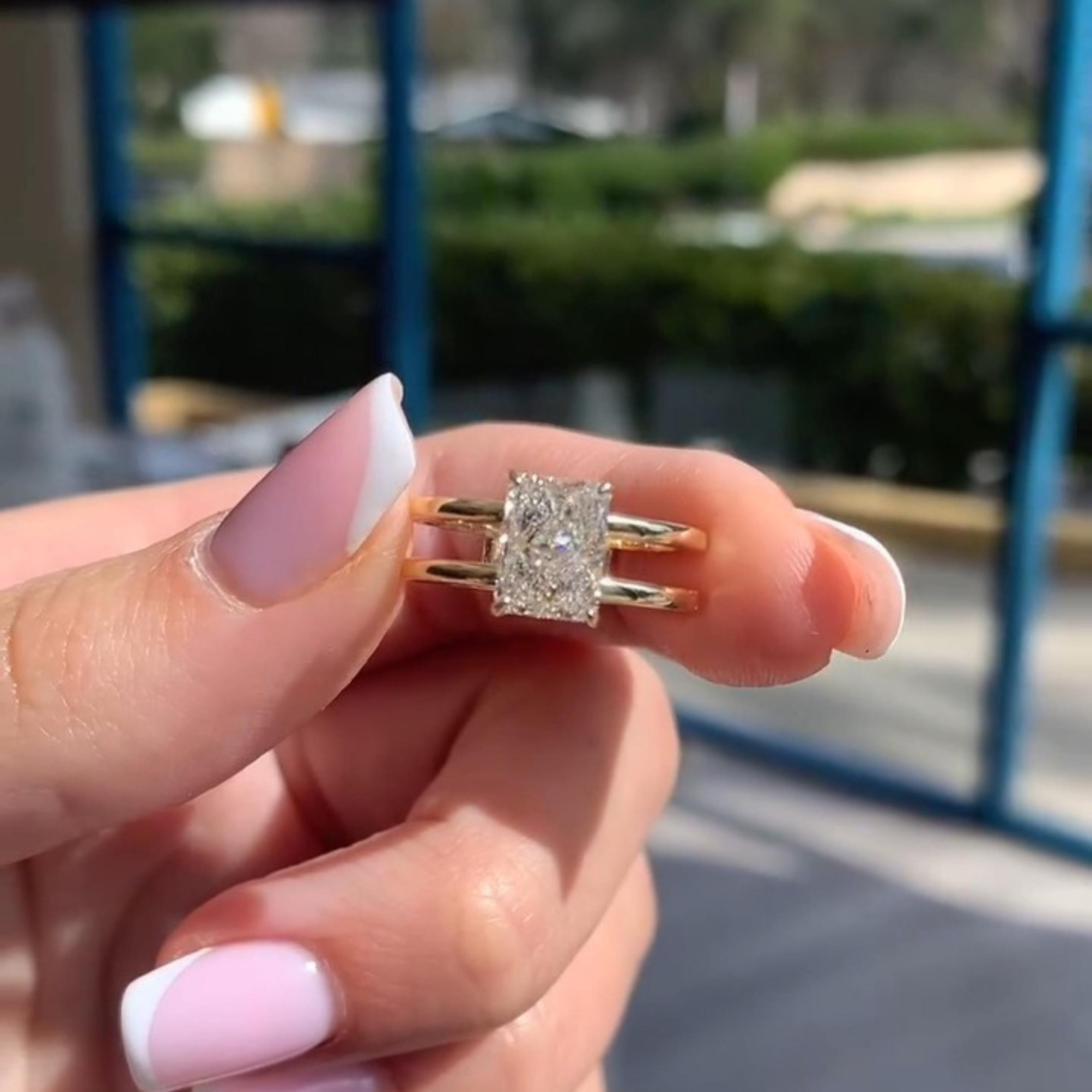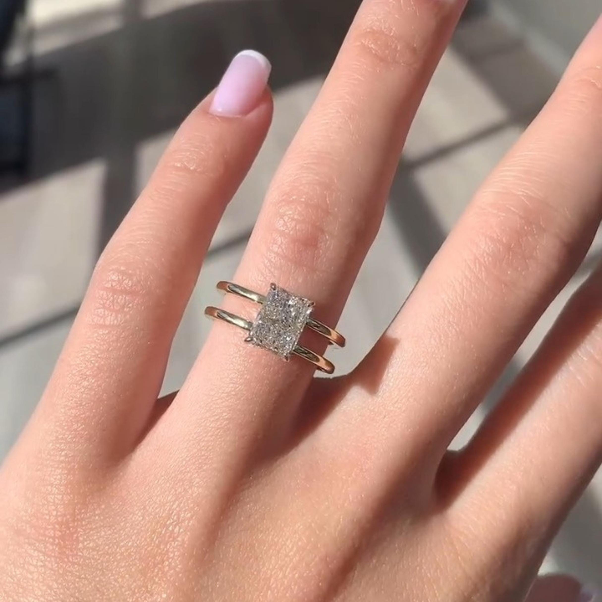 2.50 CT Radiant Cut Double Band Moissanite Engagement Ring 14K Solid Yellow Gold Solitaire Wedding Ring Perfect Promise Gift Ring For Her