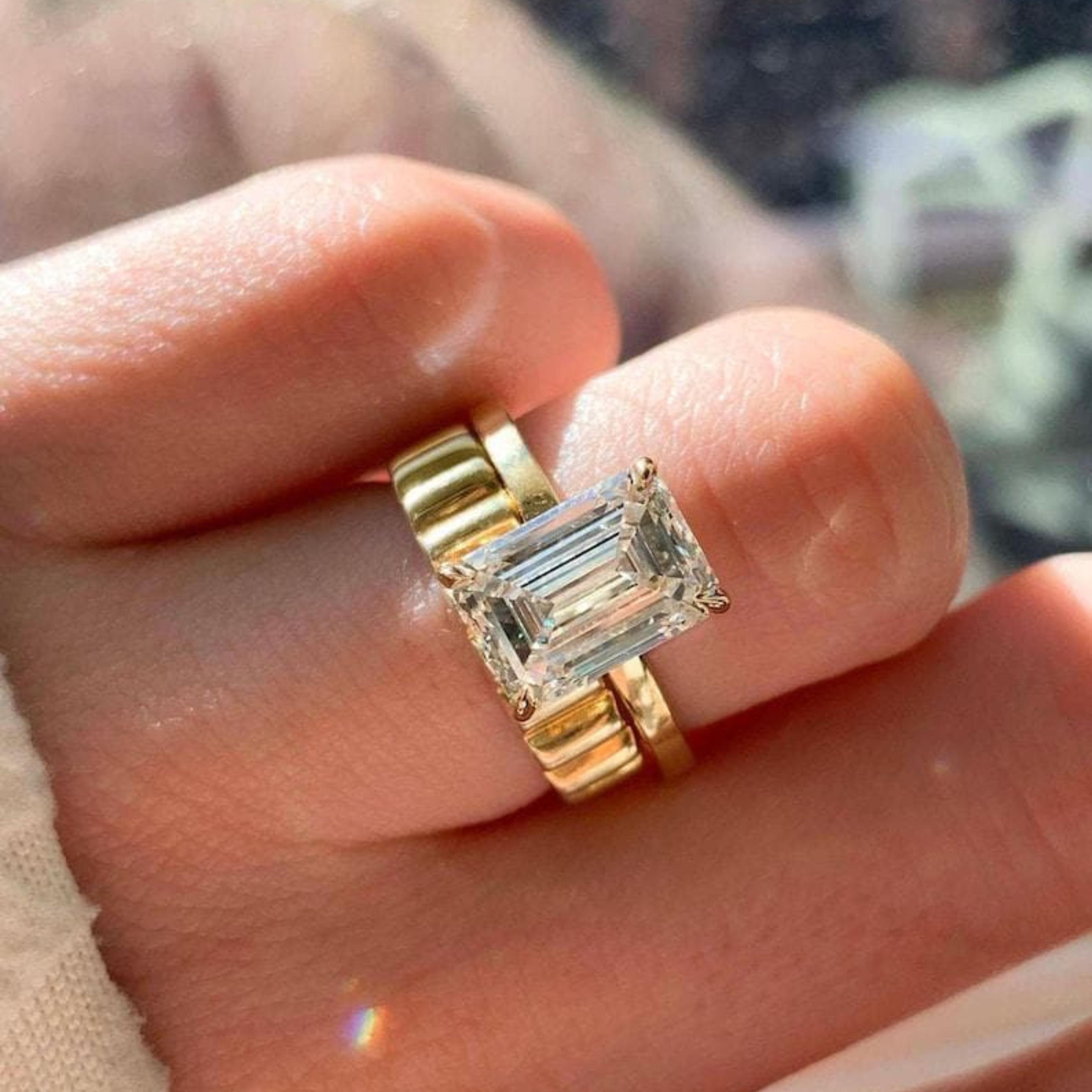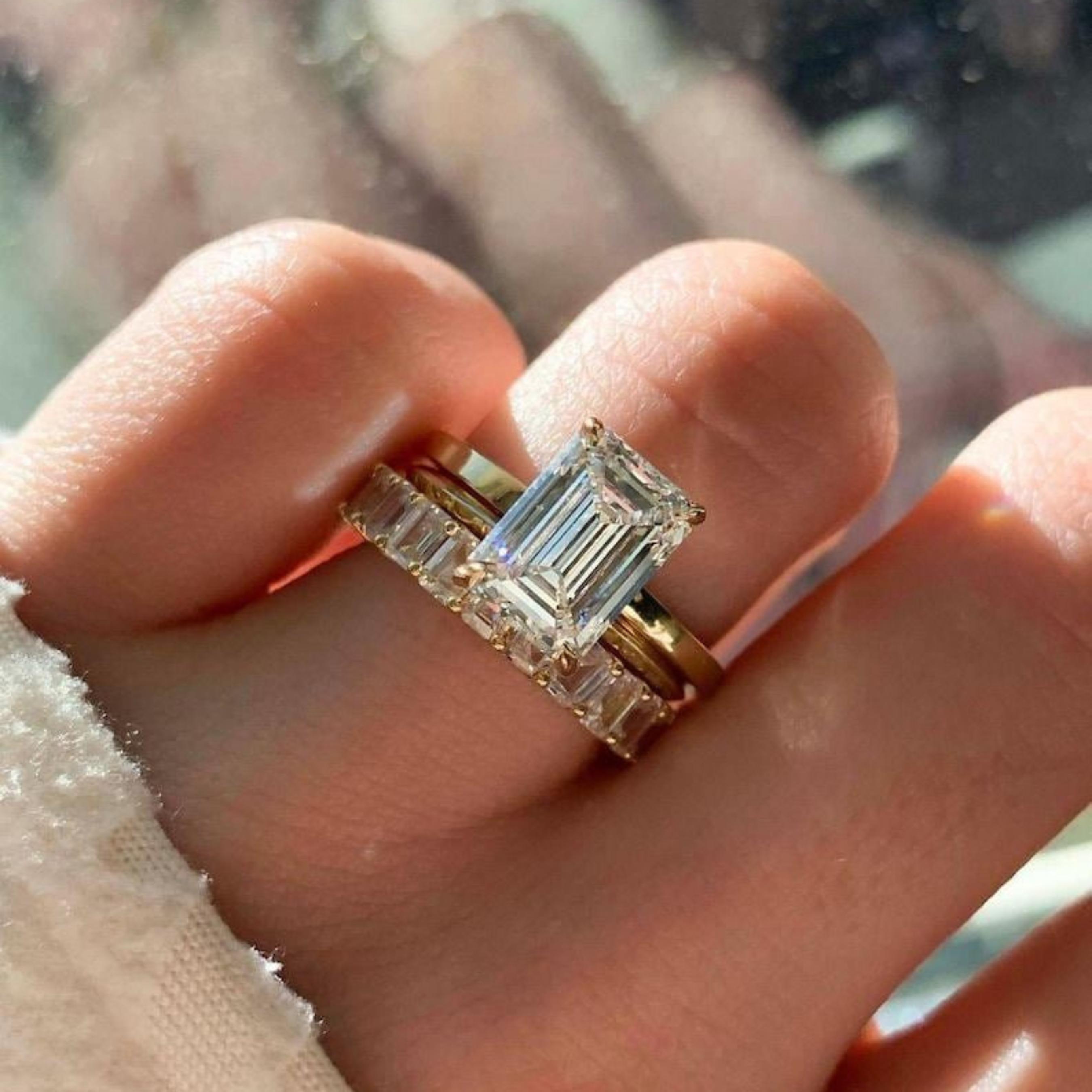 3.00 CT Emerald Cut Solitaire Engagement Ring 14K Gold Wedding Ring Emerald Cut Hidden Halo Wedding Ring Promise Anniversary Ring For Women