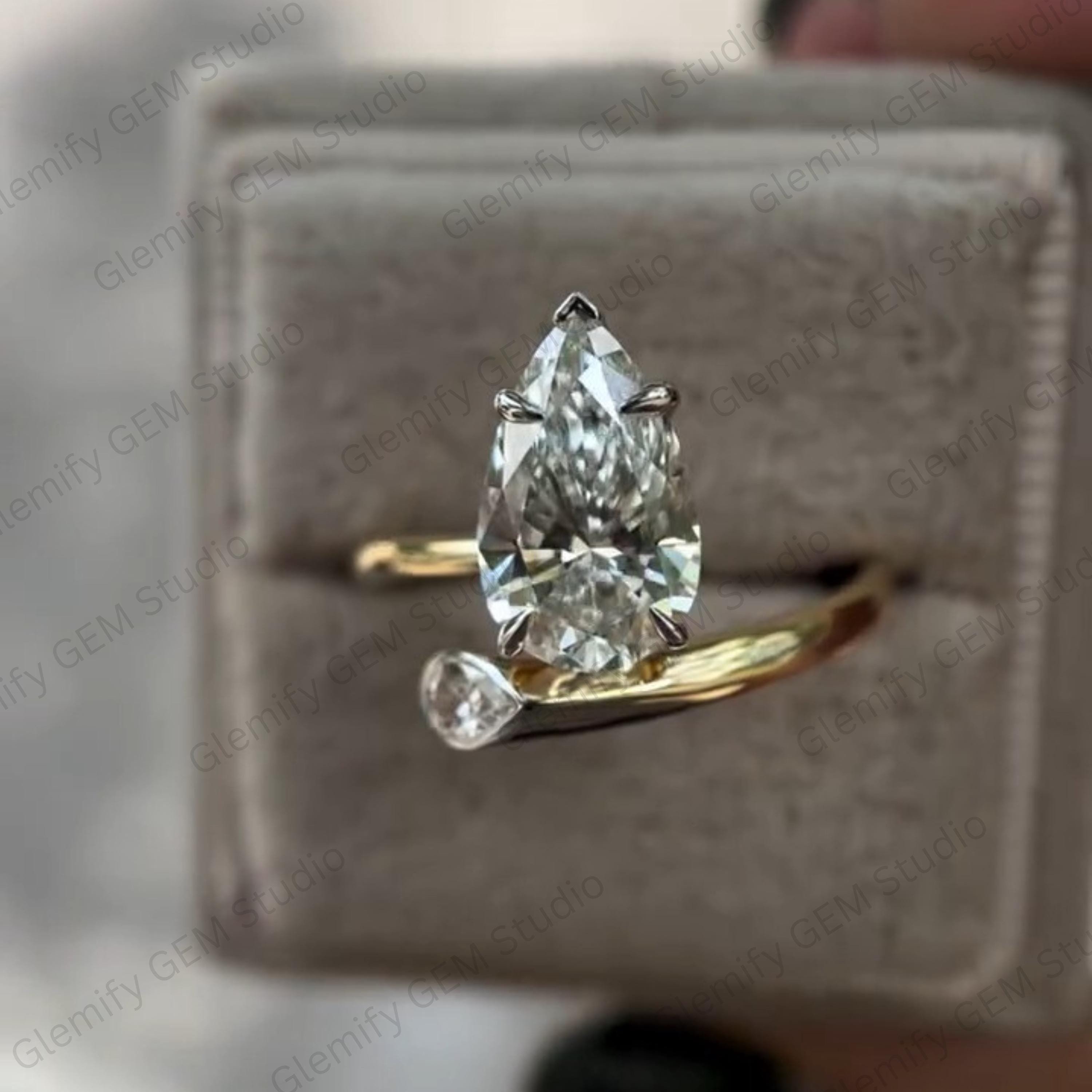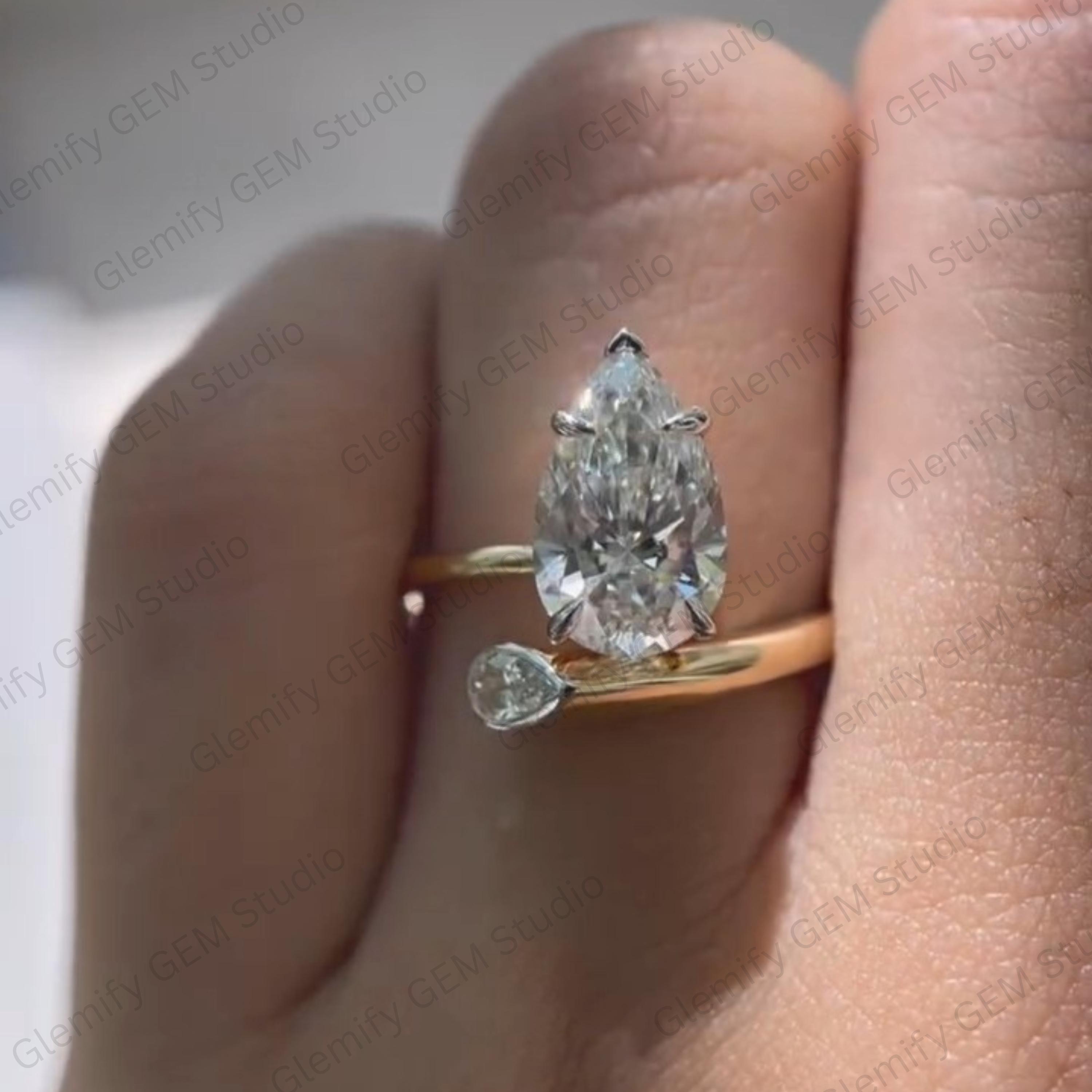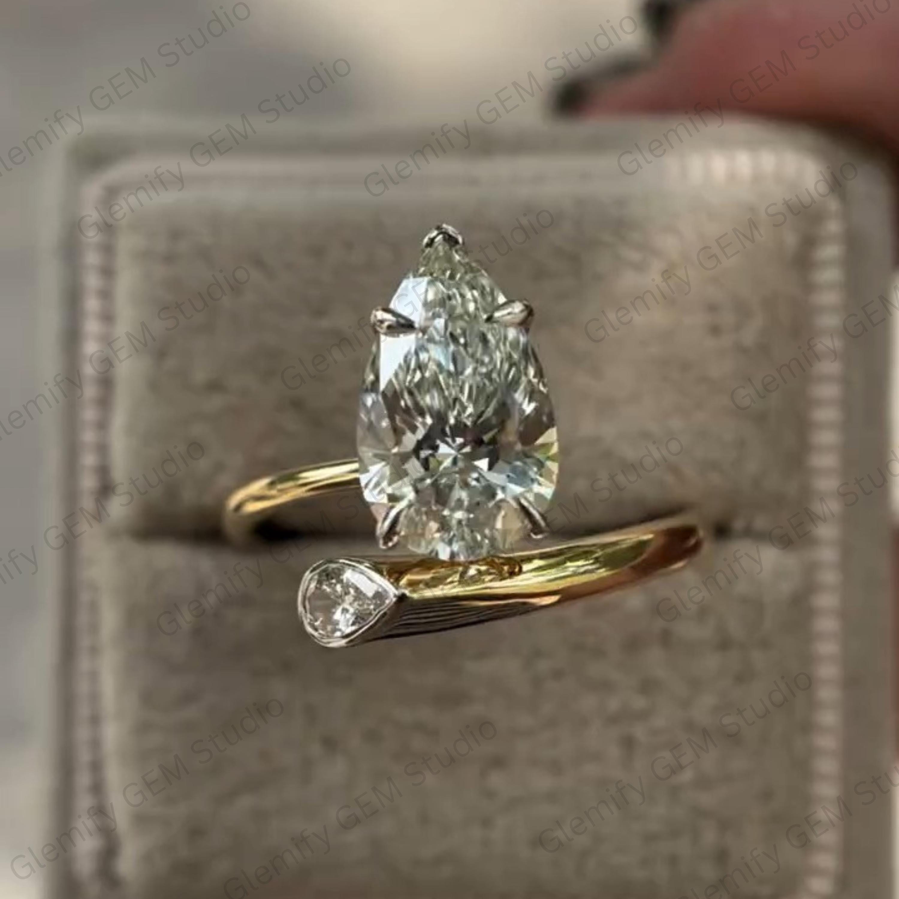 Unique 3 CT Pear Cut Moissanite With Bezel Set Two Stone Vintage 14K Gold Solitaire Engagement Ring Promise Wedding Ring Gift For Women