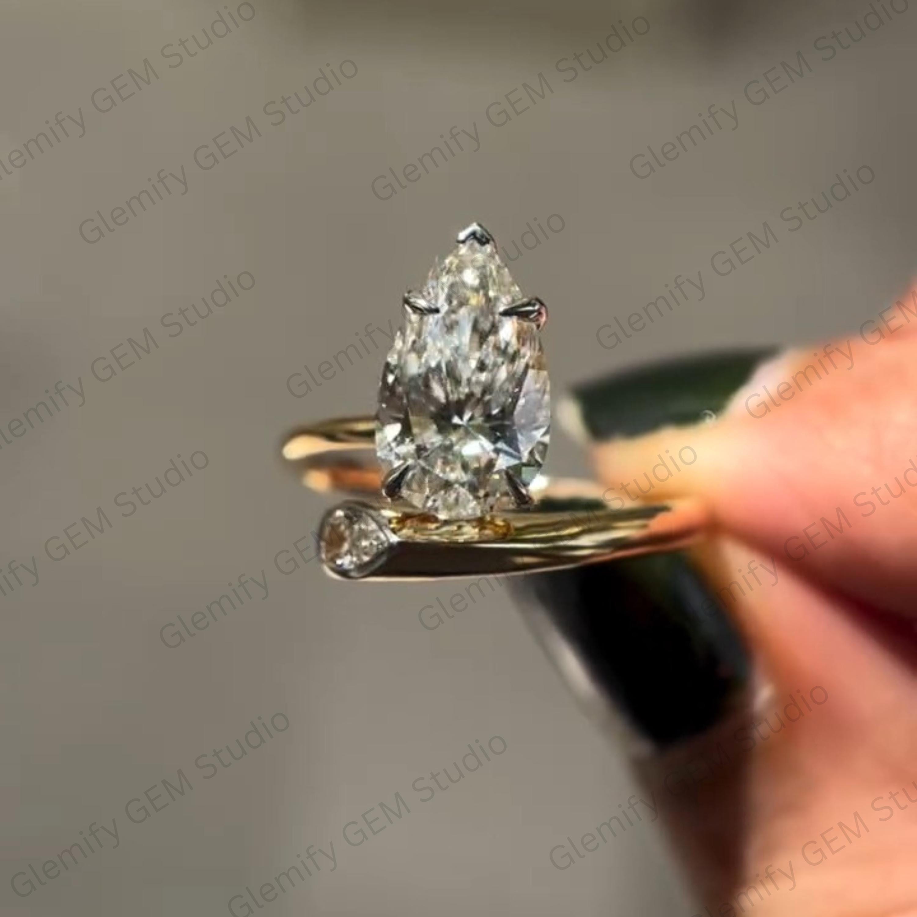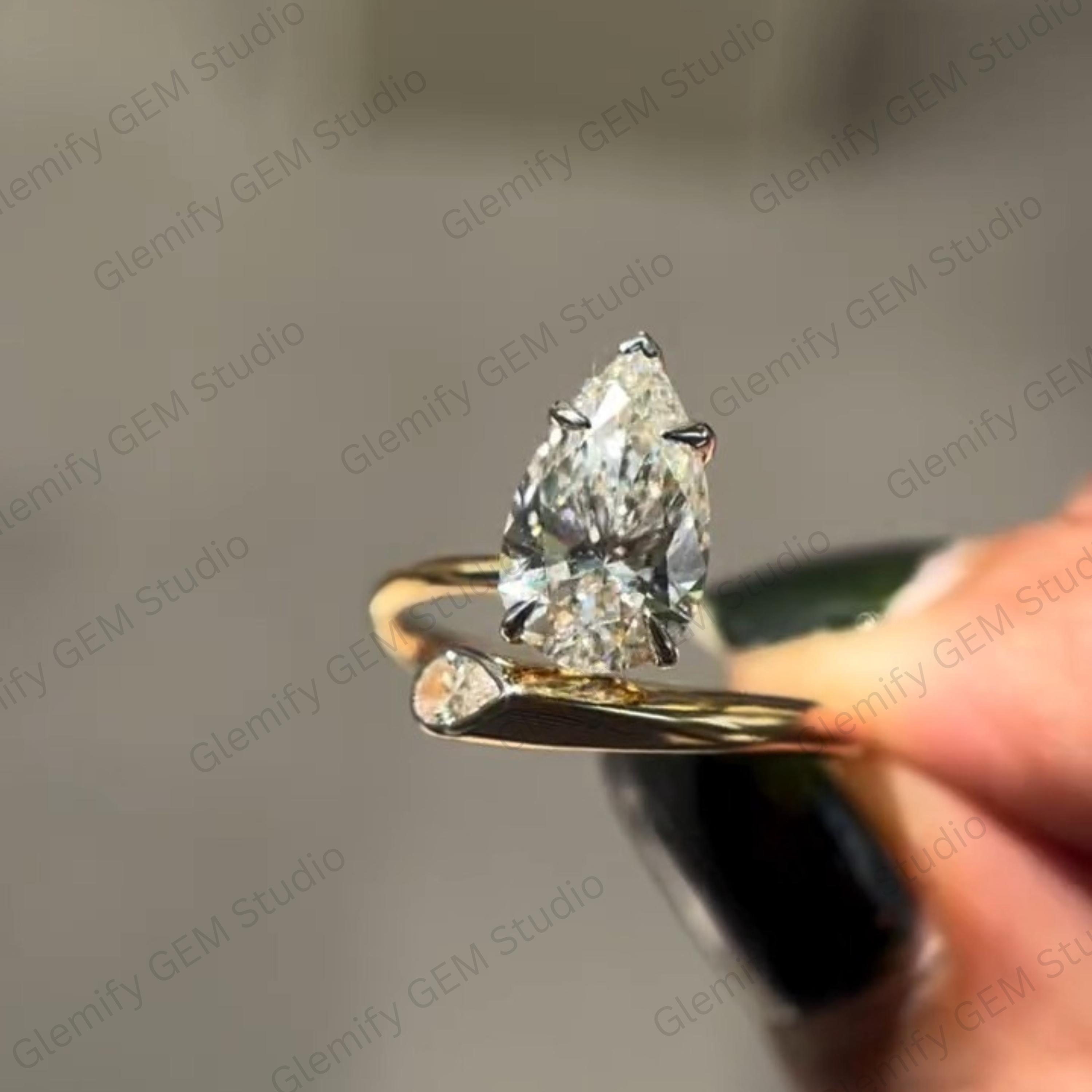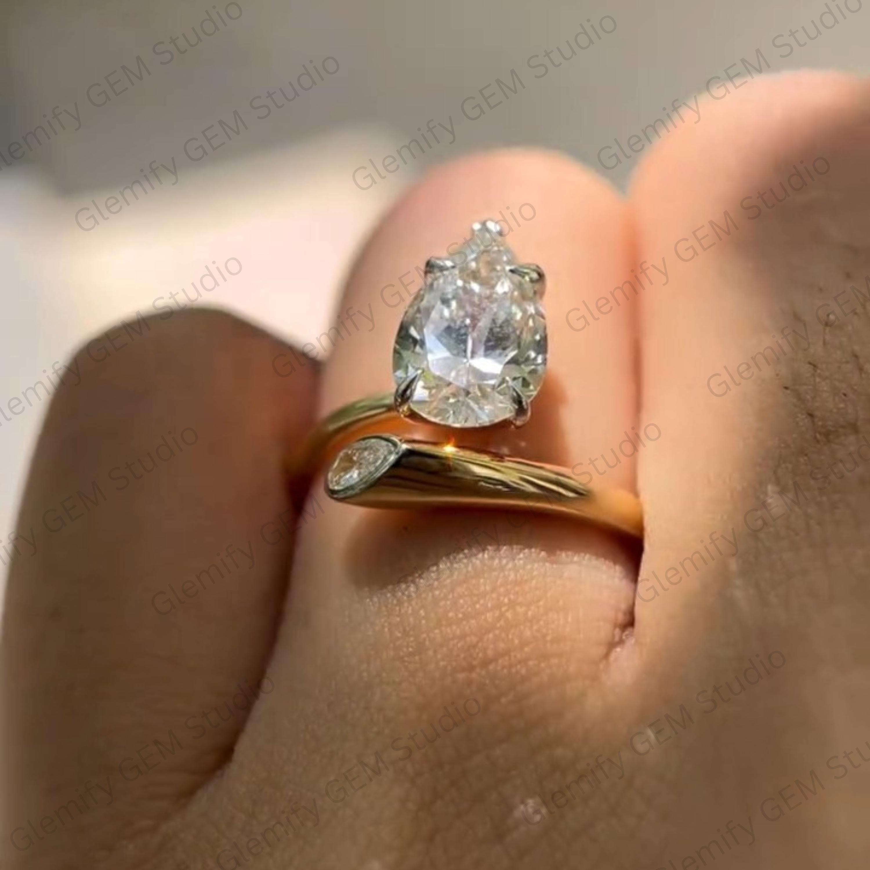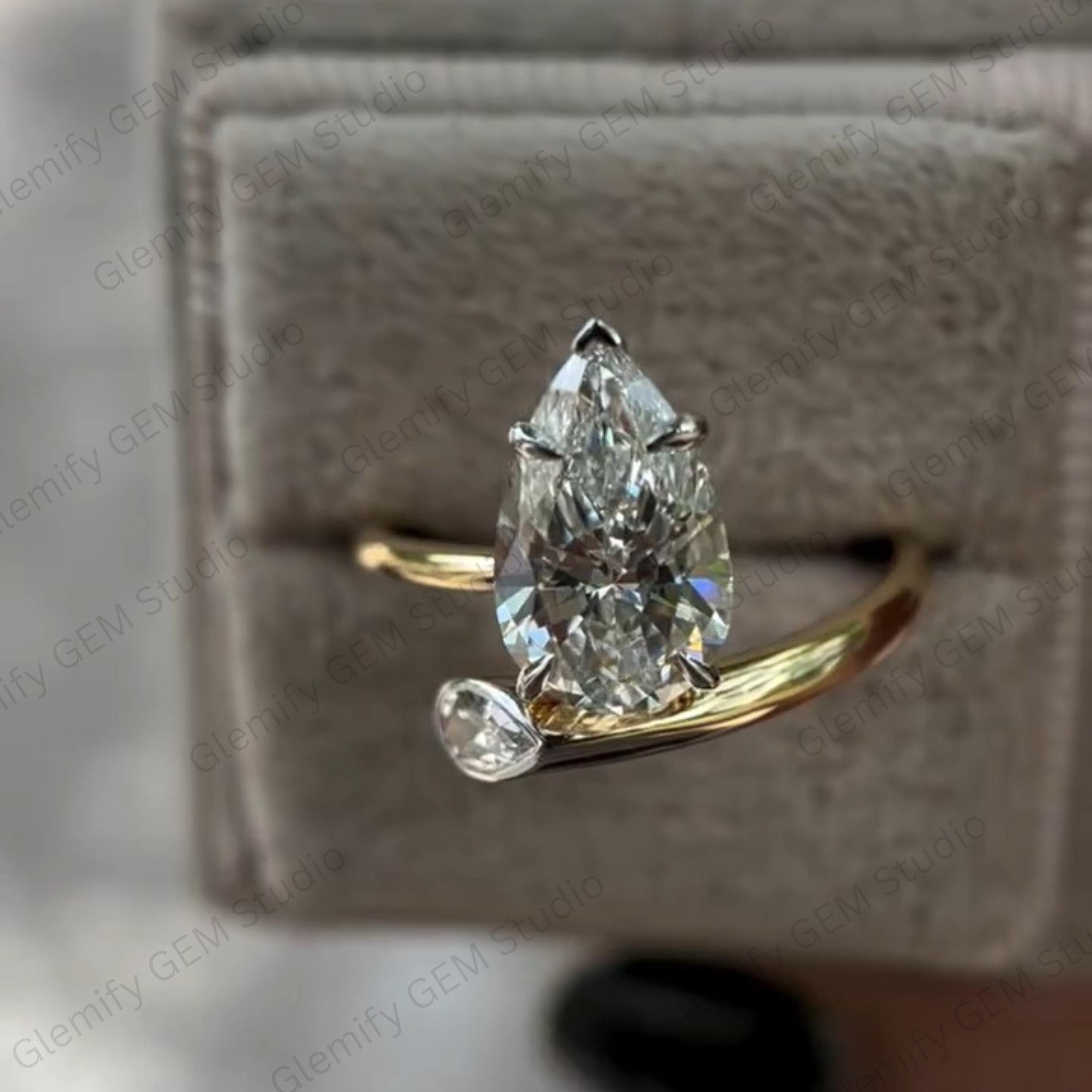 Unique 3 CT Pear Cut Moissanite With Bezel Set Two Stone Vintage 14K Gold Solitaire Engagement Ring Promise Wedding Ring Gift For Women