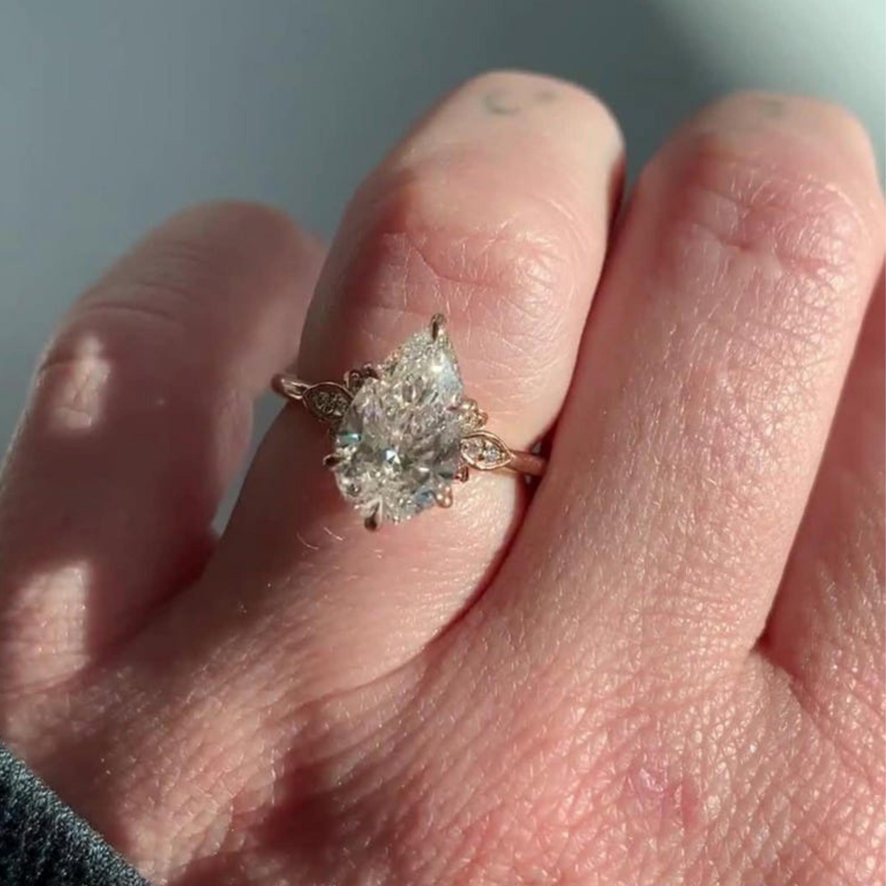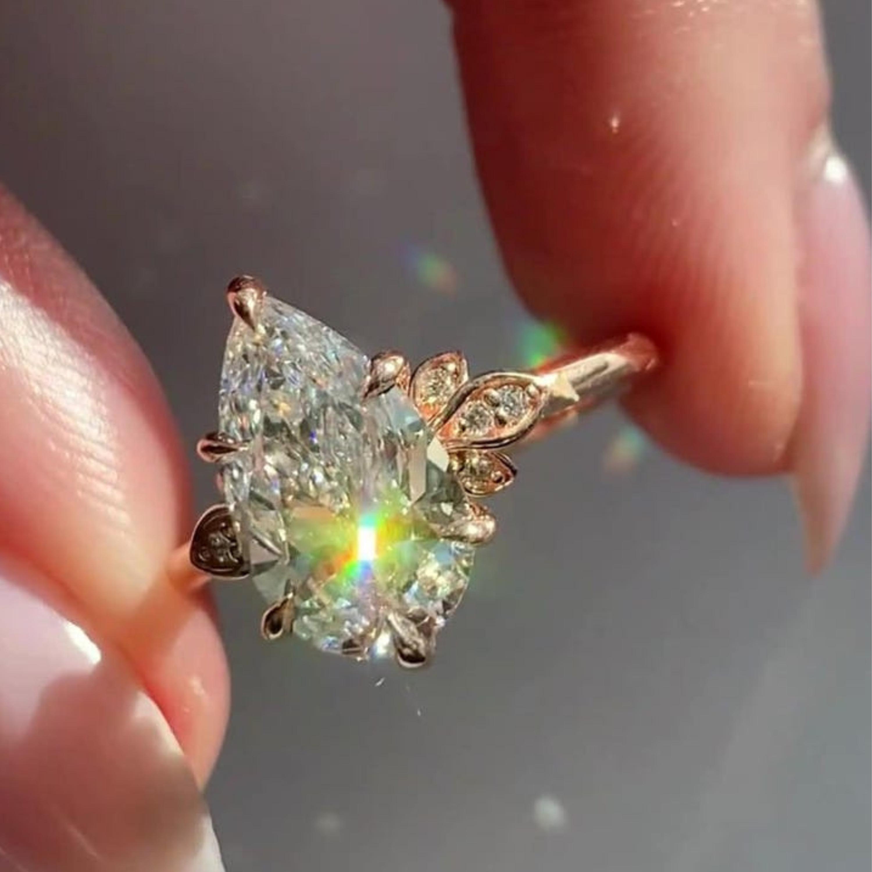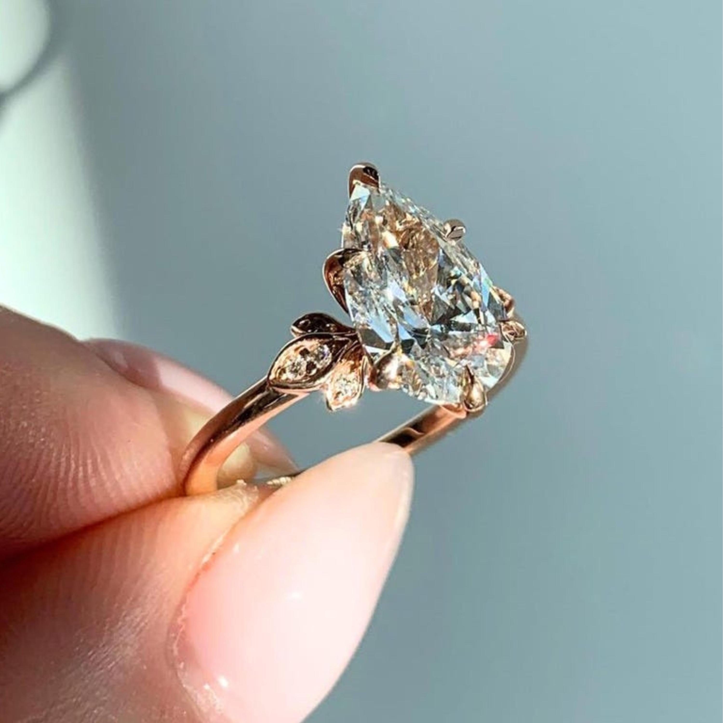 Floral 3 CT Pear Cut Moissanite Engagement Ring Vintage 14K Gold Moissanite Diamond Wedding Ring Nature Inspire Ring Promise Ring For Women