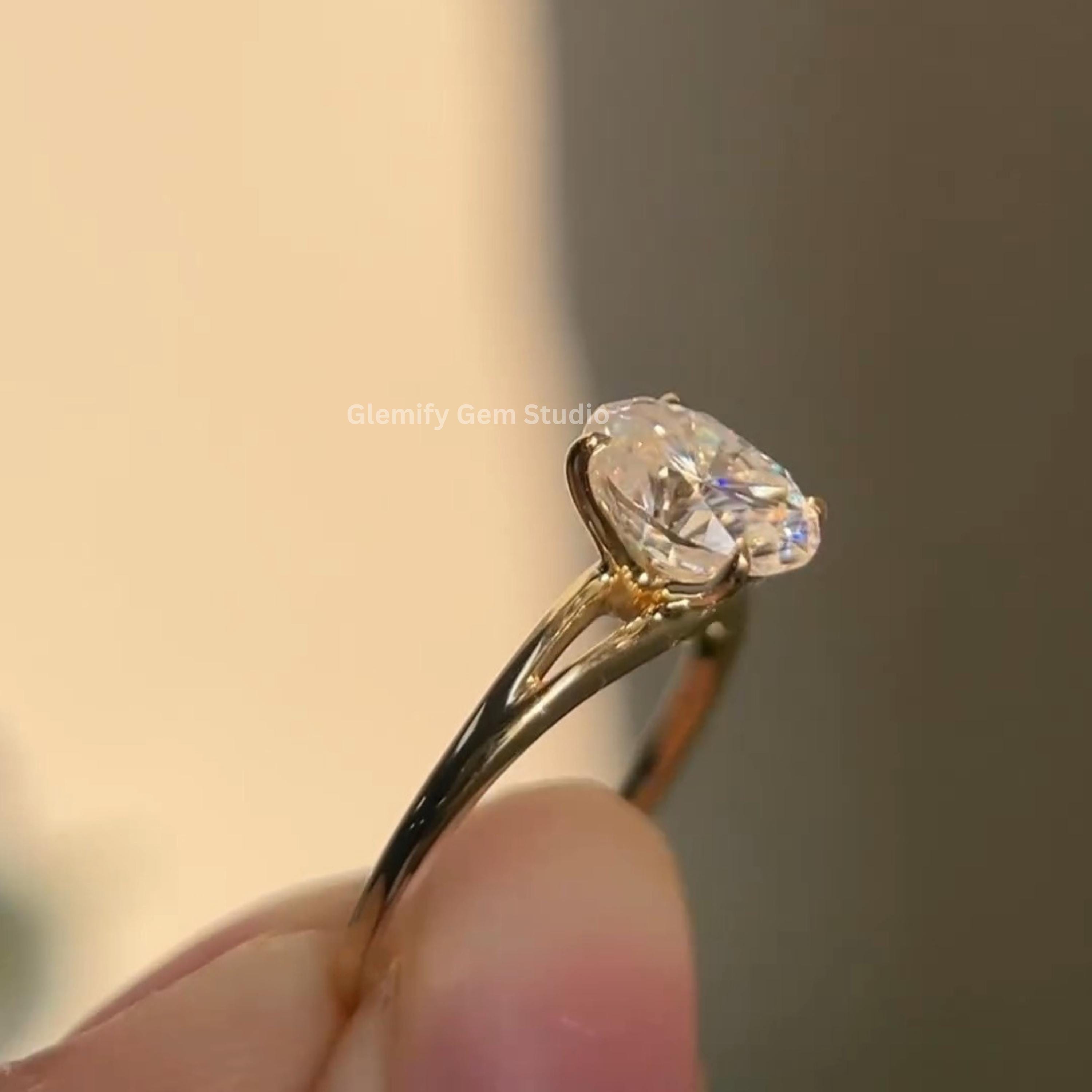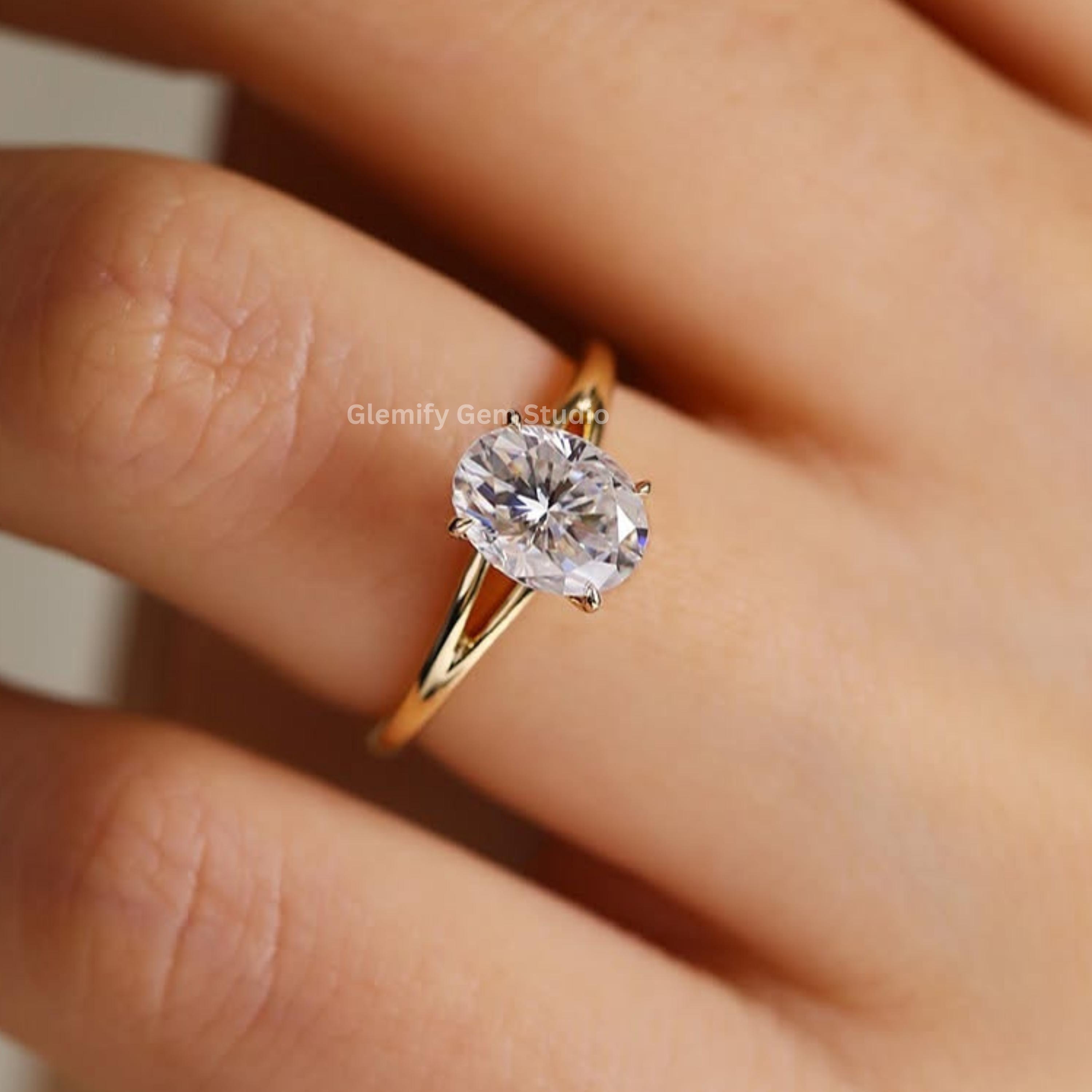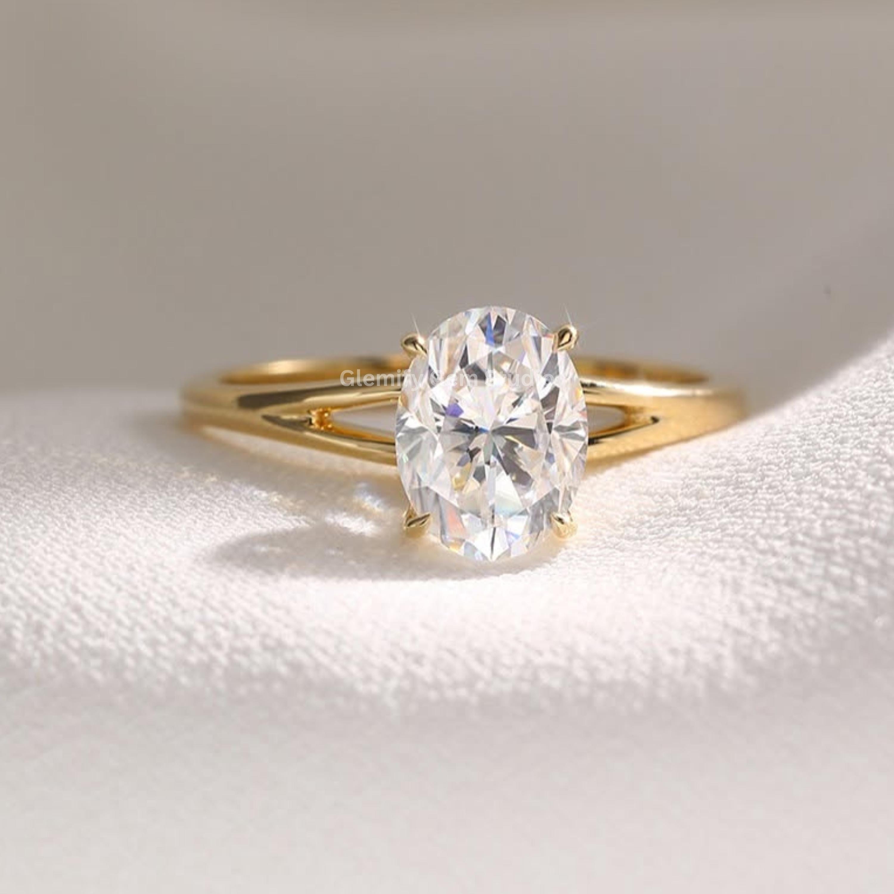 Unique 2 CT Oval Cut Split Band Moissanite Diamond Engagement Ring 14K Solid Gold Solitaire Wedding Anniversary Ring Perfect For Gift Ring