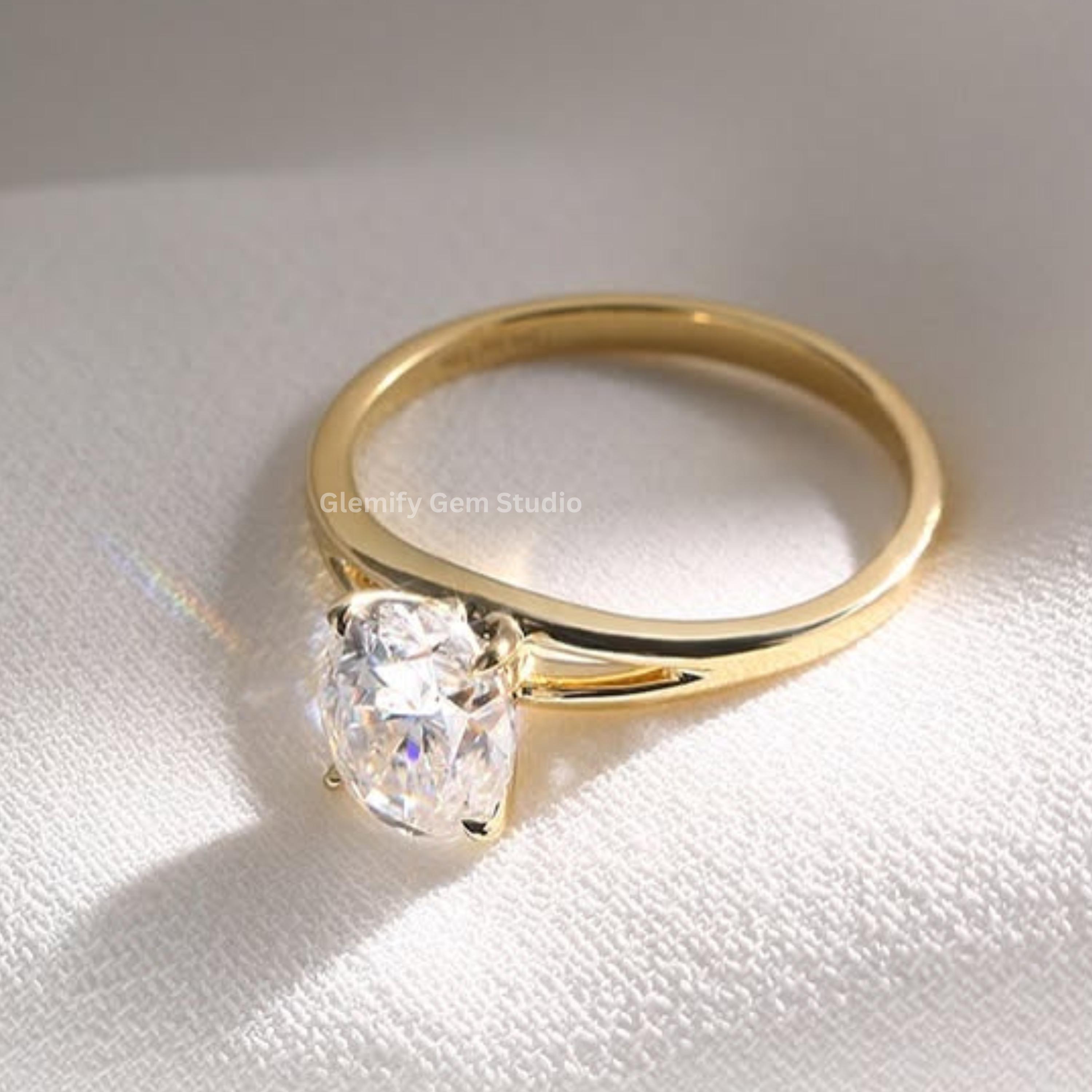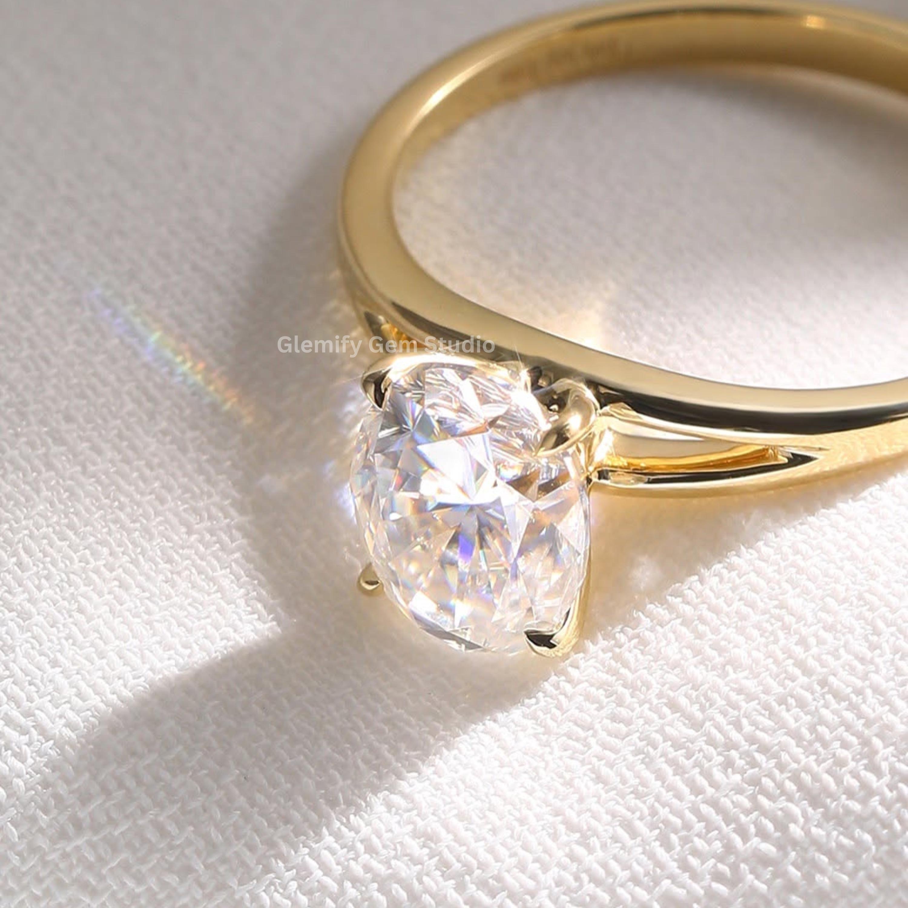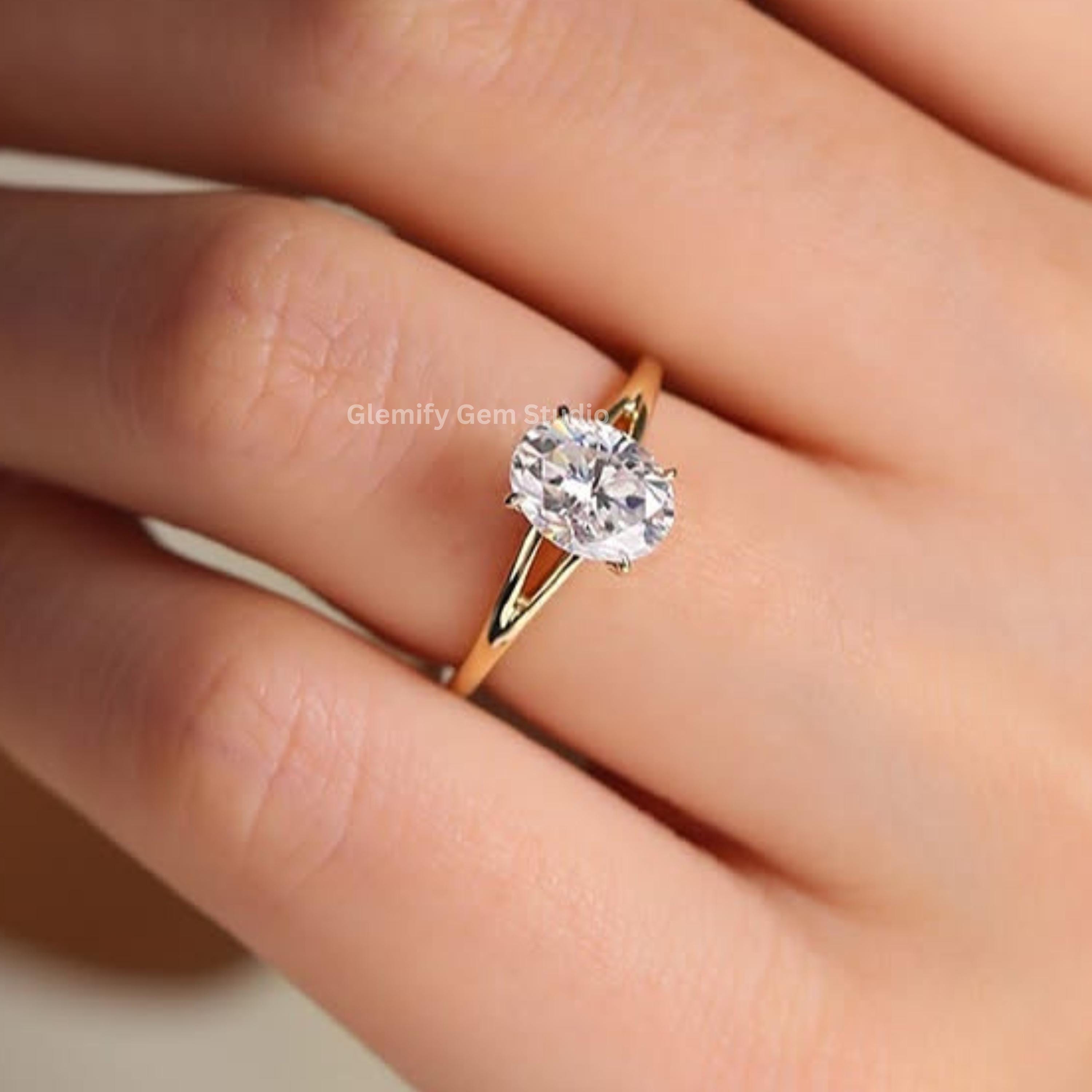 Unique 2 CT Oval Cut Split Band Moissanite Diamond Engagement Ring 14K Solid Gold Solitaire Wedding Anniversary Ring Perfect For Gift Ring