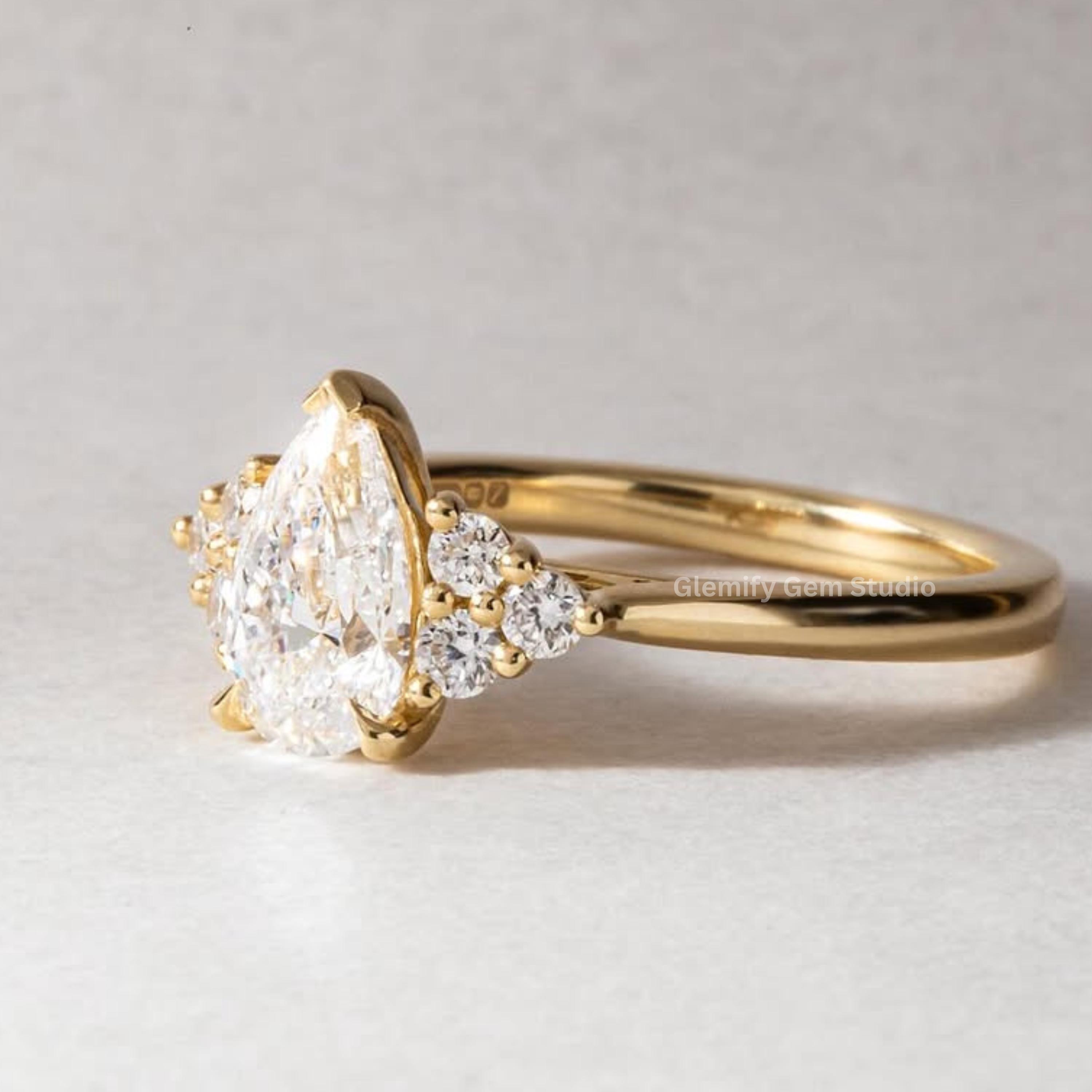 Unique 2.50 CT Pear Cut Moissanite Engagement Ring With Side Round Cut Diamond Ring 14K Solid Yellow Gold Solitaire Wedding Ring Gift Ring