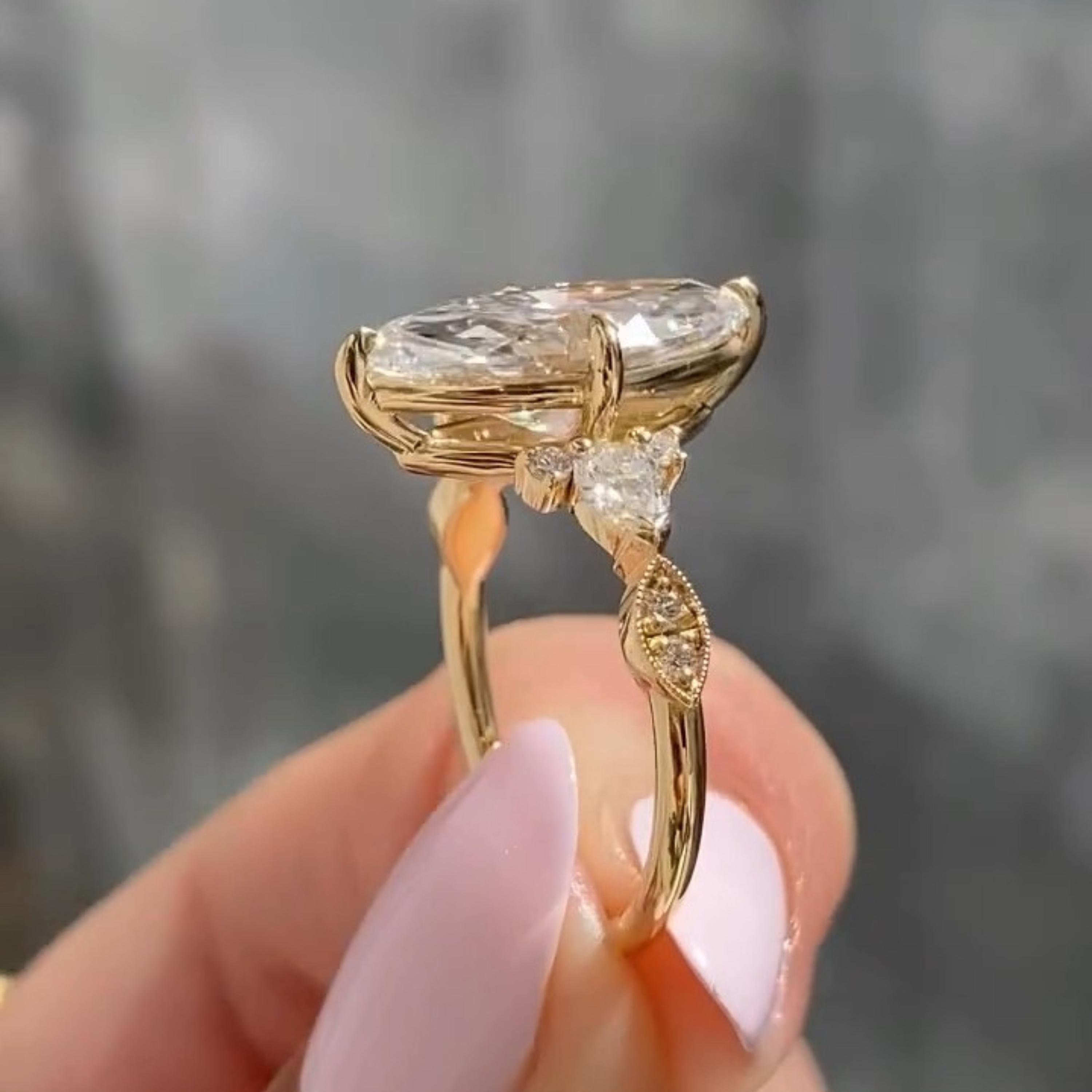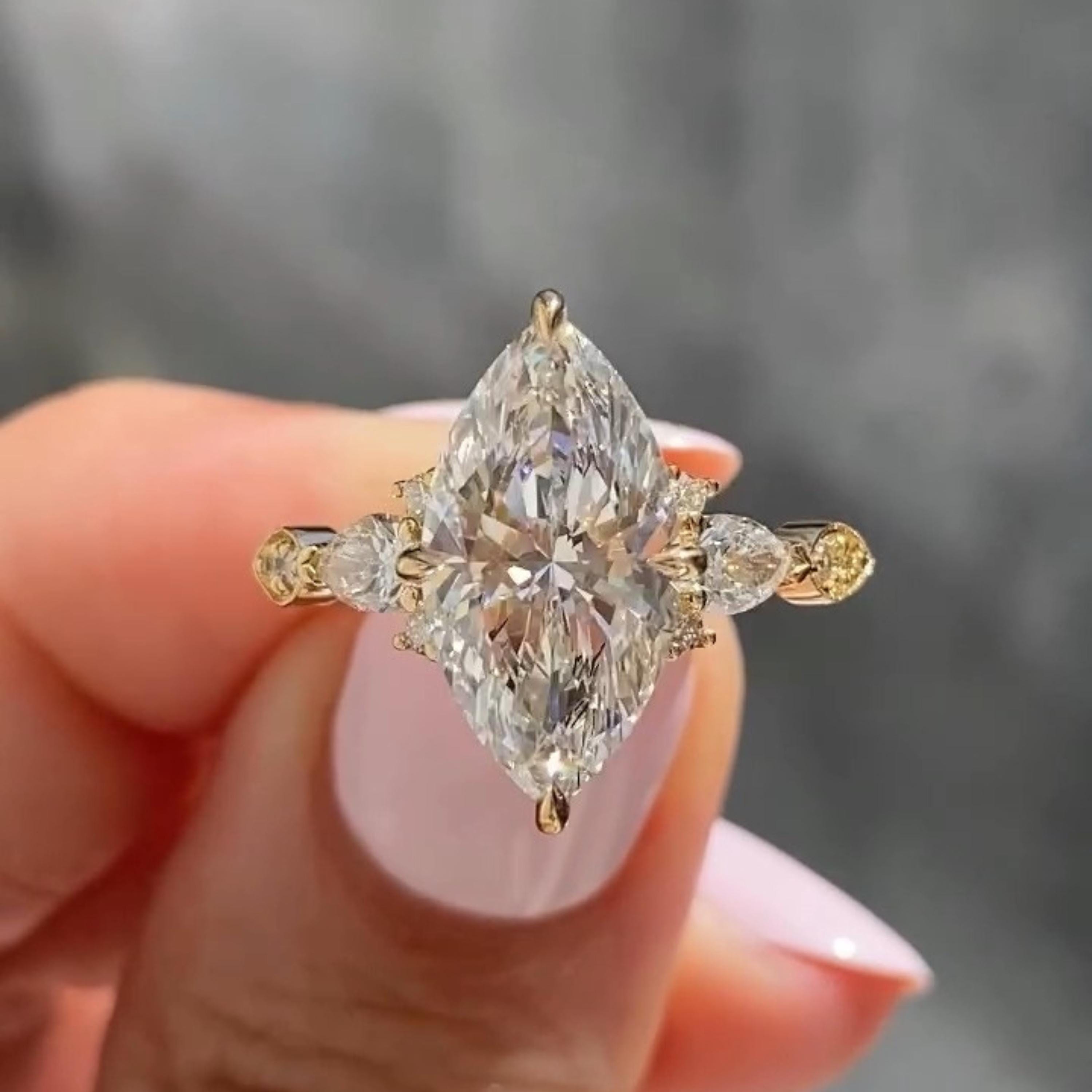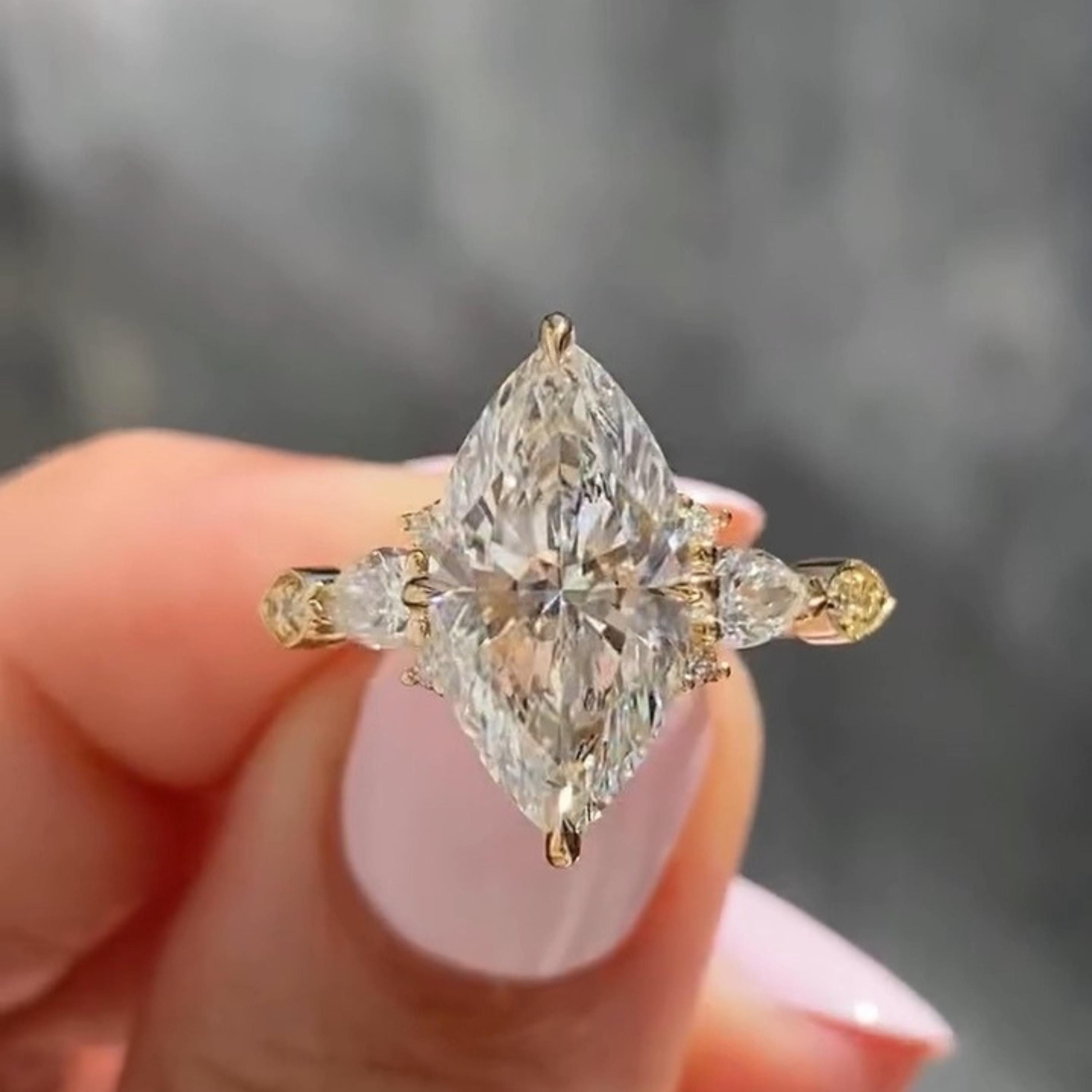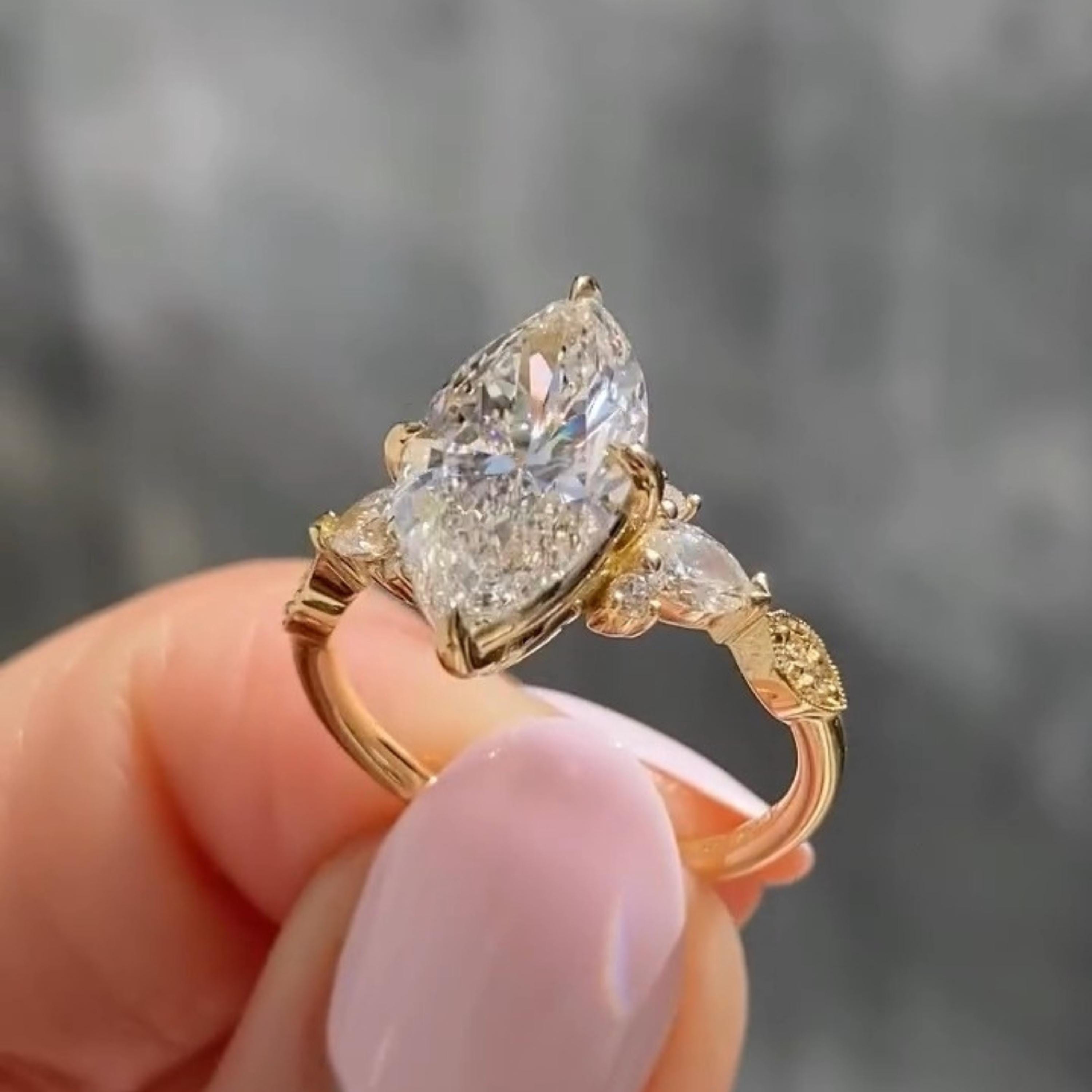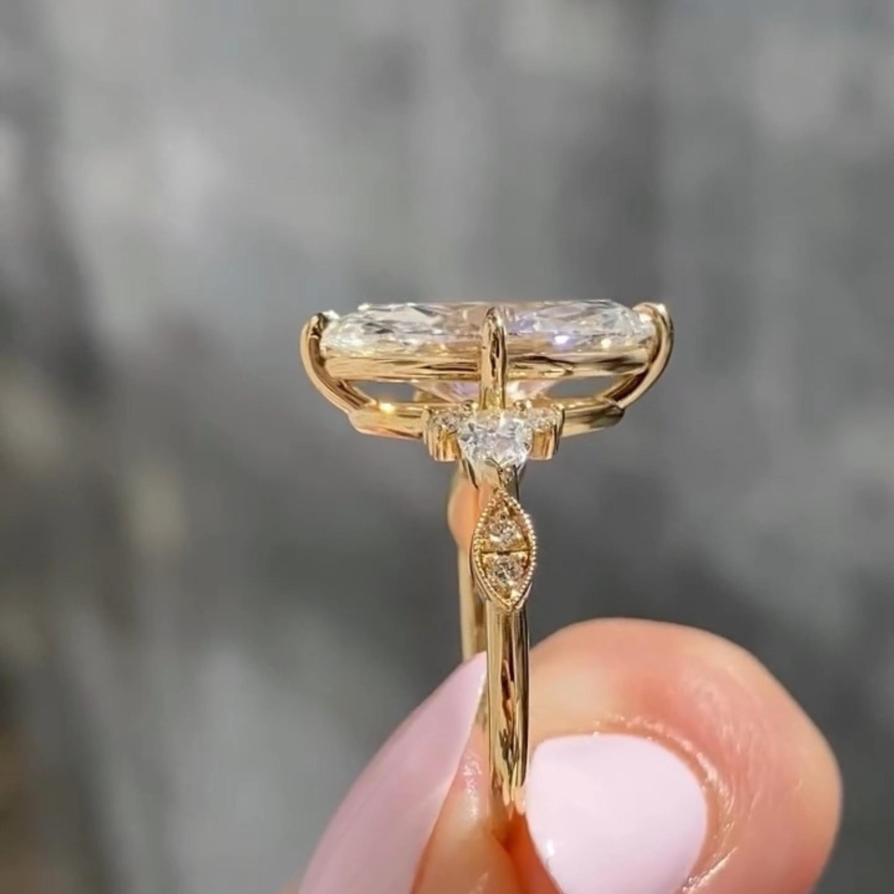 3.00 CT Three Stone Marquise Cut Moissanite Engagement Ring Unique 14K Solid Gold Solitaire Wedding Ring Perfect Propose Ring For Her, Marquise Promise Ring, Gift Ring, Rings For Women, Statement Ring, Vintage Engagement Ring, Promise Rings For Her Diamond Rings, Marquise Cut Ring Gifts For Her, Bridal Ring, Handmade Rings, Personalization Jewelry.