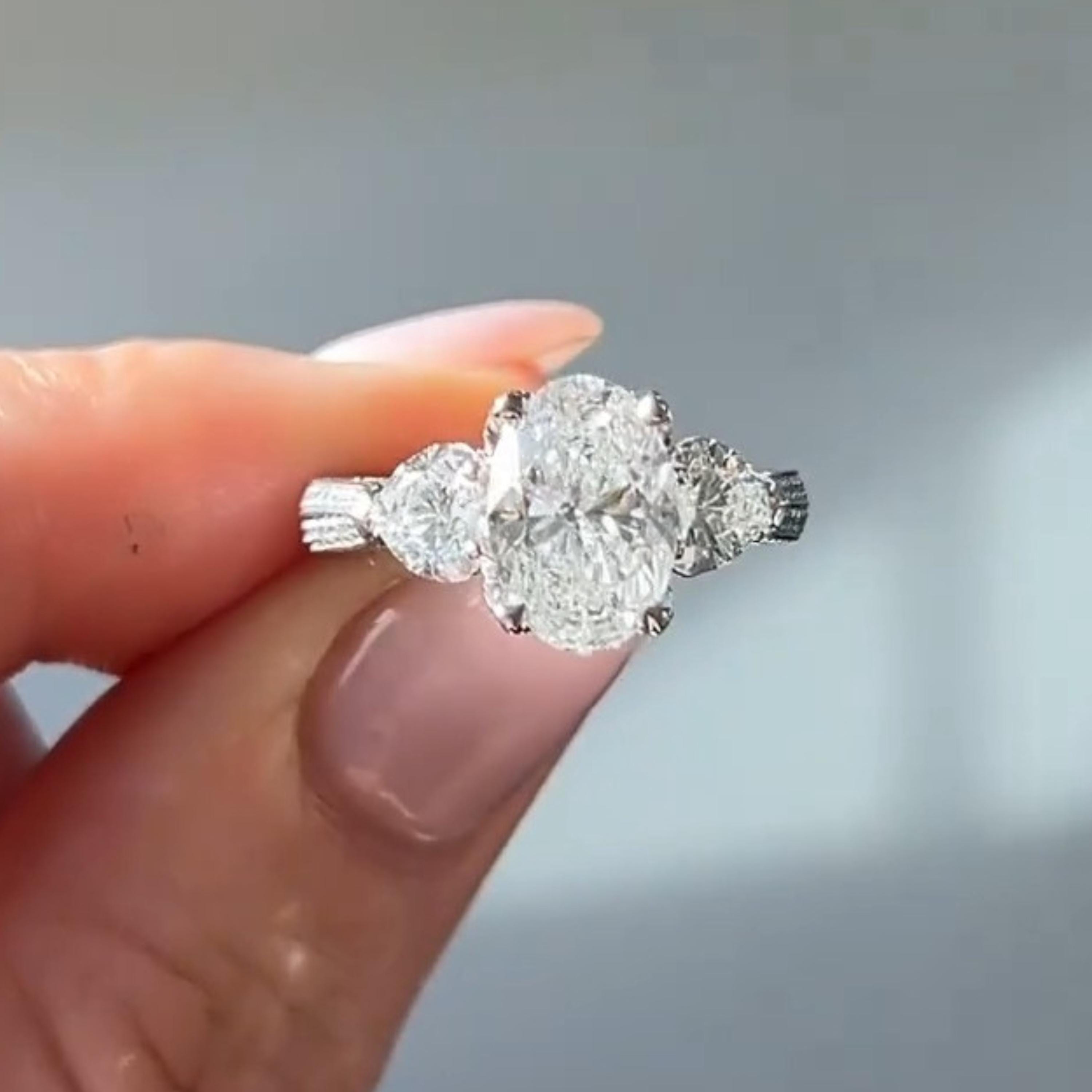 4 CT Oval Cut Moissanite Three Stone Engagement Ring Gift For Her 14K Solid Gold Ring Hidden Halo And Pave Set Anniversary Rings for Her