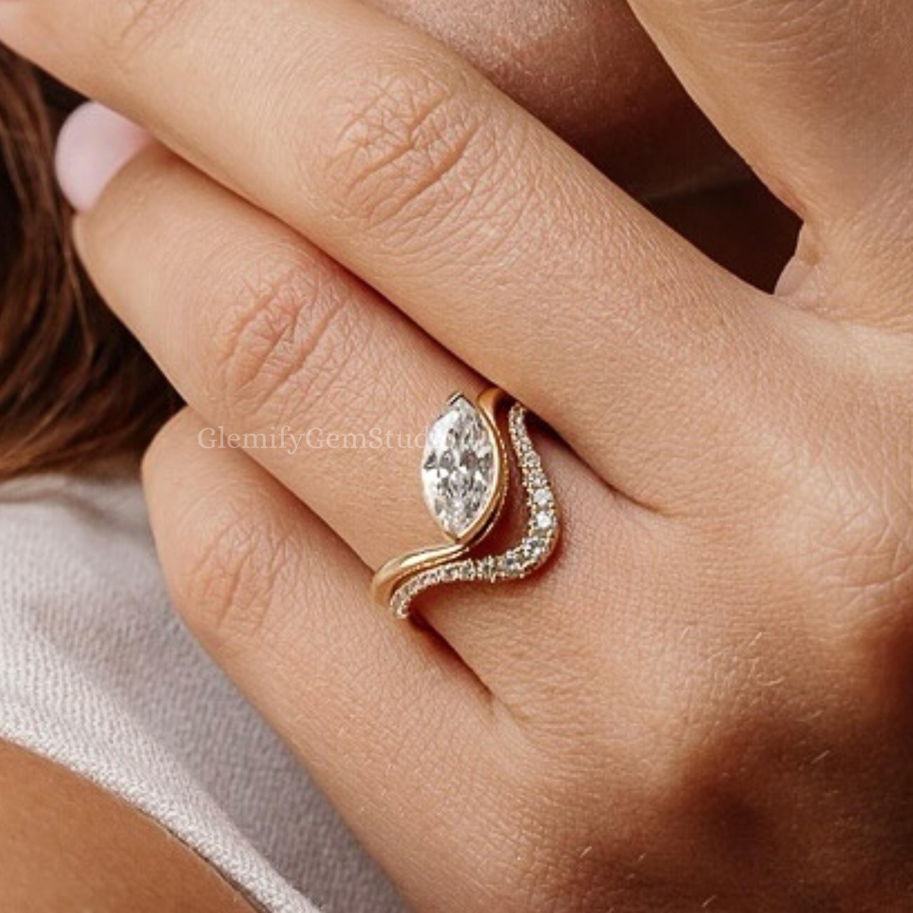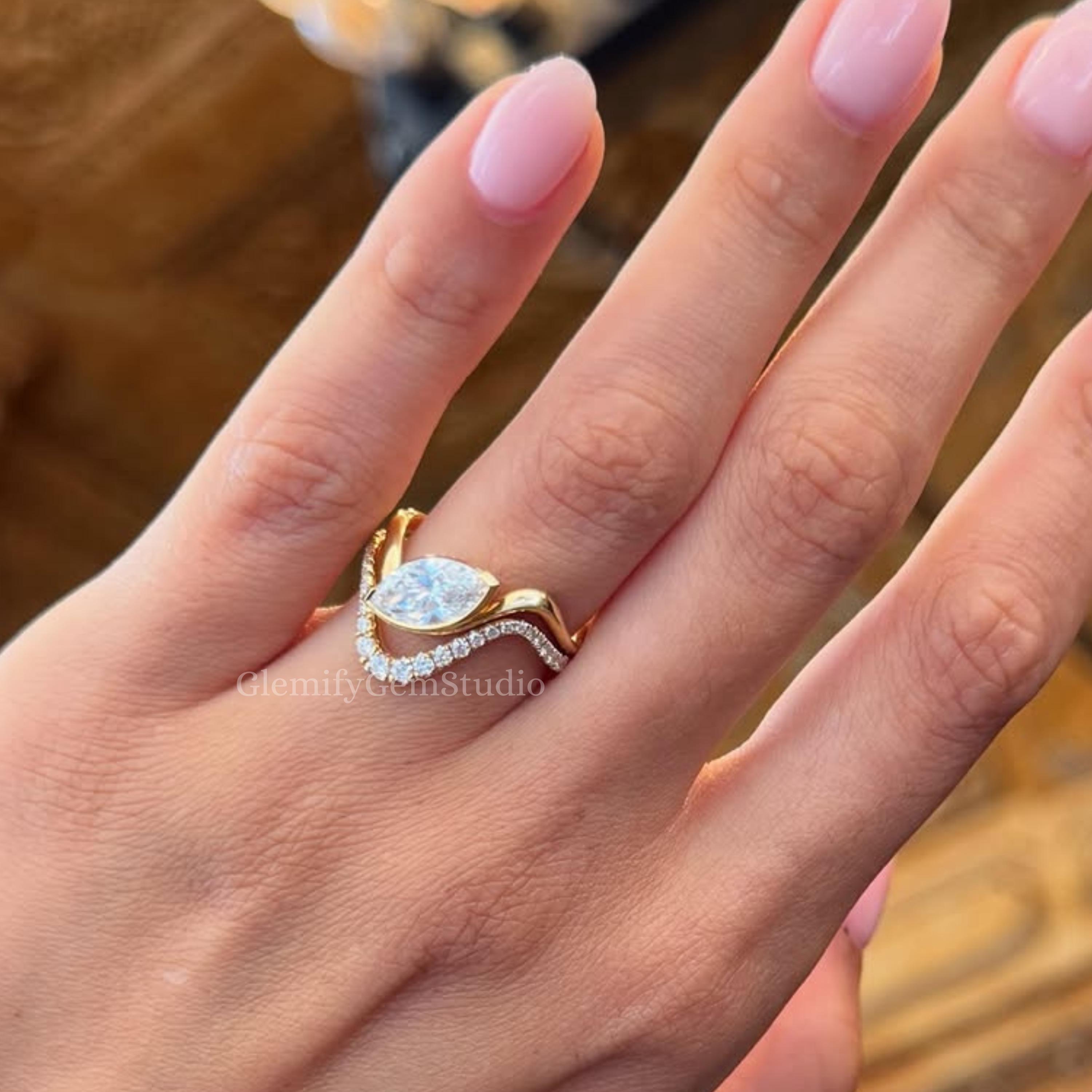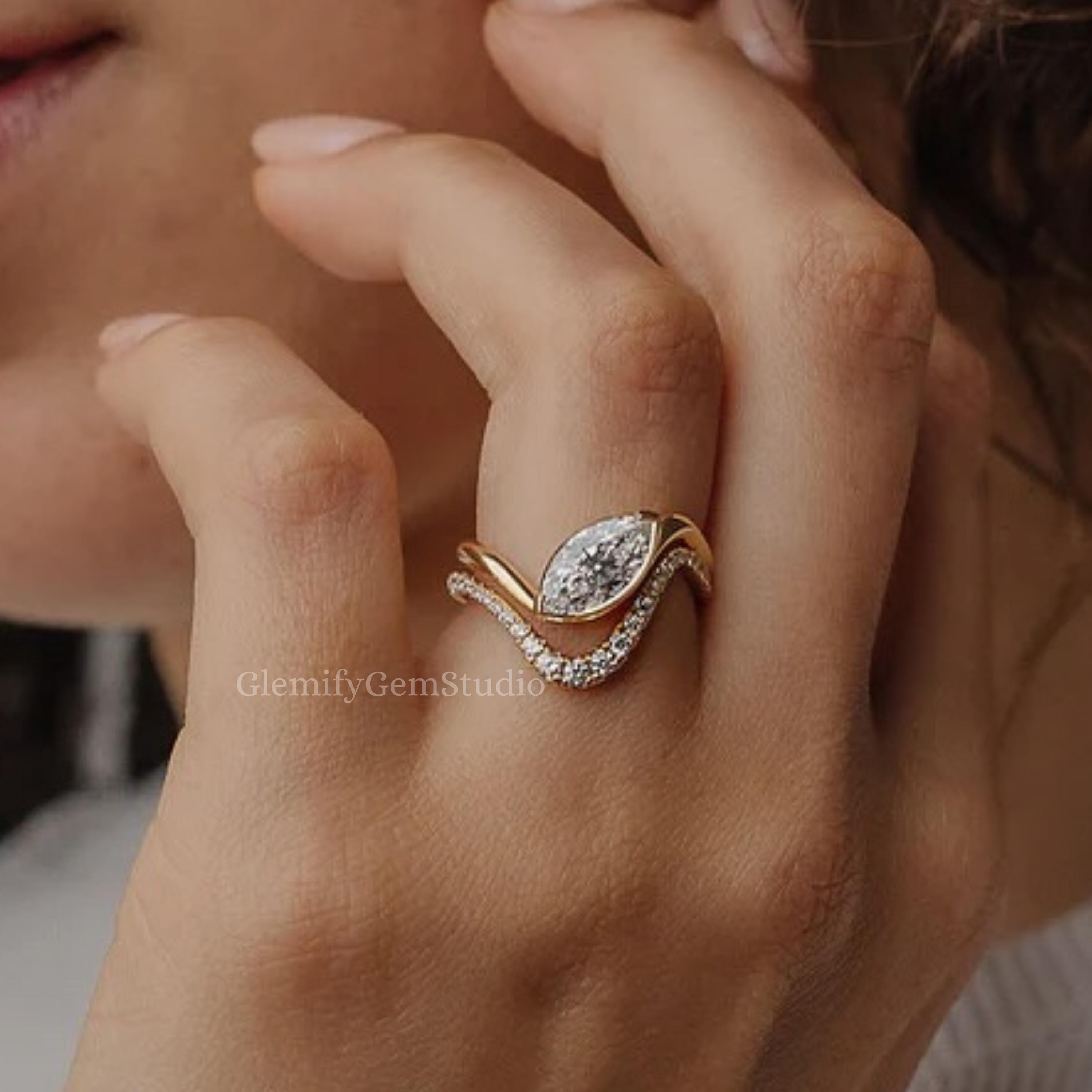 3 CT Marquise Cut Moissanite Engagement Ring Set With Unique 14K Solid Gold Solitaire Wedding Curve Band Ring Set Gift Ring Set For Women, Marquise Promise Ring, Gift Ring, Rings For Women, Statement Ring, Vintage Engagement Ring, Promise Rings For Her Diamond Rings, Marquise Cut Ring Gifts For Her, Bridal Ring, Handmade Rings, Personalization Jewelry.