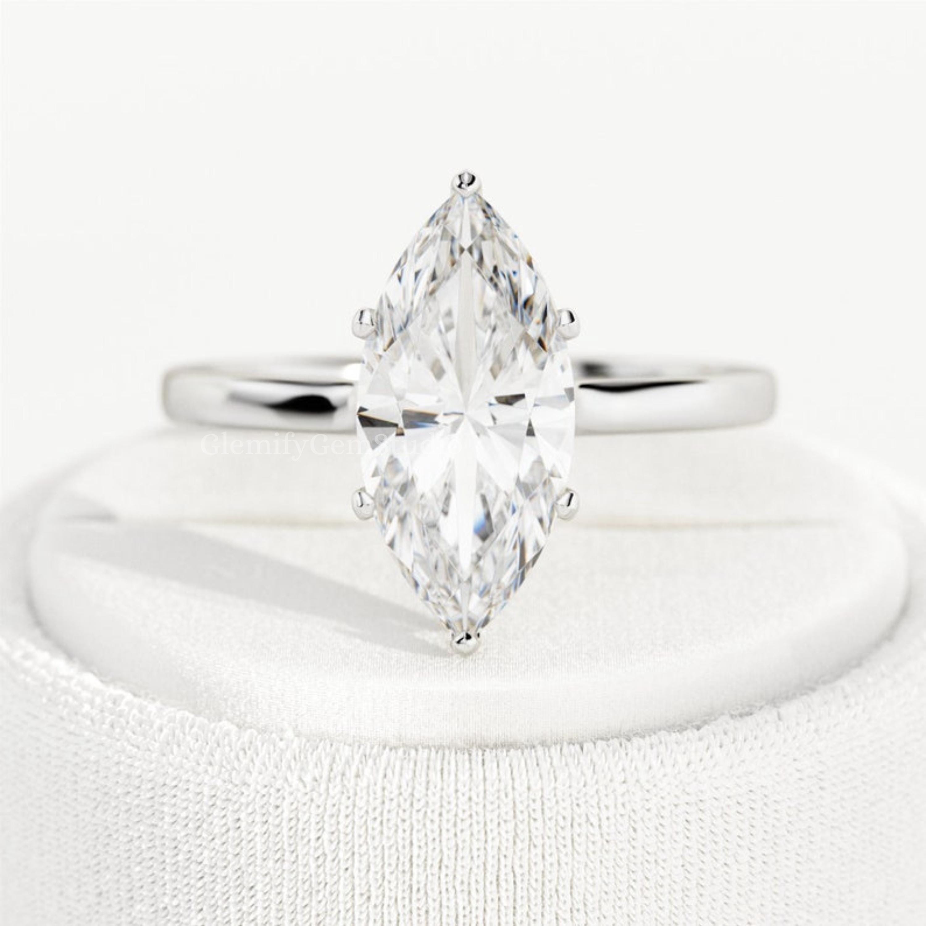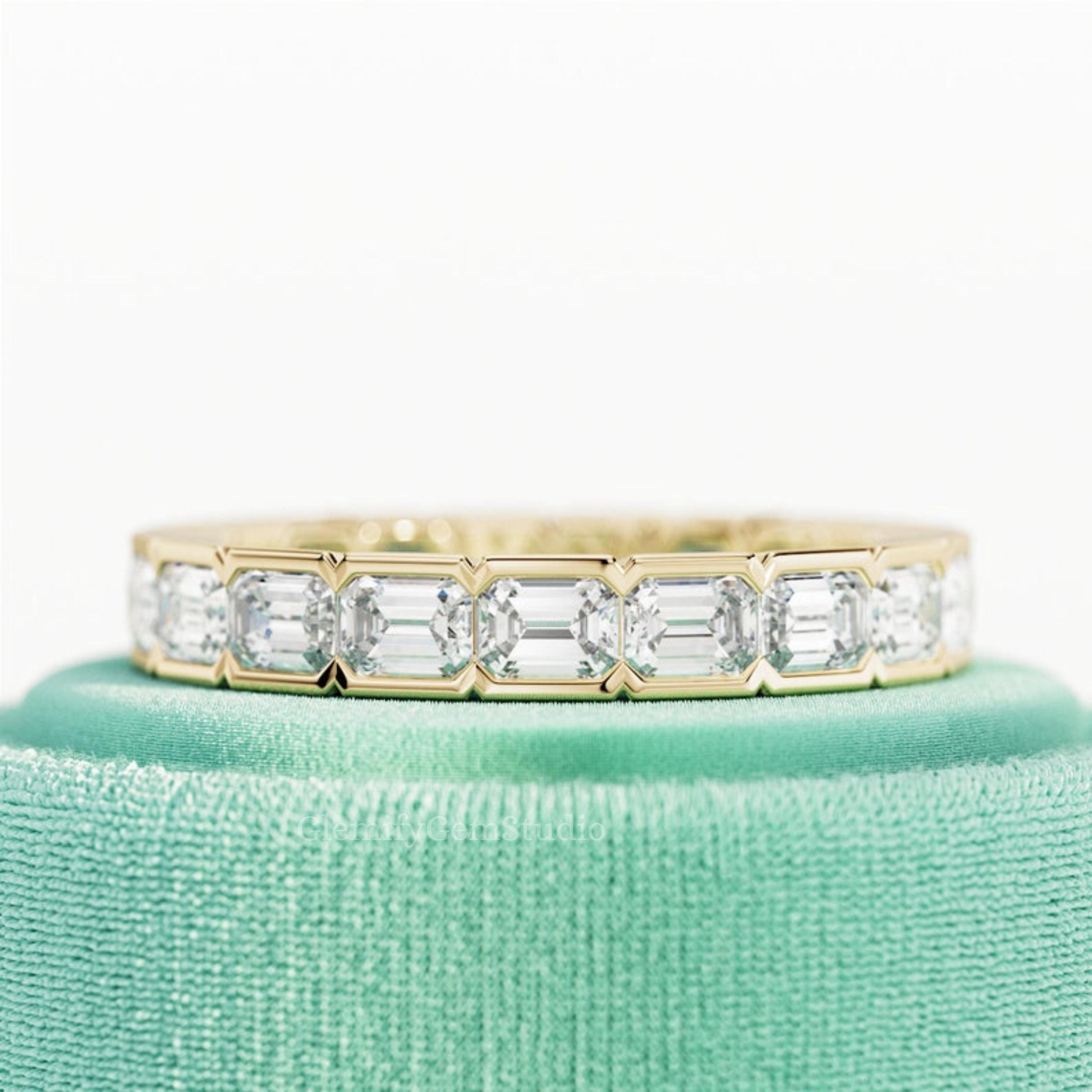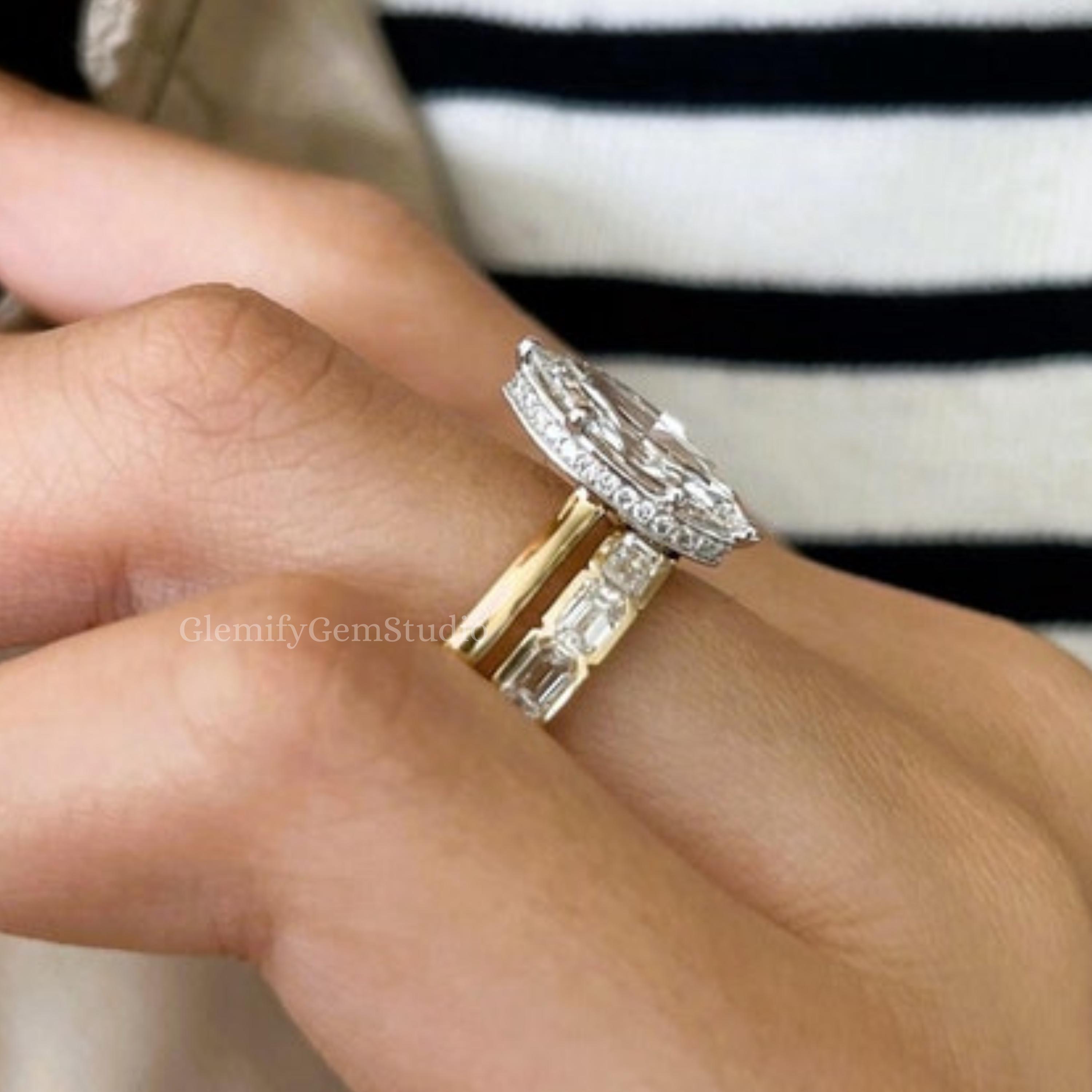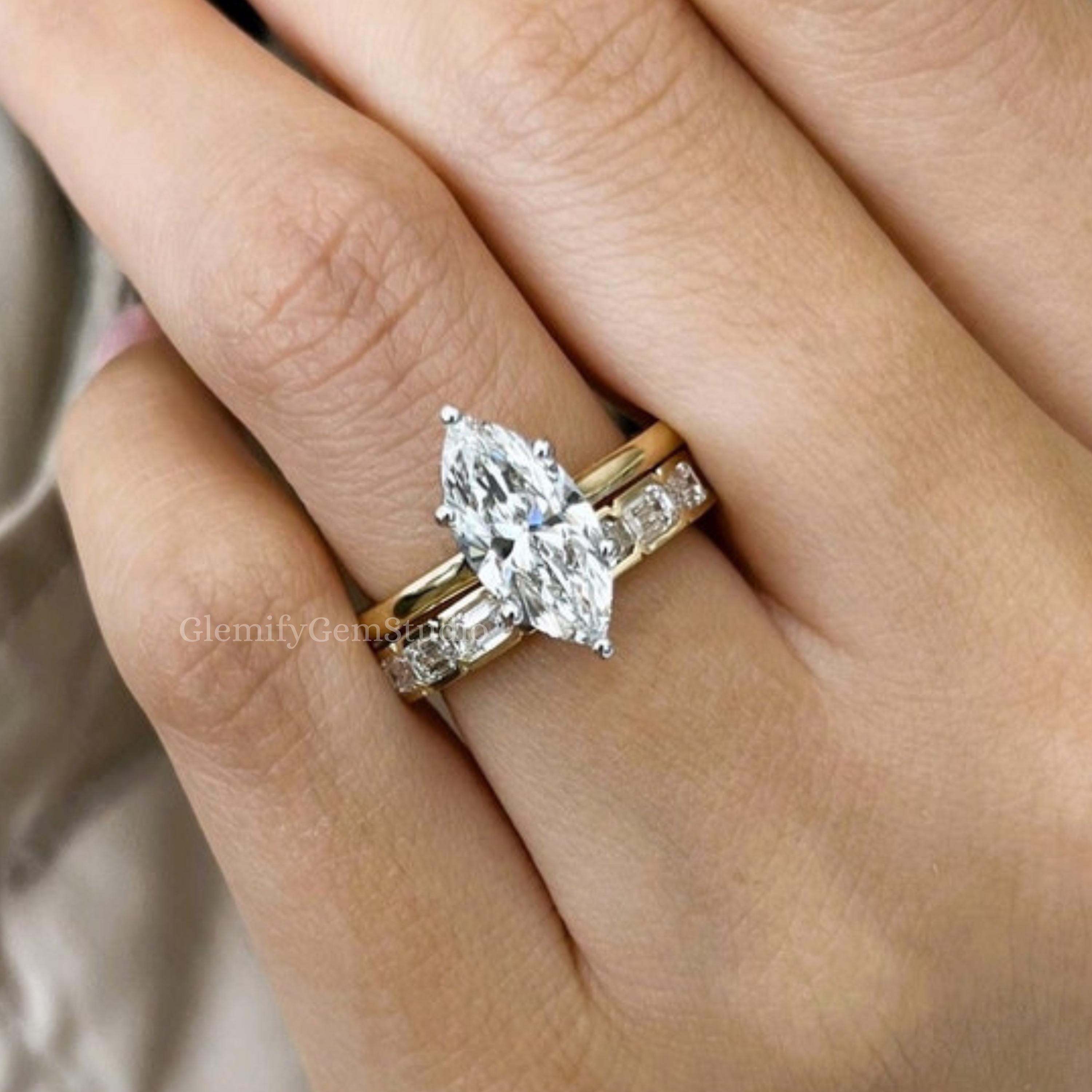 3 CT Marquise Cut Moissanite Engagement Bridal Ring Set 14K Solid Gold Emerald Cut Bezel Set Eternity Matching Wedding Band Gift Ring Set