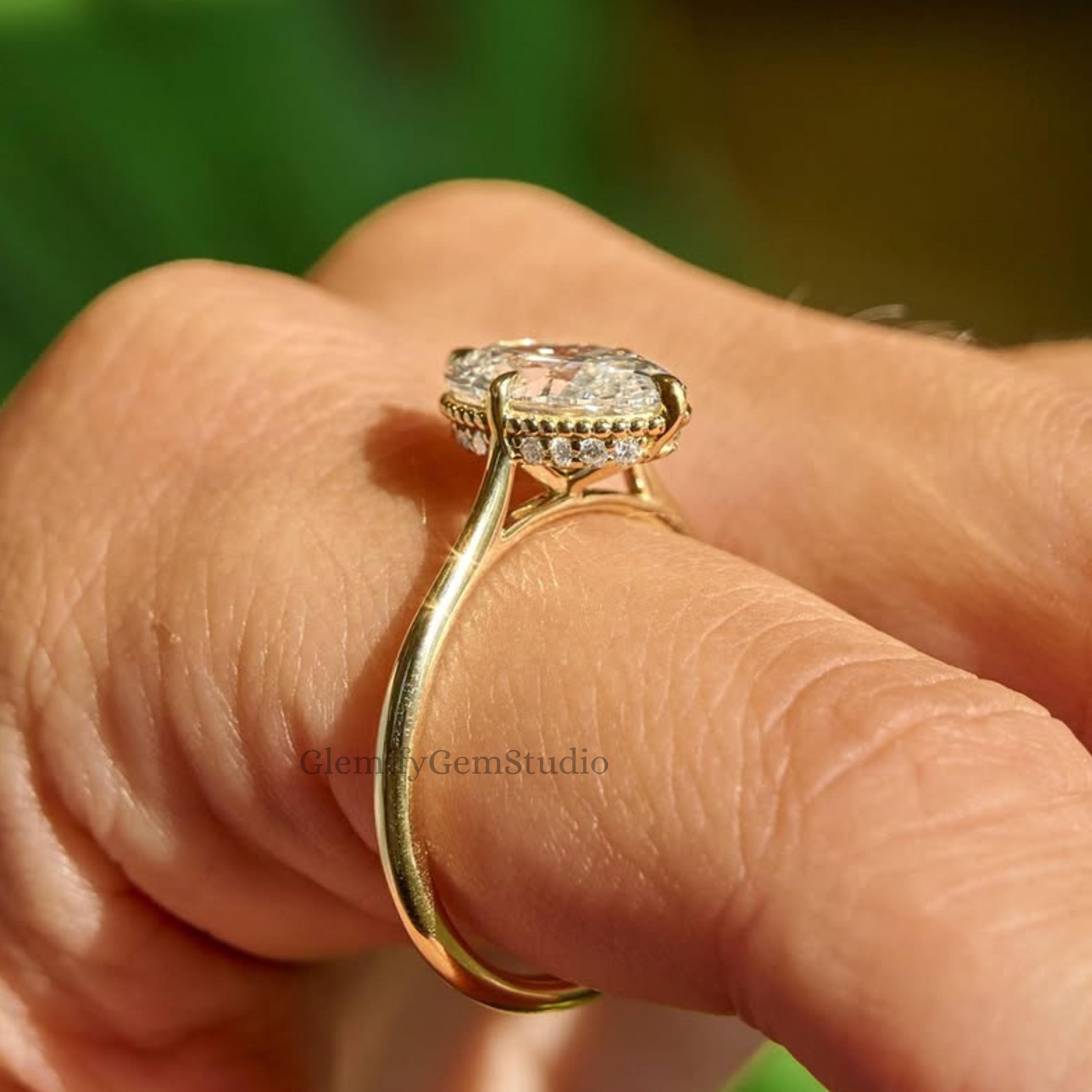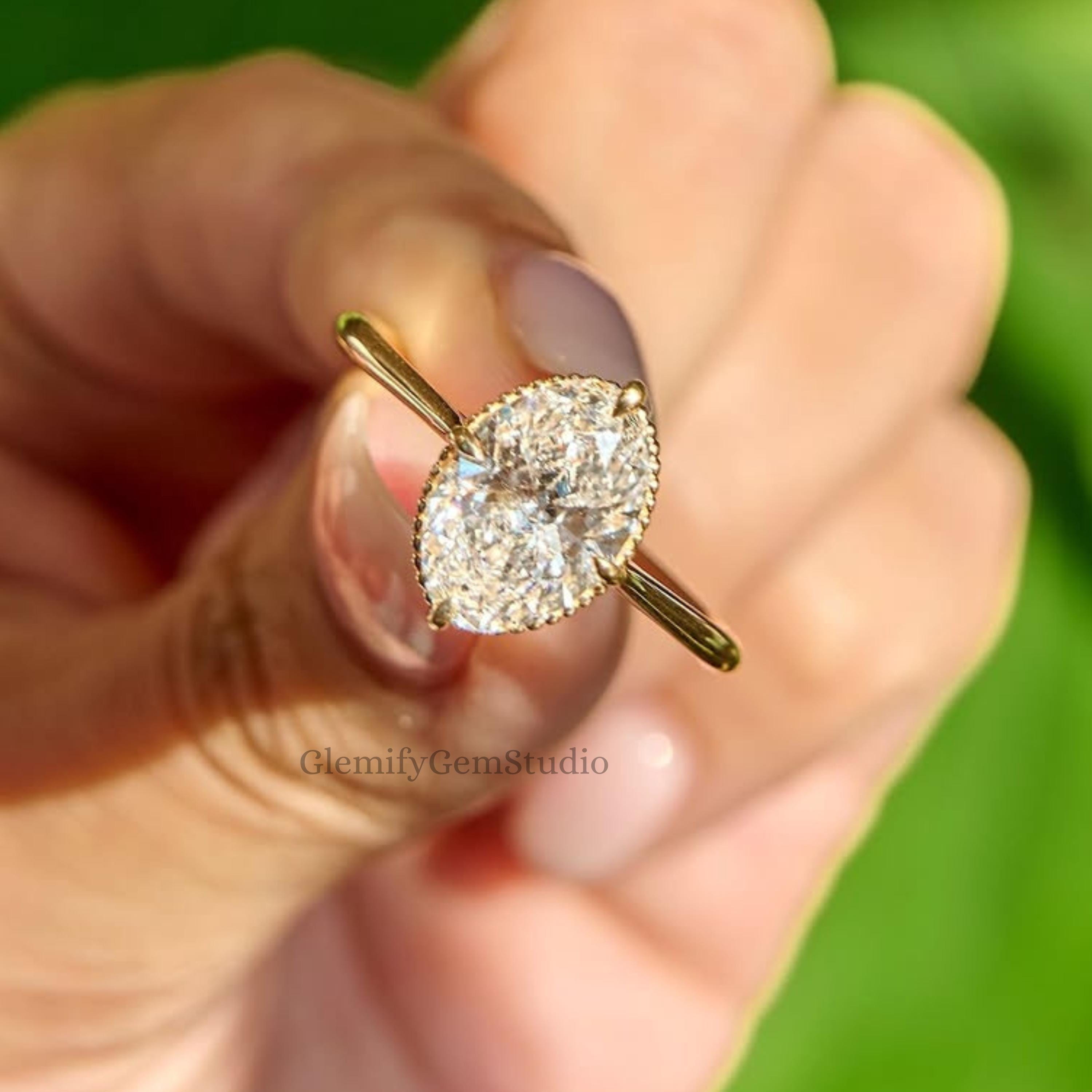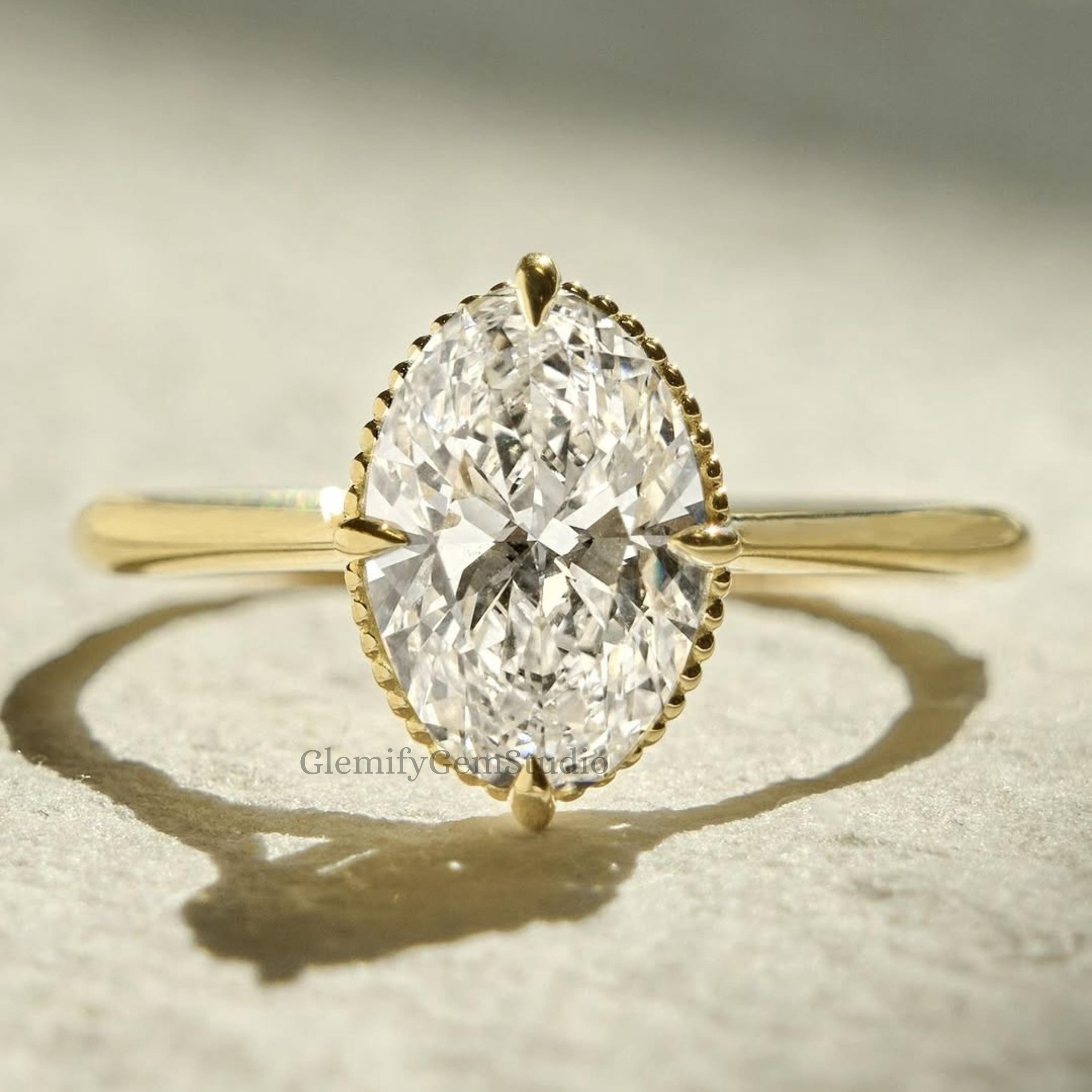Unique 2.50 CT Oval Cut Compass Prongs With Milgrain Boarder Moissanite Engagement Ring 14k Solid Gold Solitaire Wedding Ring Gift Ring