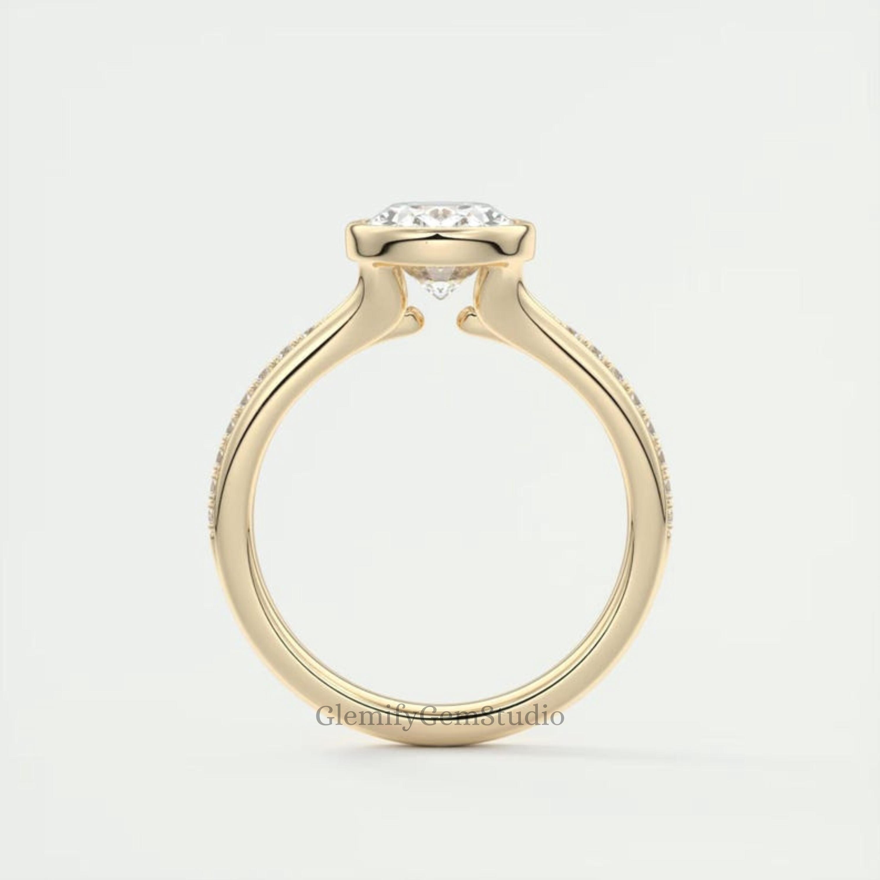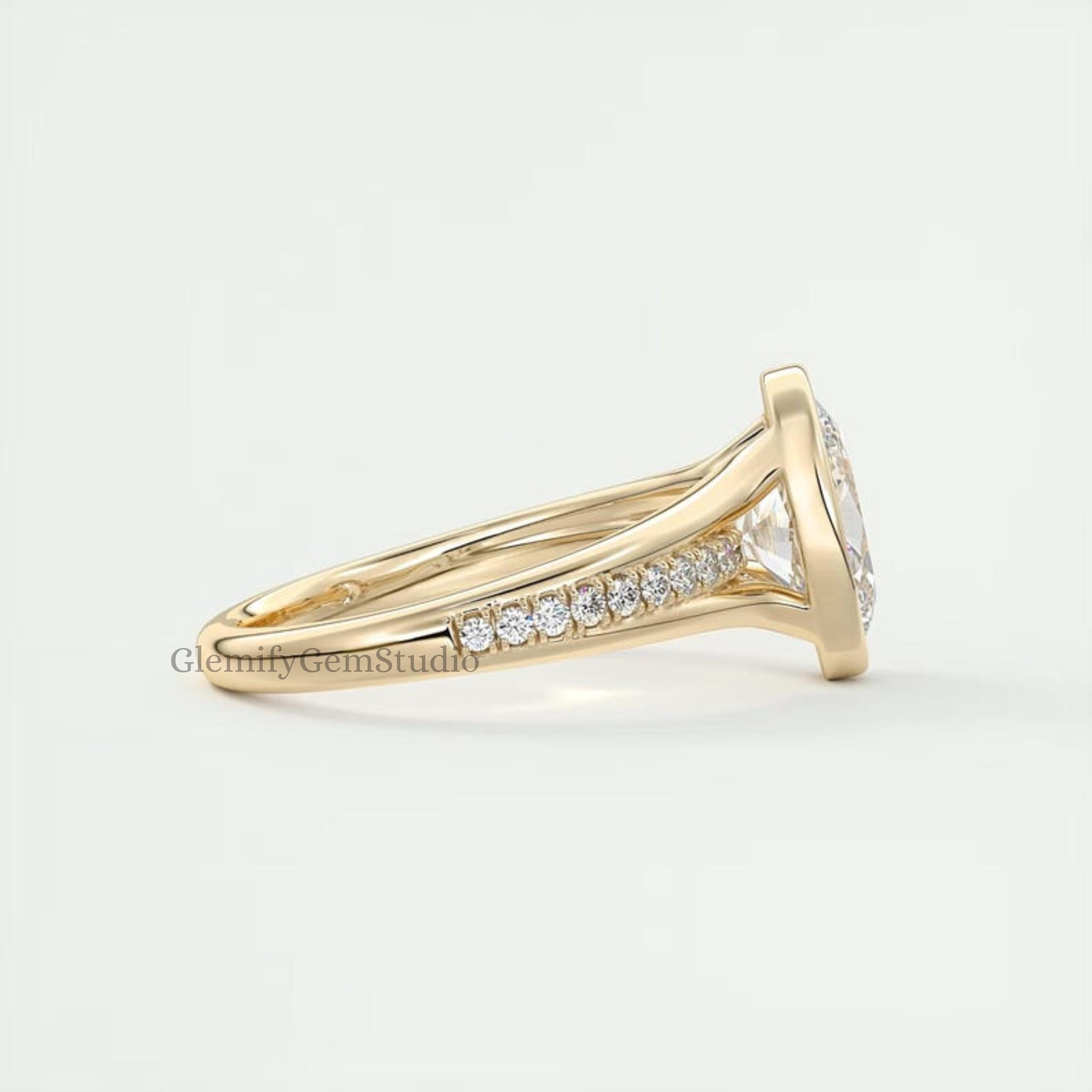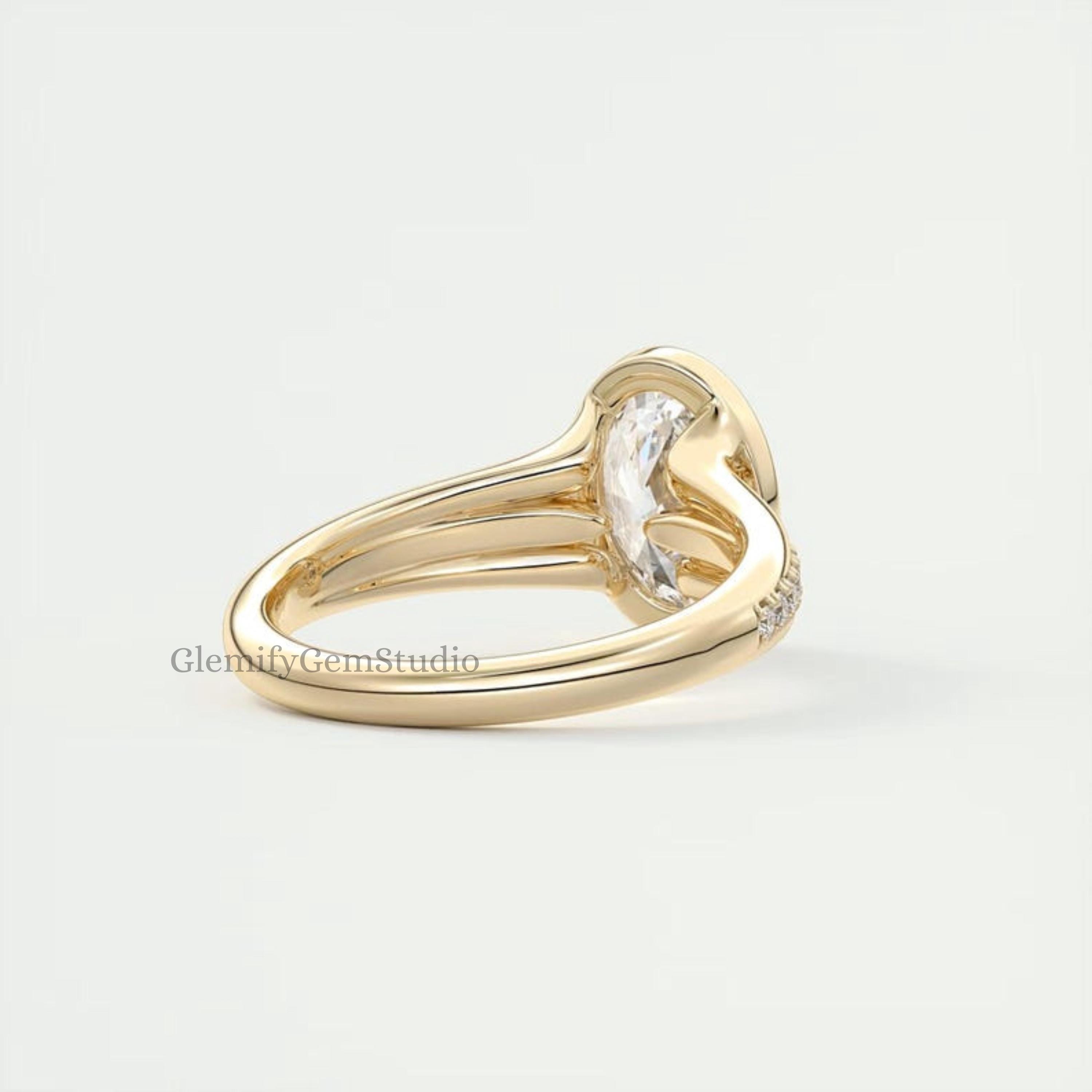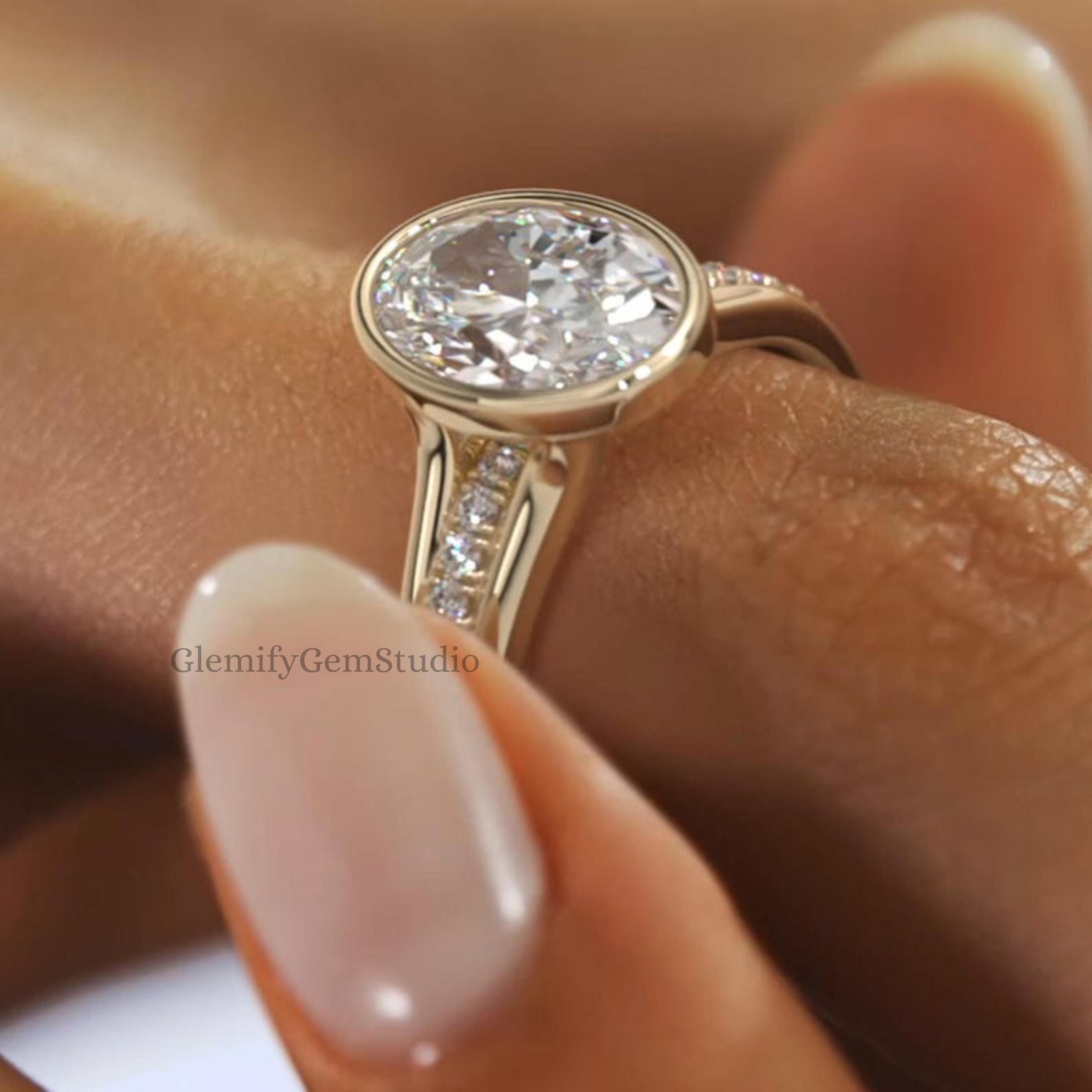 Unique 3 CT Bezel Set Floating Oval Cut Moissanite Diamond Engagement Ring With 14K Solid Gold Split Shank Pave Set Wedding Gift Ring For Her