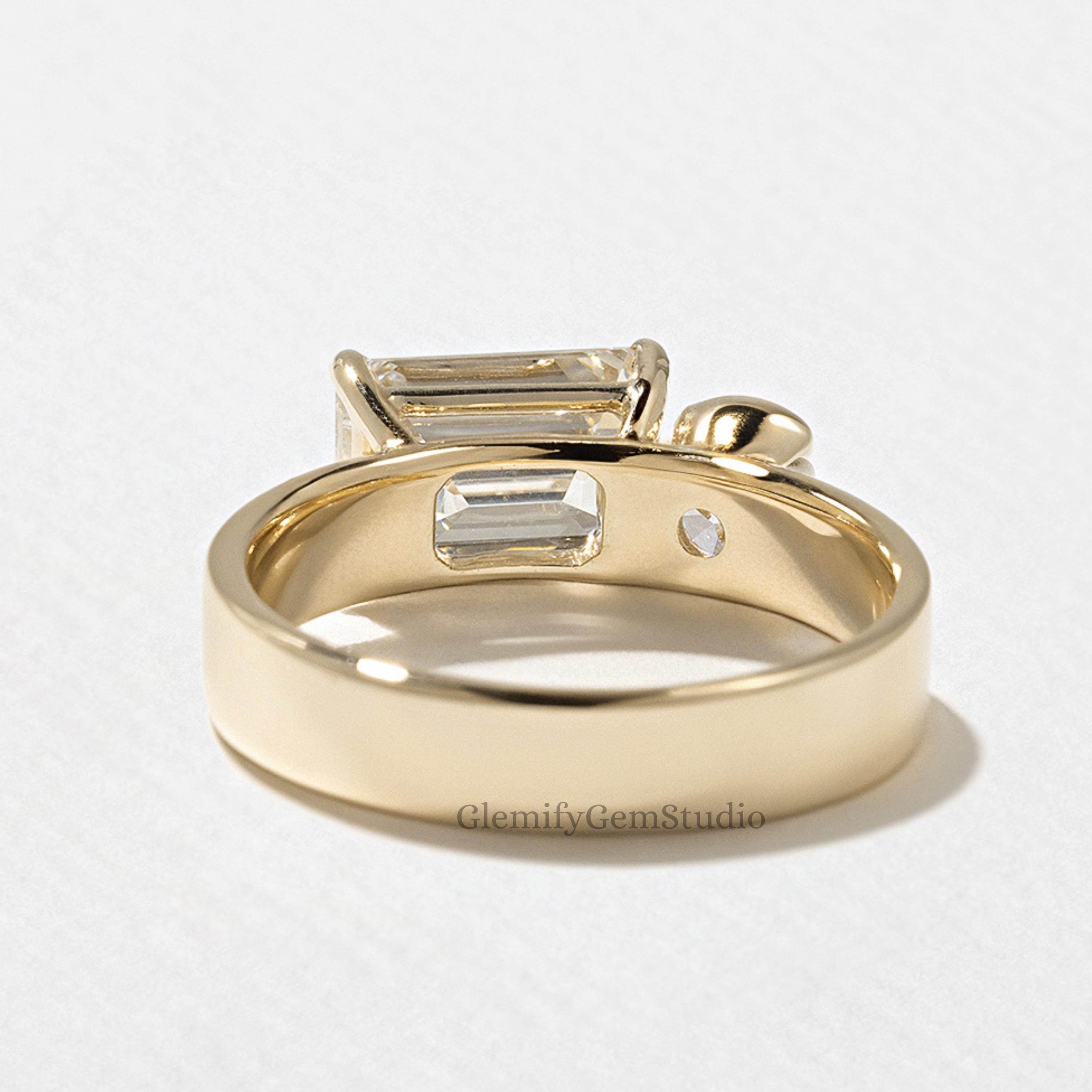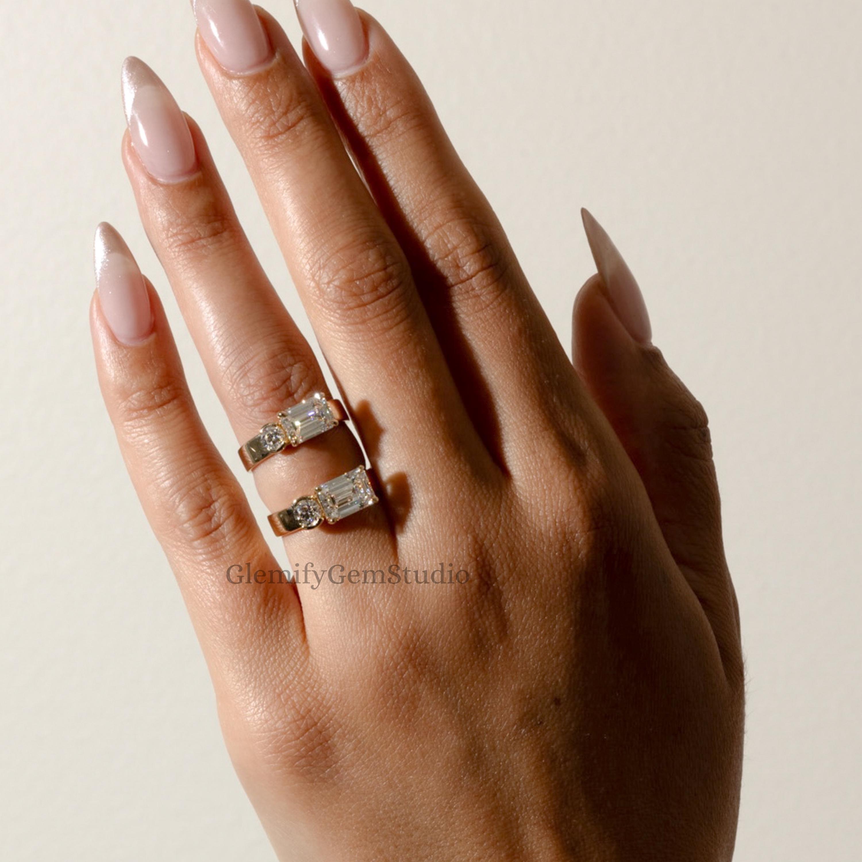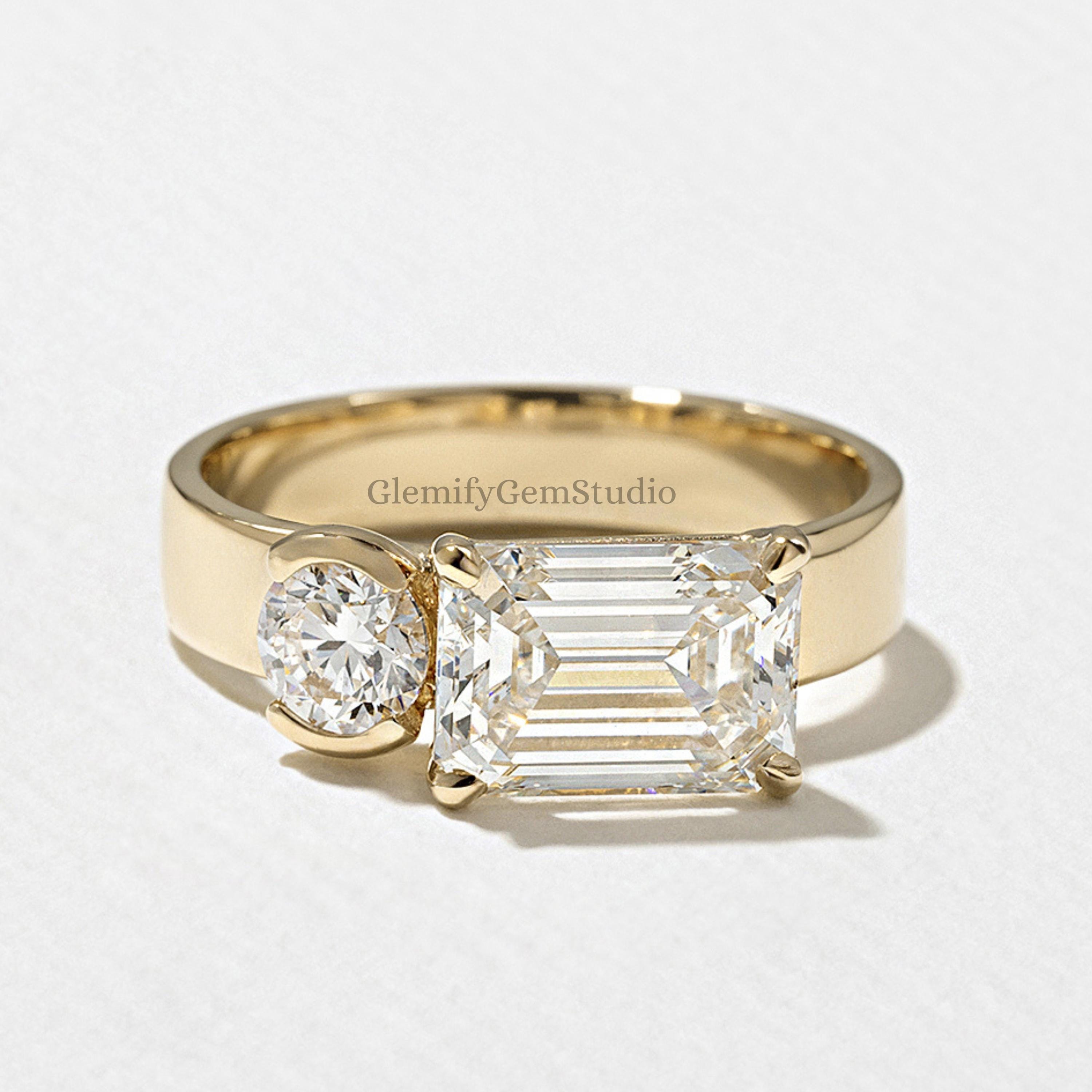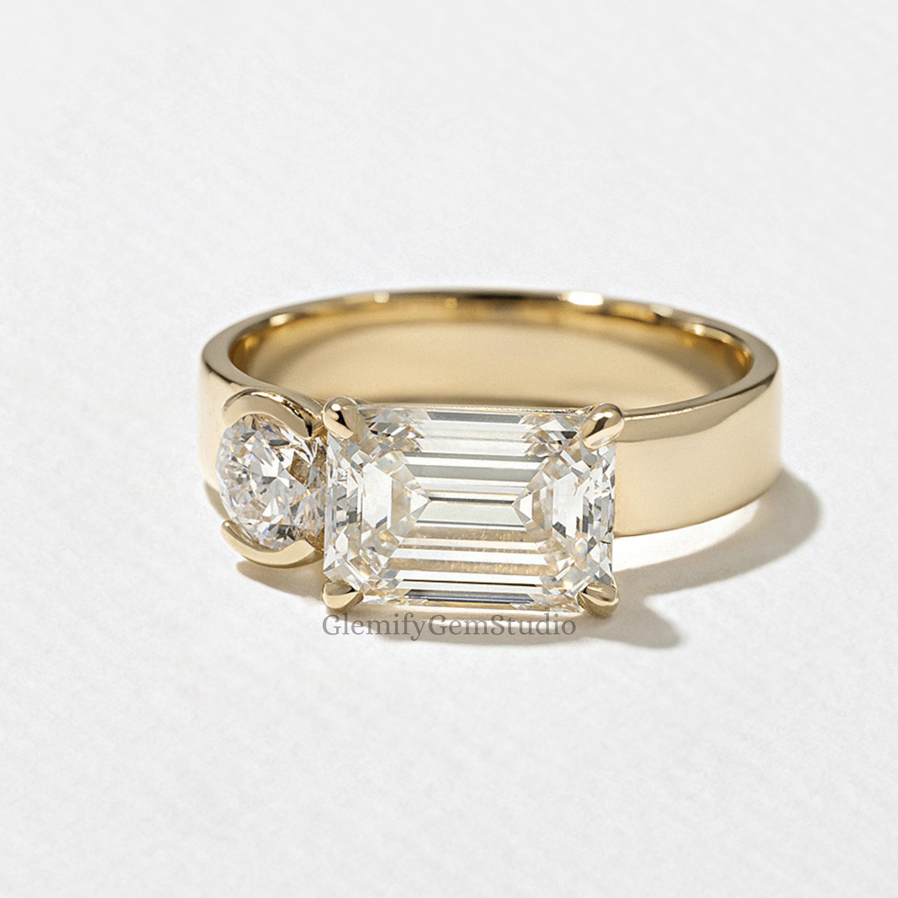 2 CT Emerald Cut With A Half Bezel Set Round Cut IGI Lab Grown Diamond Engagement Ring 14K Solid Gold Solitaire Wedding Anniversary Gift Ring