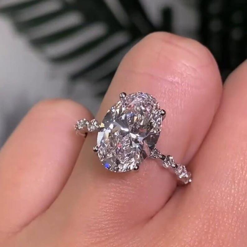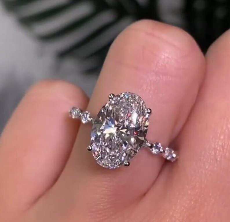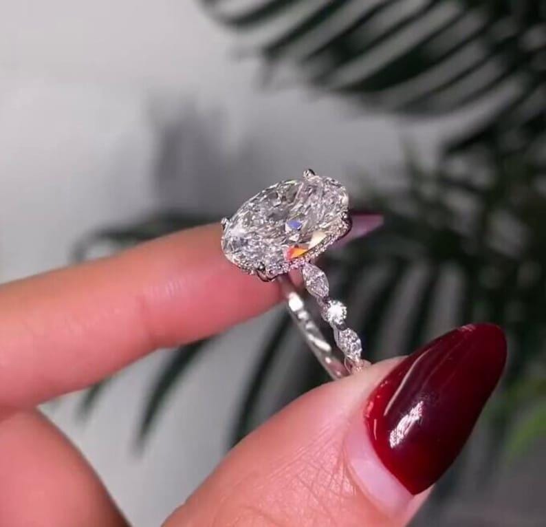 4 CT Oval Cut IGI Lab Grown Diamond Engagement Ring 14k Solid Gold Hidden Halo Wedding Ring Anniversary Pave Setting Band Ring Gift For Her