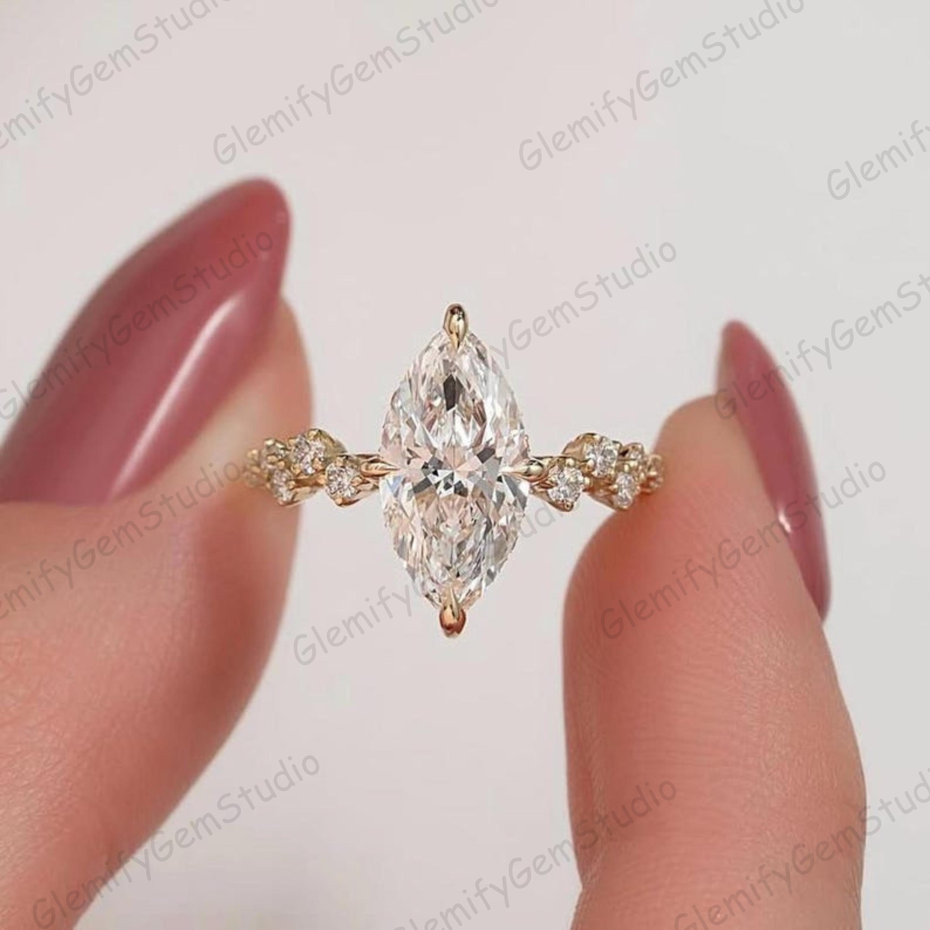 2.50 CT Marquise Cut Moissanite Engagement Ring 14K Solid Gold Marquise Diamond Wedding Hidden Halo Ring, Anniversary Gift, Promise Ring, Gift Ring, Rings For Women, Statement Ring, Vintage Engagement Ring, Promise Rings For Her Diamond Rings, Marquise Cut Ring Gifts For Her, Bridal Ring, Handmade Rings, Personalization Jewelry.