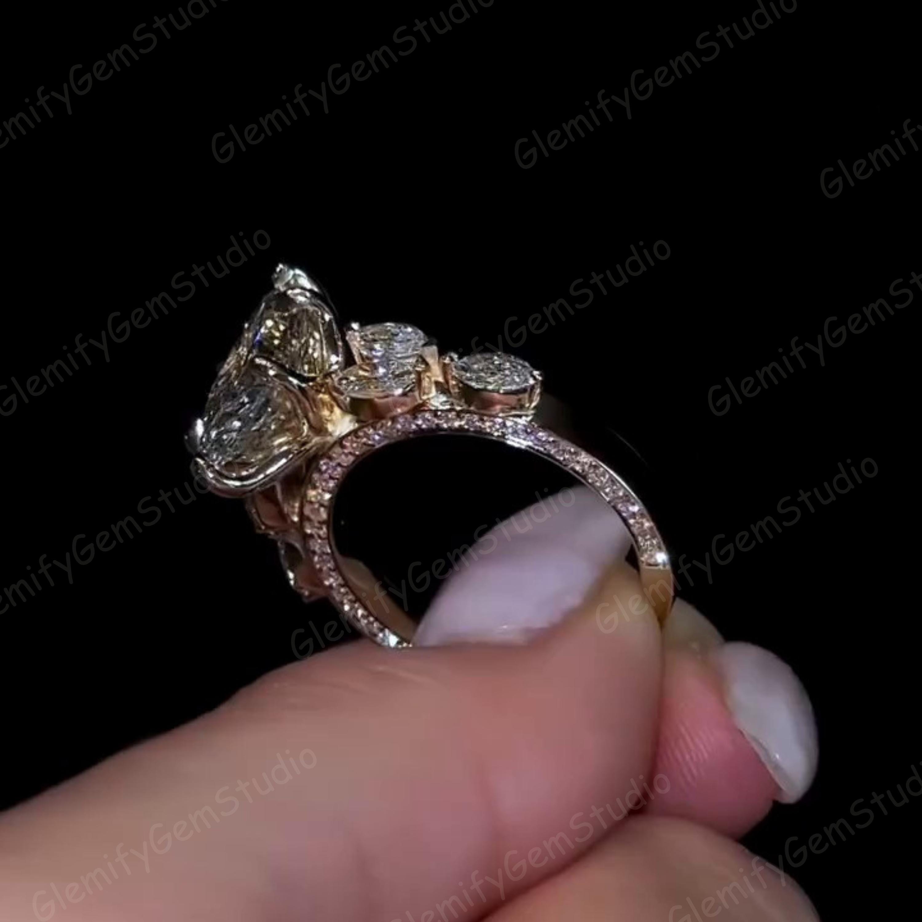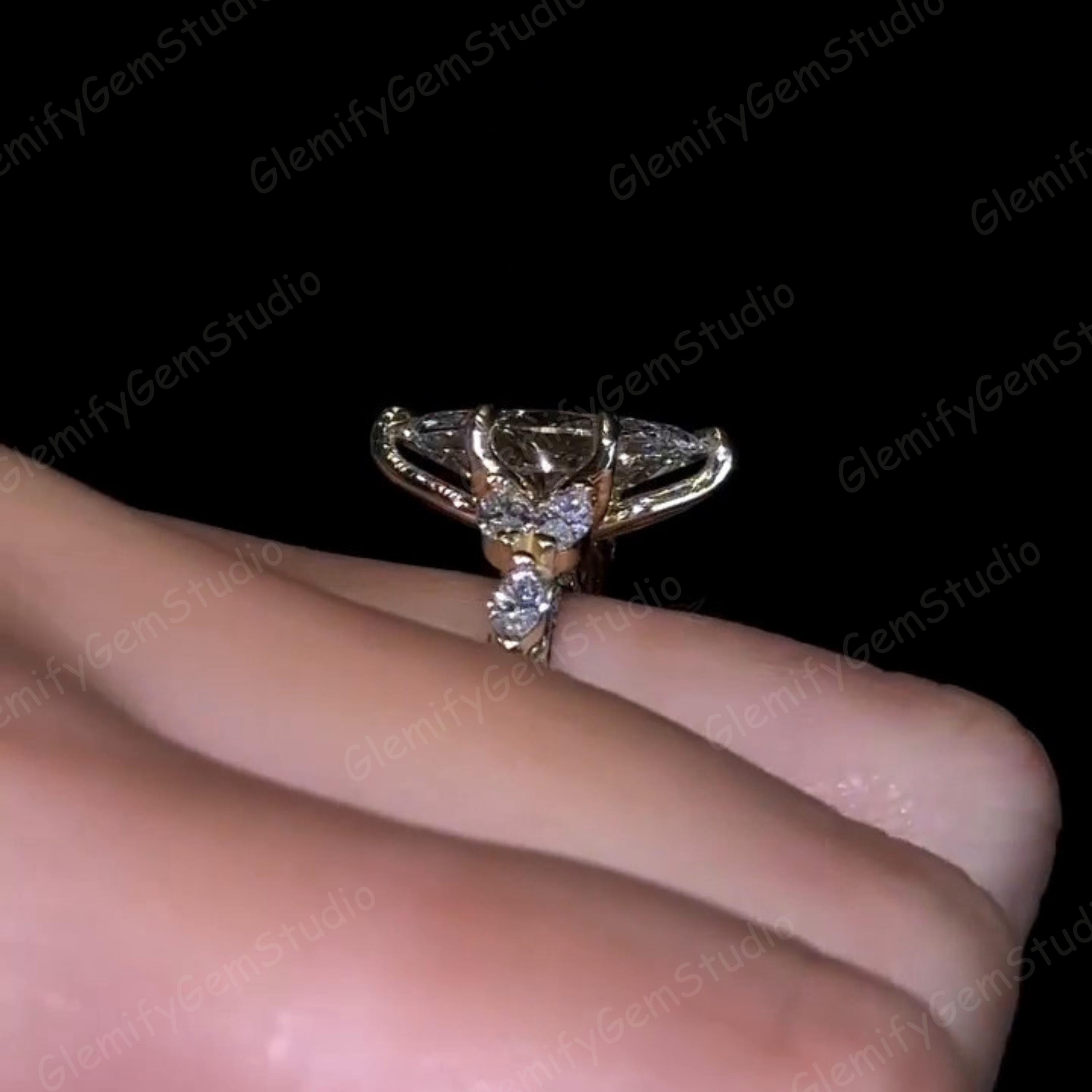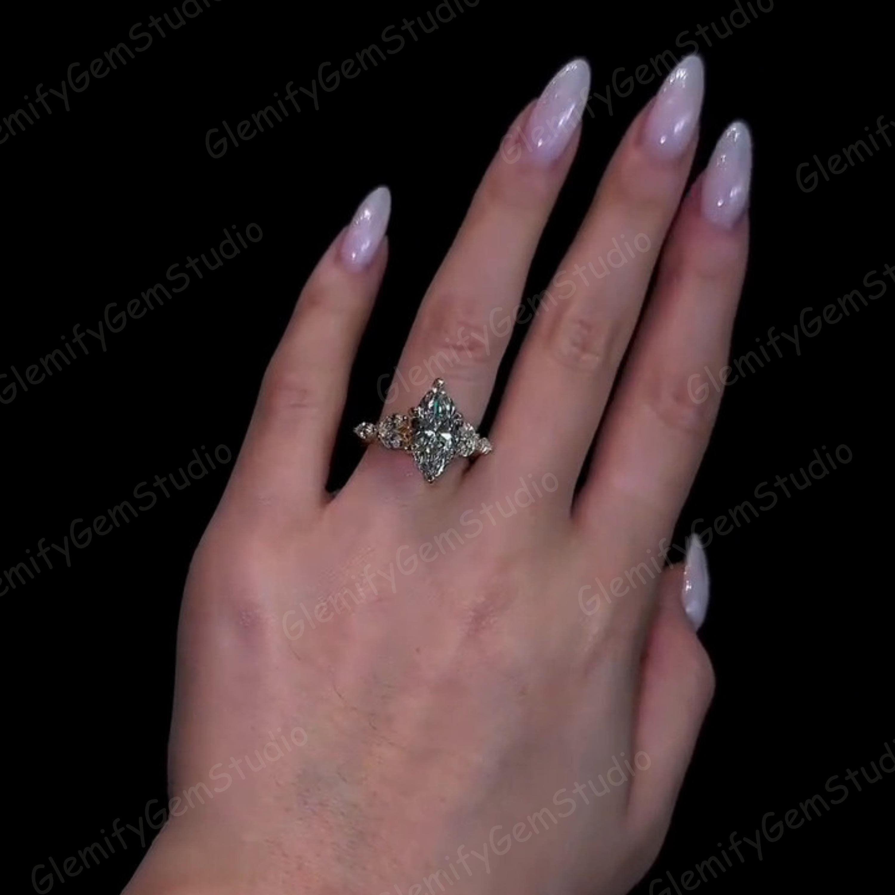 Unique 3 CT Marquise Cut Cluster Moissanite Engagement Ring 14K Solid Gold Cigar Band Tulip Set Wedding Anniversary Gifts Ring For Women, Gift Ring, Rings For Women, Statement Ring, Vintage Engagement Ring, Promise Rings For Her Diamond Rings, Marquise Cut Ring Gifts For Her, Bridal Ring, Handmade Rings, Personalization Jewelry.
