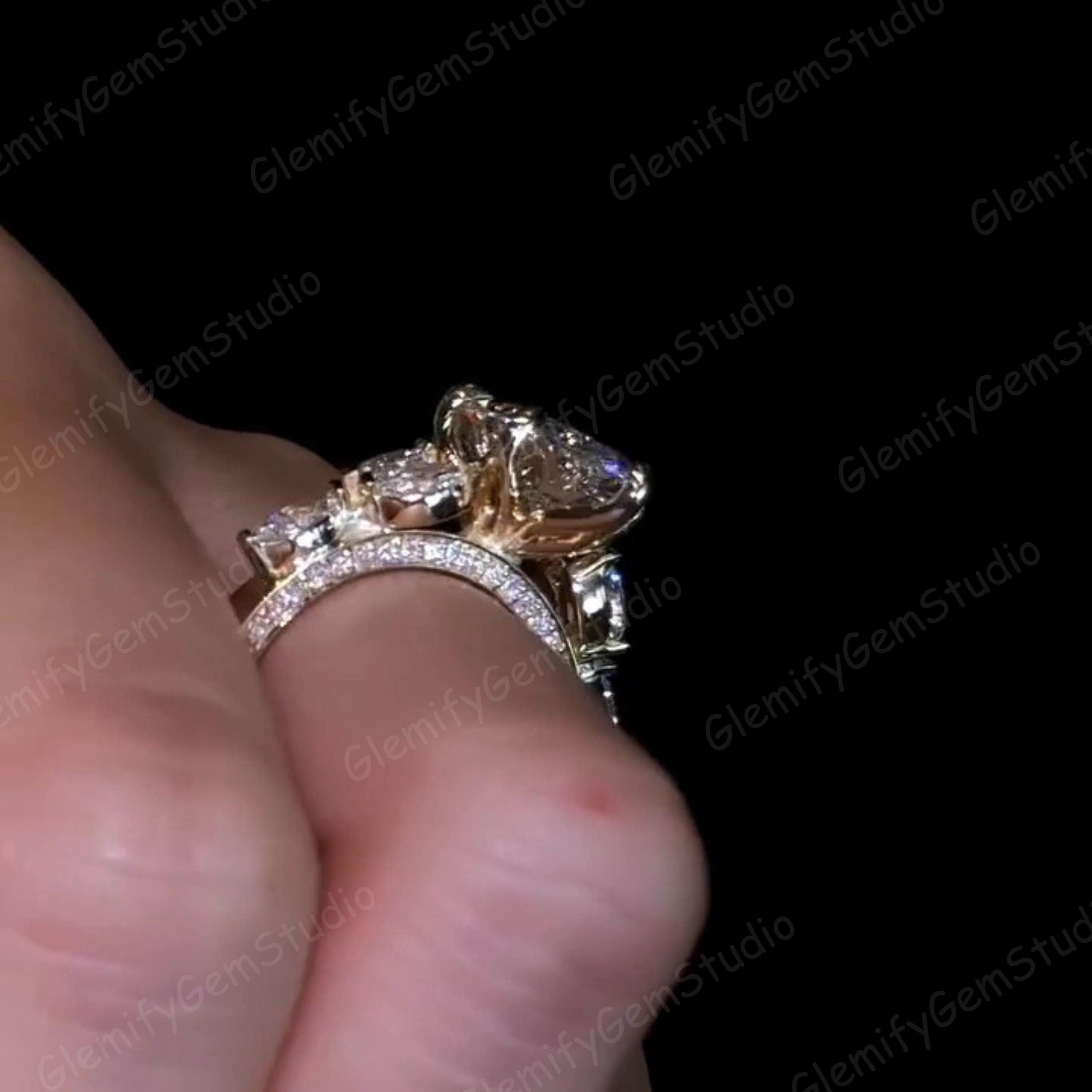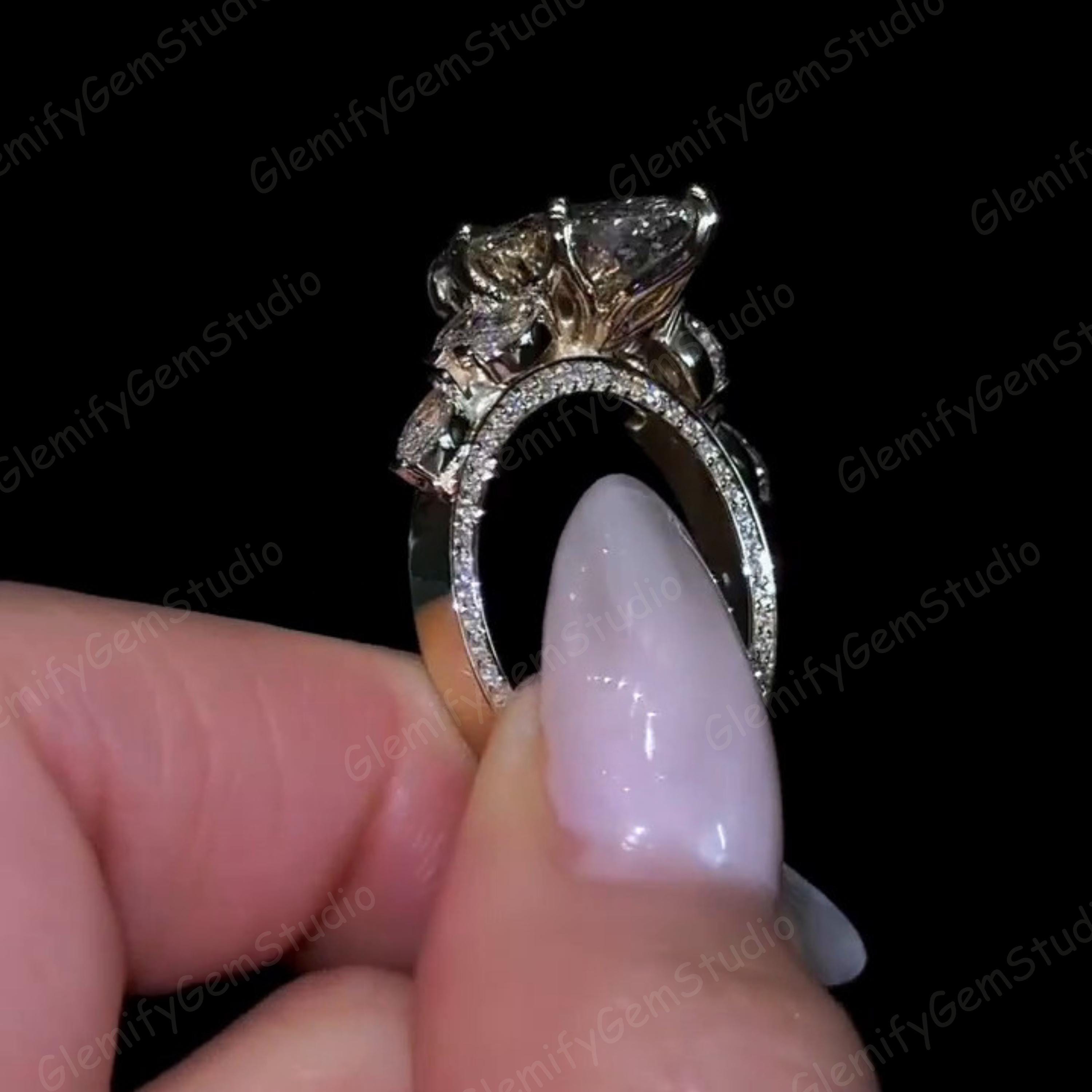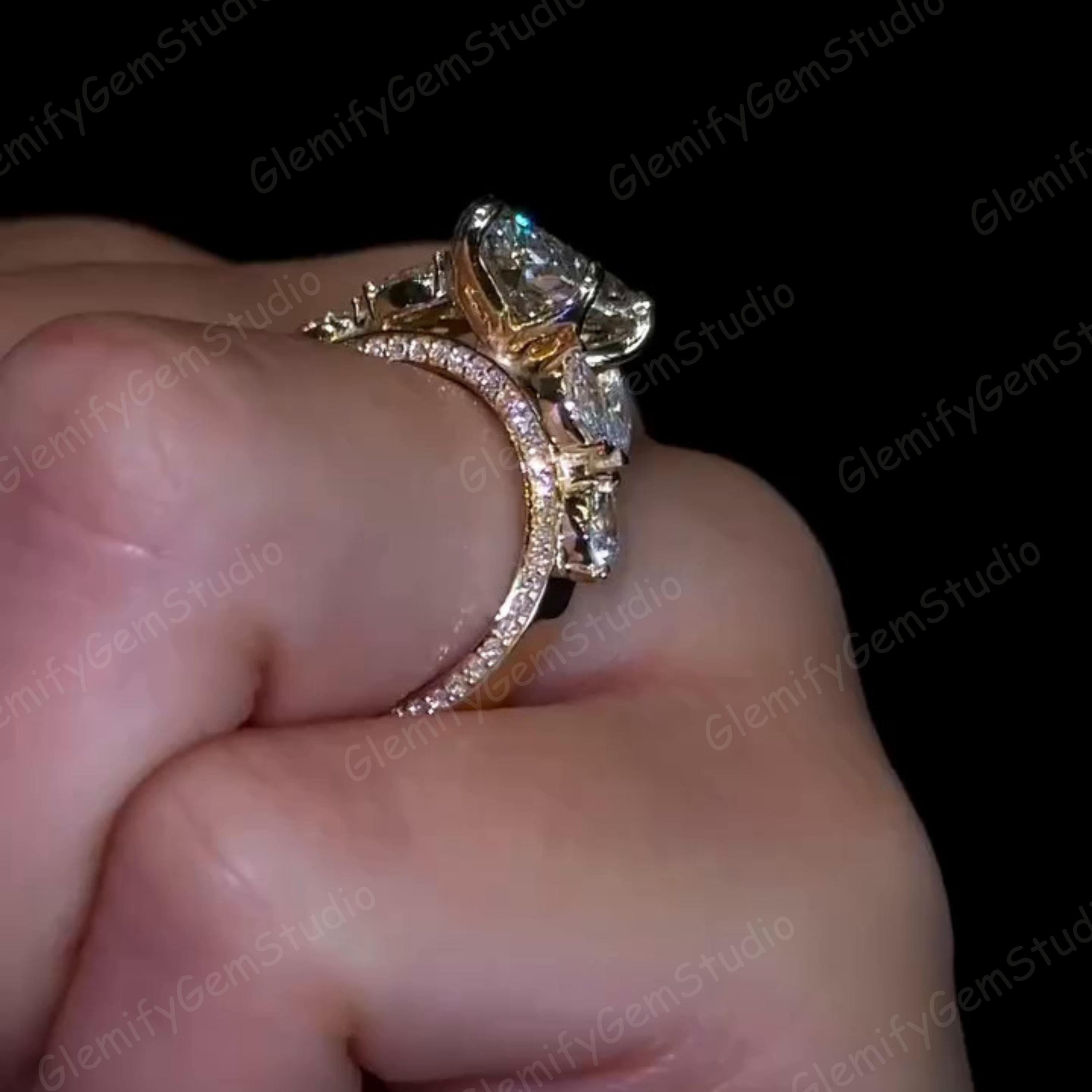 Unique 3 CT Marquise Cut Cluster Moissanite Engagement Ring 14K Solid Gold Cigar Band Tulip Set Wedding Anniversary Gifts Ring For Women, Gift Ring, Rings For Women, Statement Ring, Vintage Engagement Ring, Promise Rings For Her Diamond Rings, Marquise Cut Ring Gifts For Her, Bridal Ring, Handmade Rings, Personalization Jewelry.
